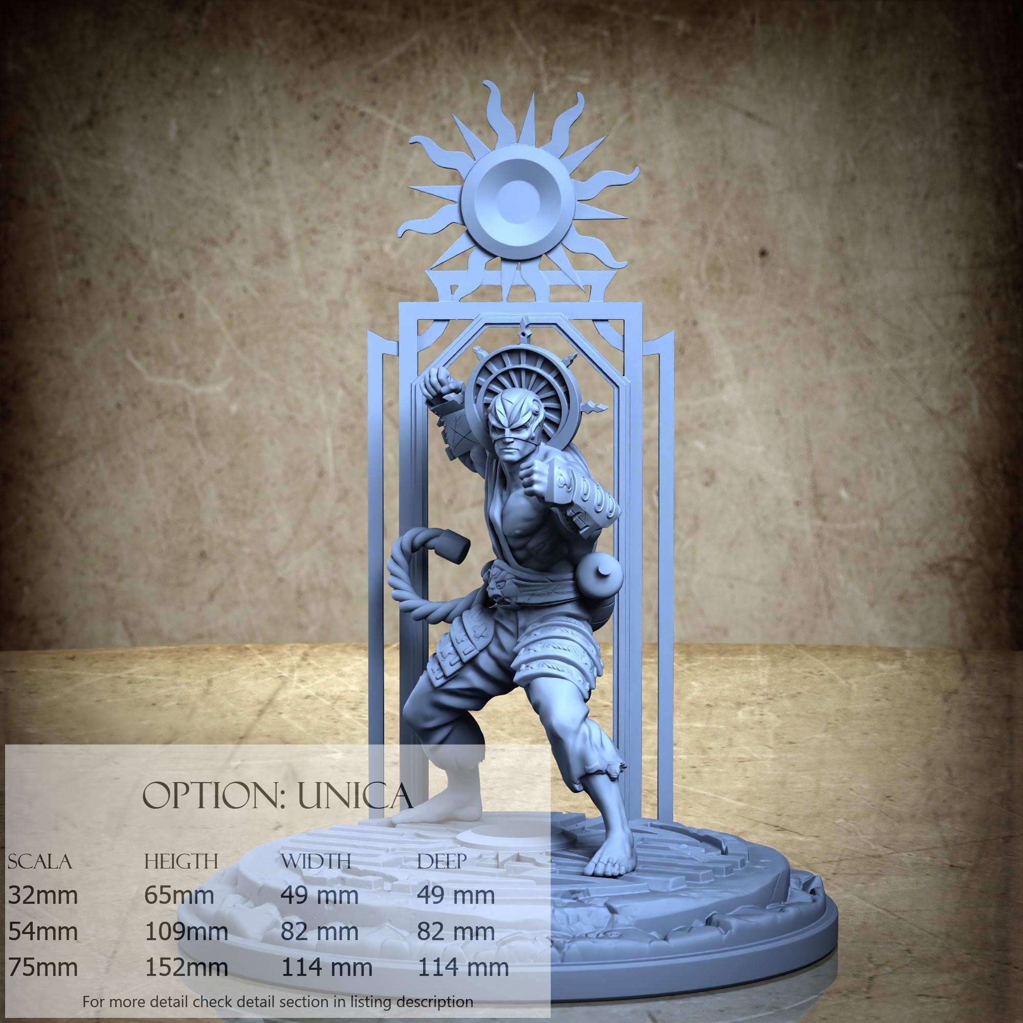 - Sun (1 piece) in Resin: Height: 67 mm, Width: 32 mm, Depth: 50 mm