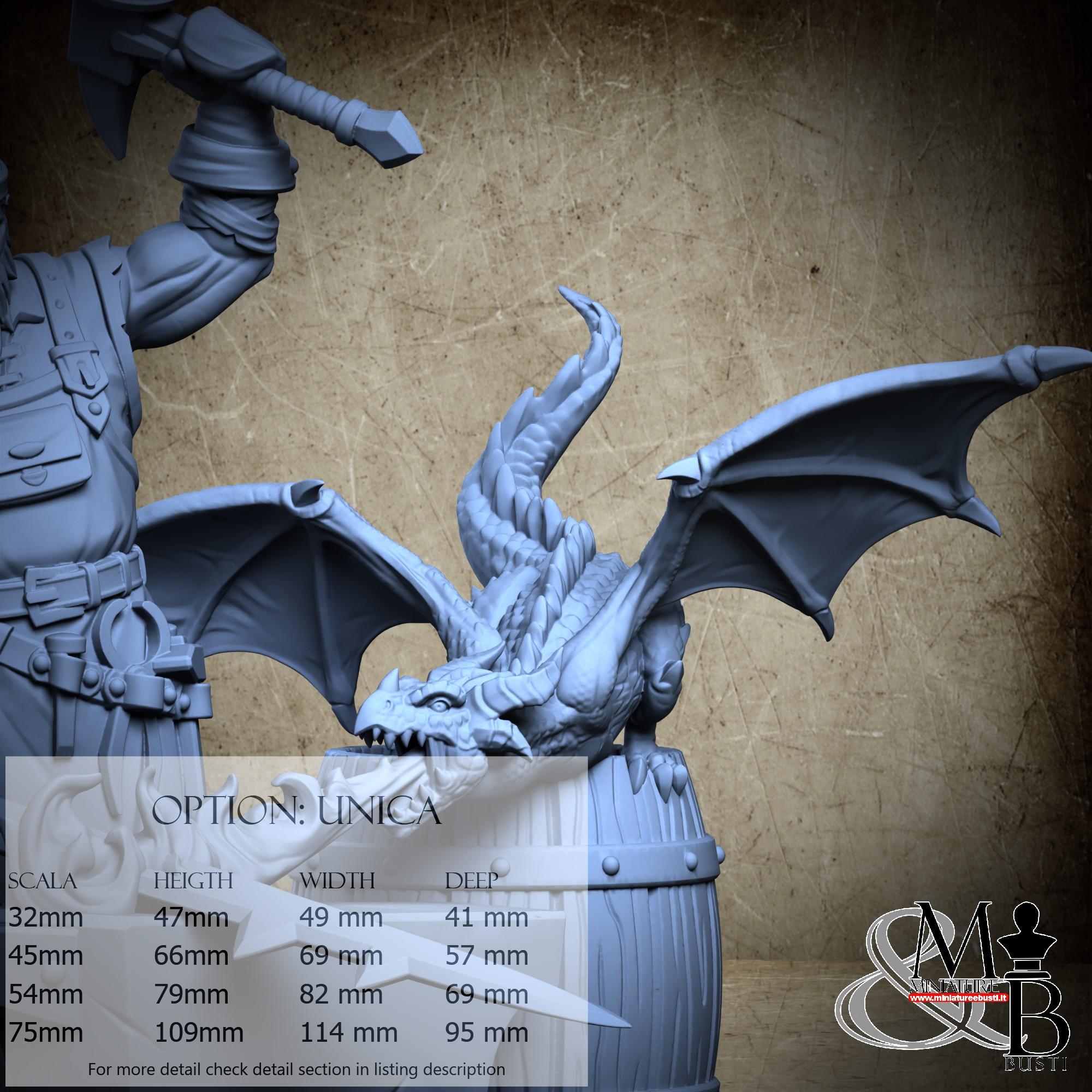 - Dragon (2 pieces) in Resin: Height: 46 mm, Width: 53 mm, Depth: 49 mm