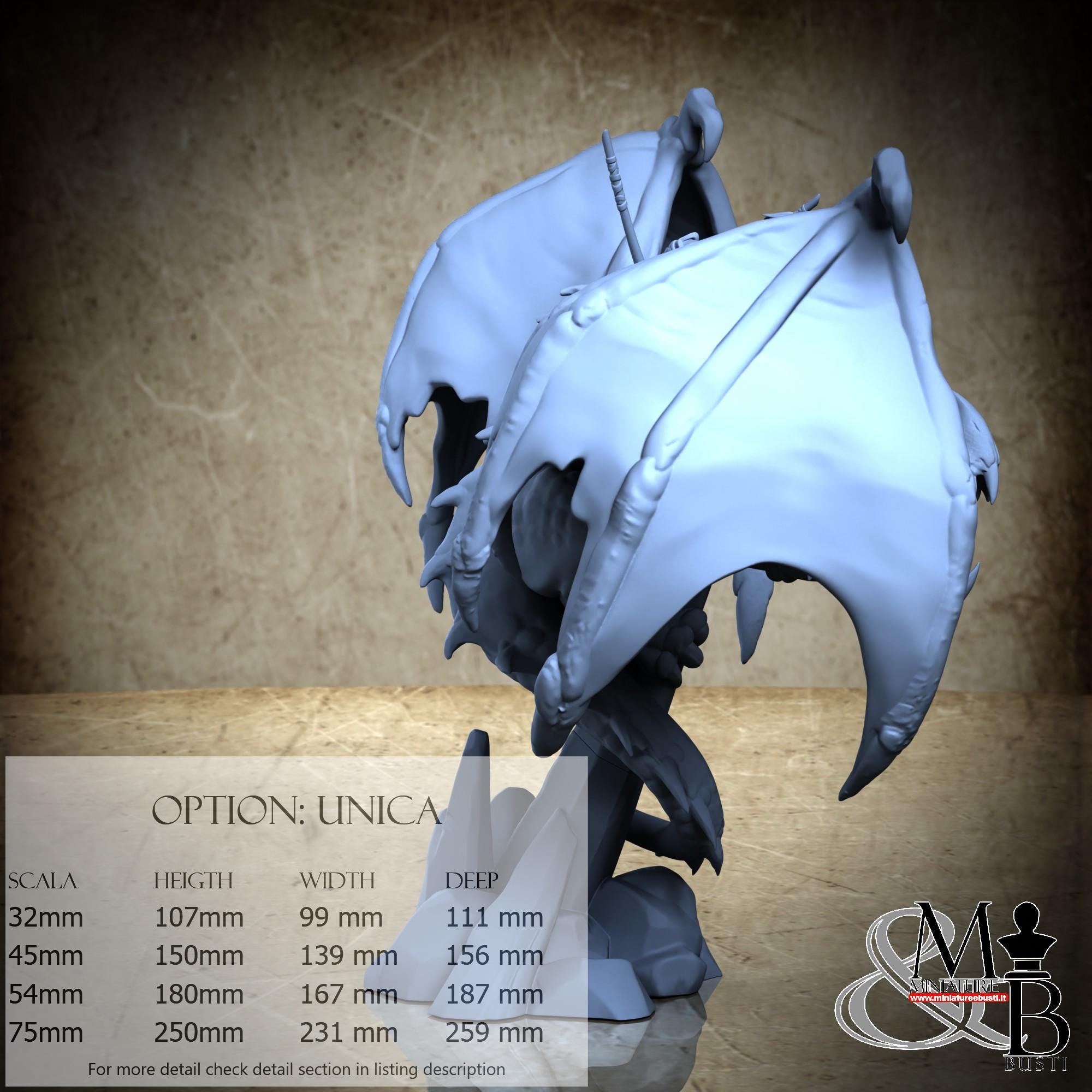 - Dragon (4 pieces) in Resin: Height: 93 mm, Width: 99 mm, Depth: 111 mm