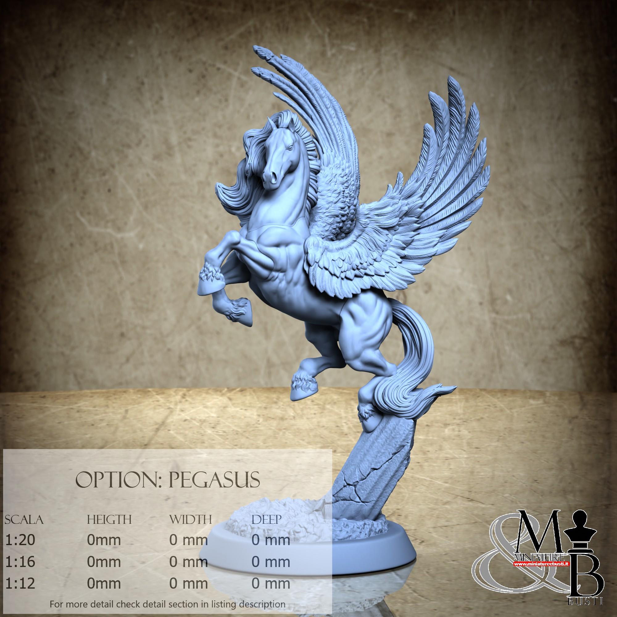 - Pegaso (9 pezzi) in Resina : Altezza: 192 mm, Larghezza: 129 mm, Profondità: 95 mm