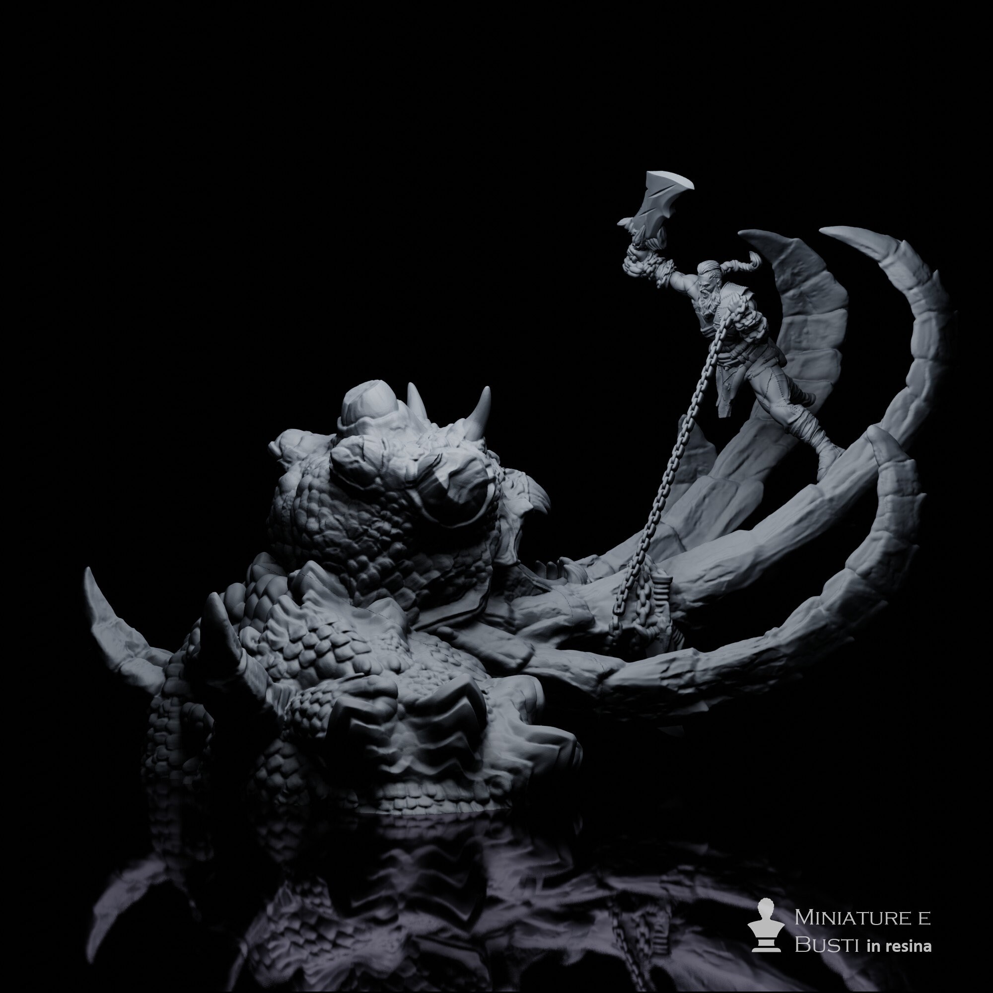 - Kratos (3 pieces) in Resin: Height: 73 mm, Width: 34 mm, Depth: 58 mm