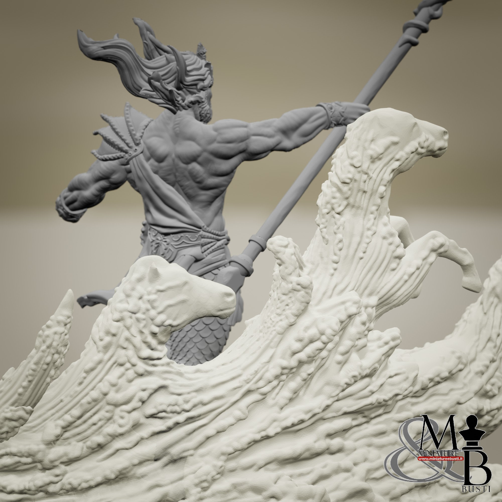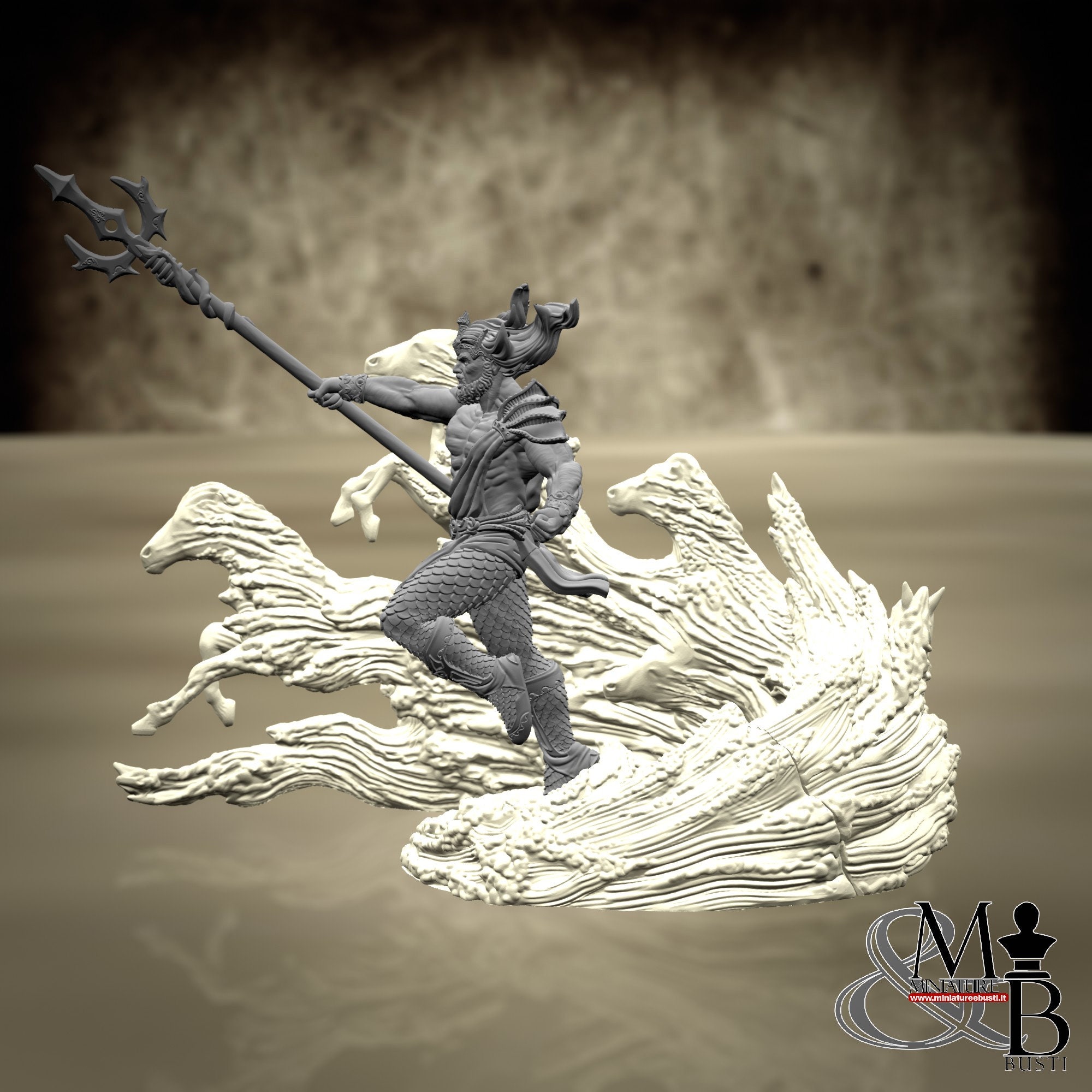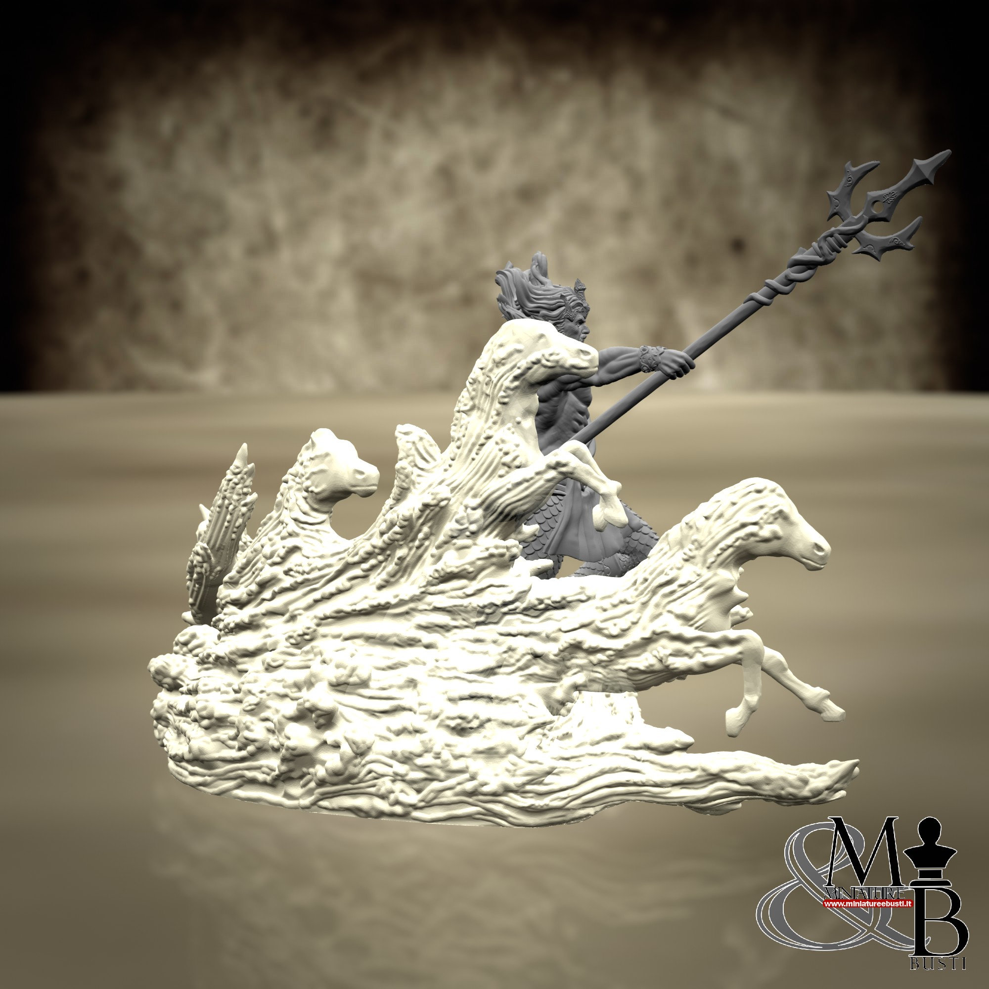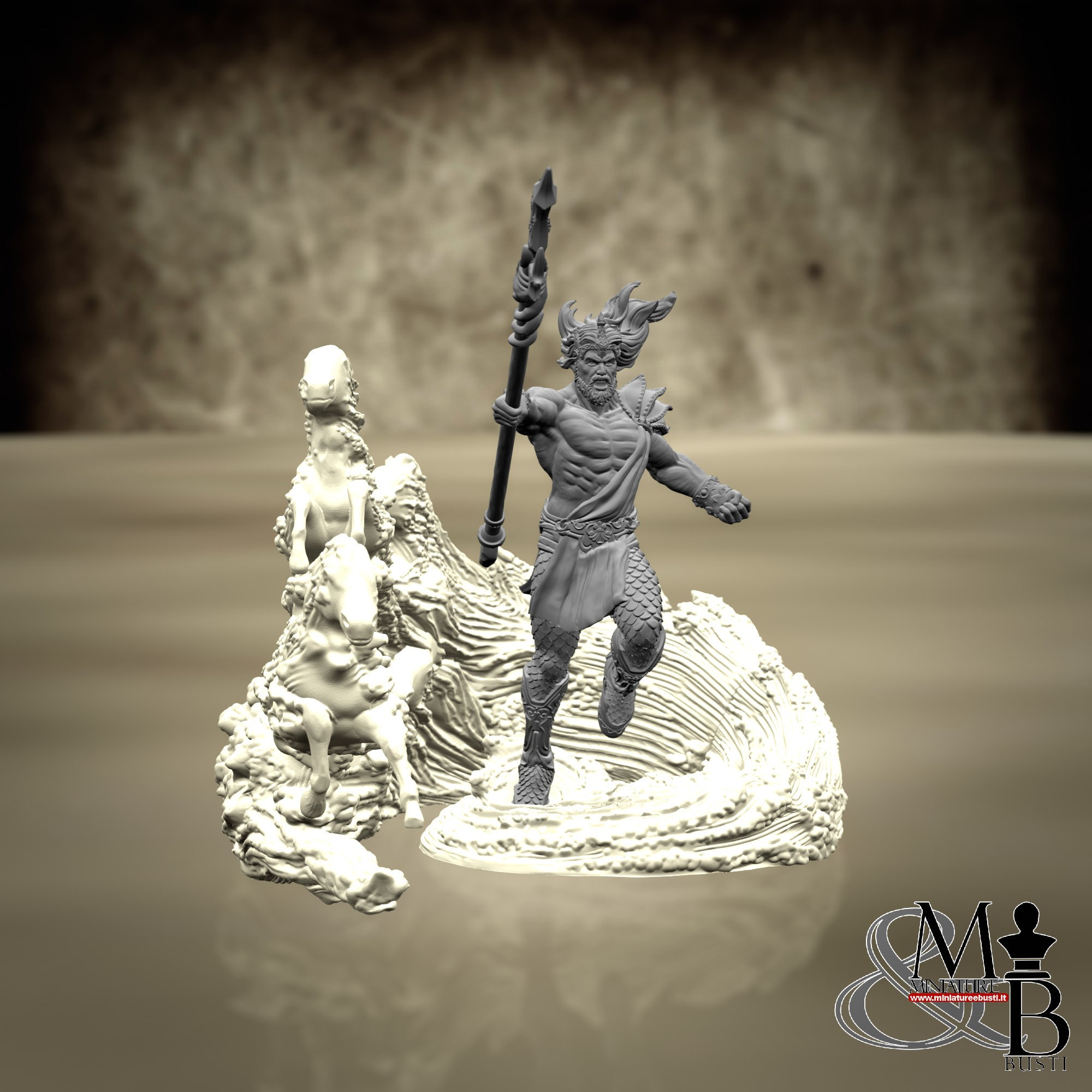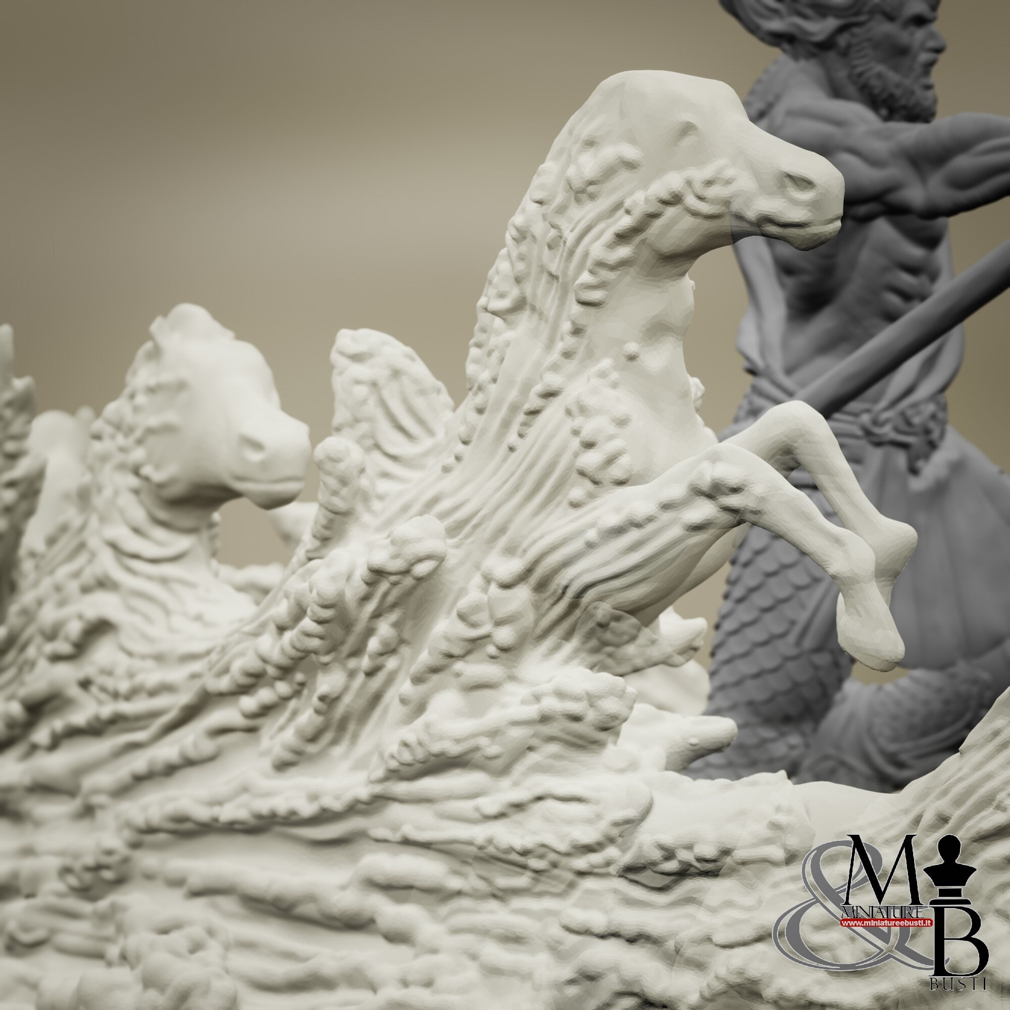 It is possible to purchase a version of the miniature that features the waves and horses printed in clear resin.