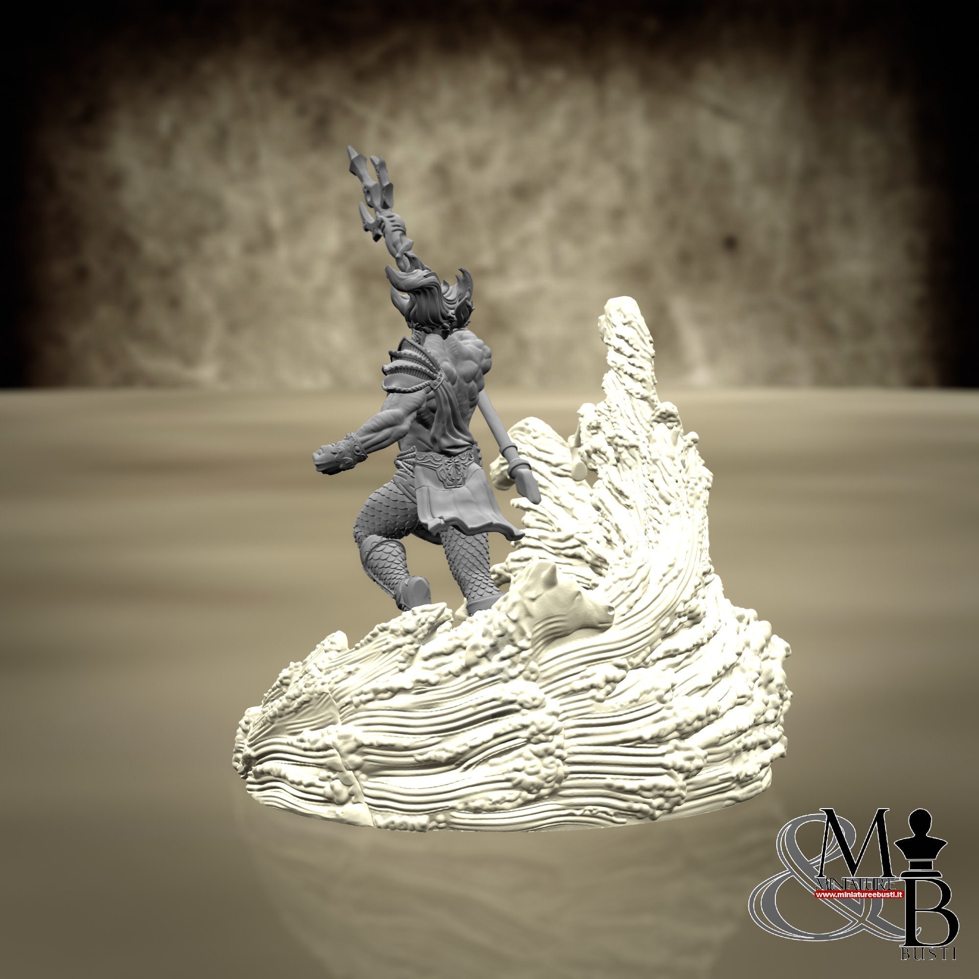 - Poseidon (3 pieces) in Resin: Height: 54 mm, Width: 27 mm, Depth: 46 mm