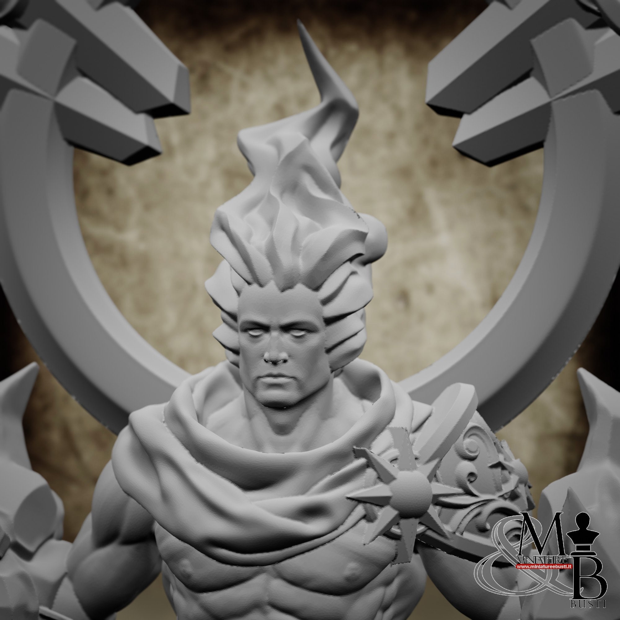 Apollo, God of the Sun, with flaming arms and hair in this interpretation by Clay Cianide Miniature.