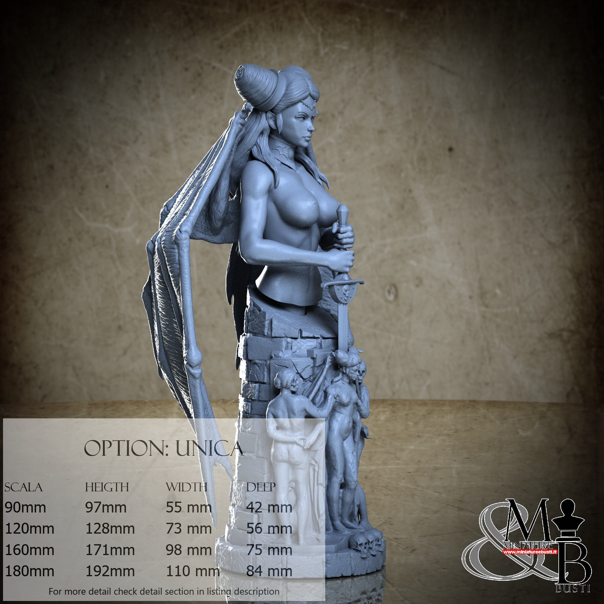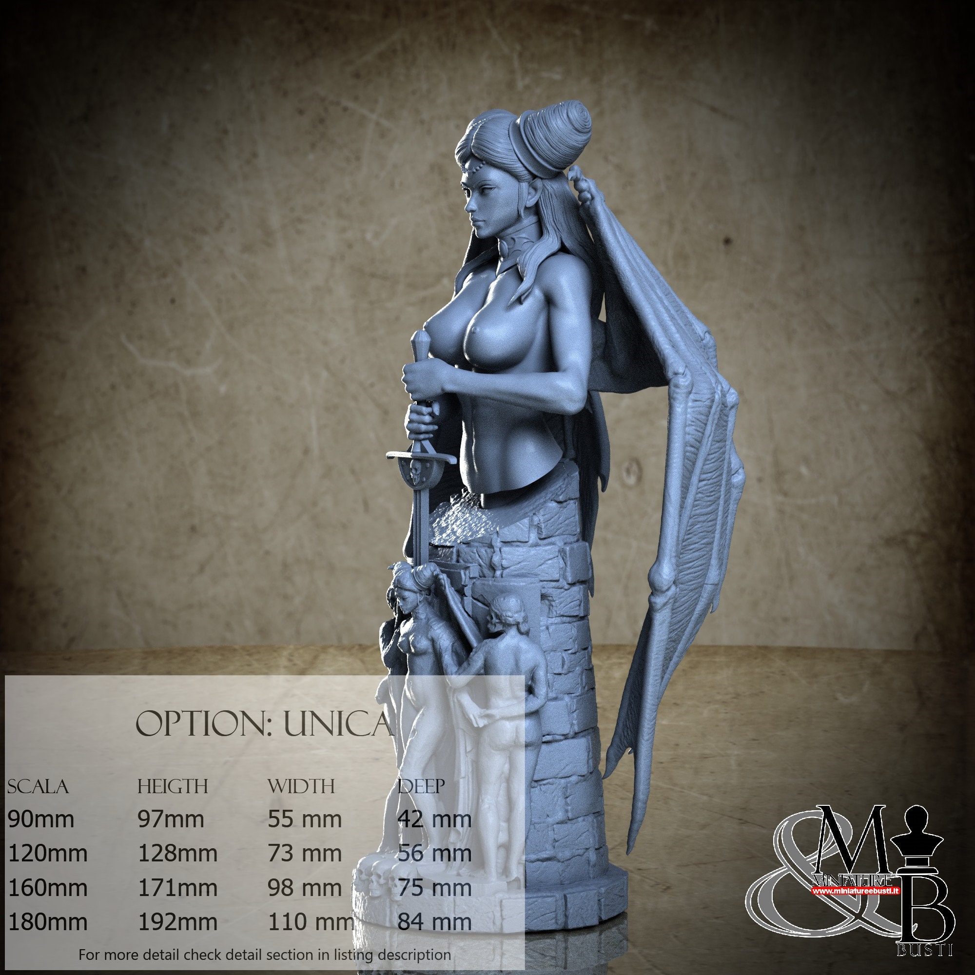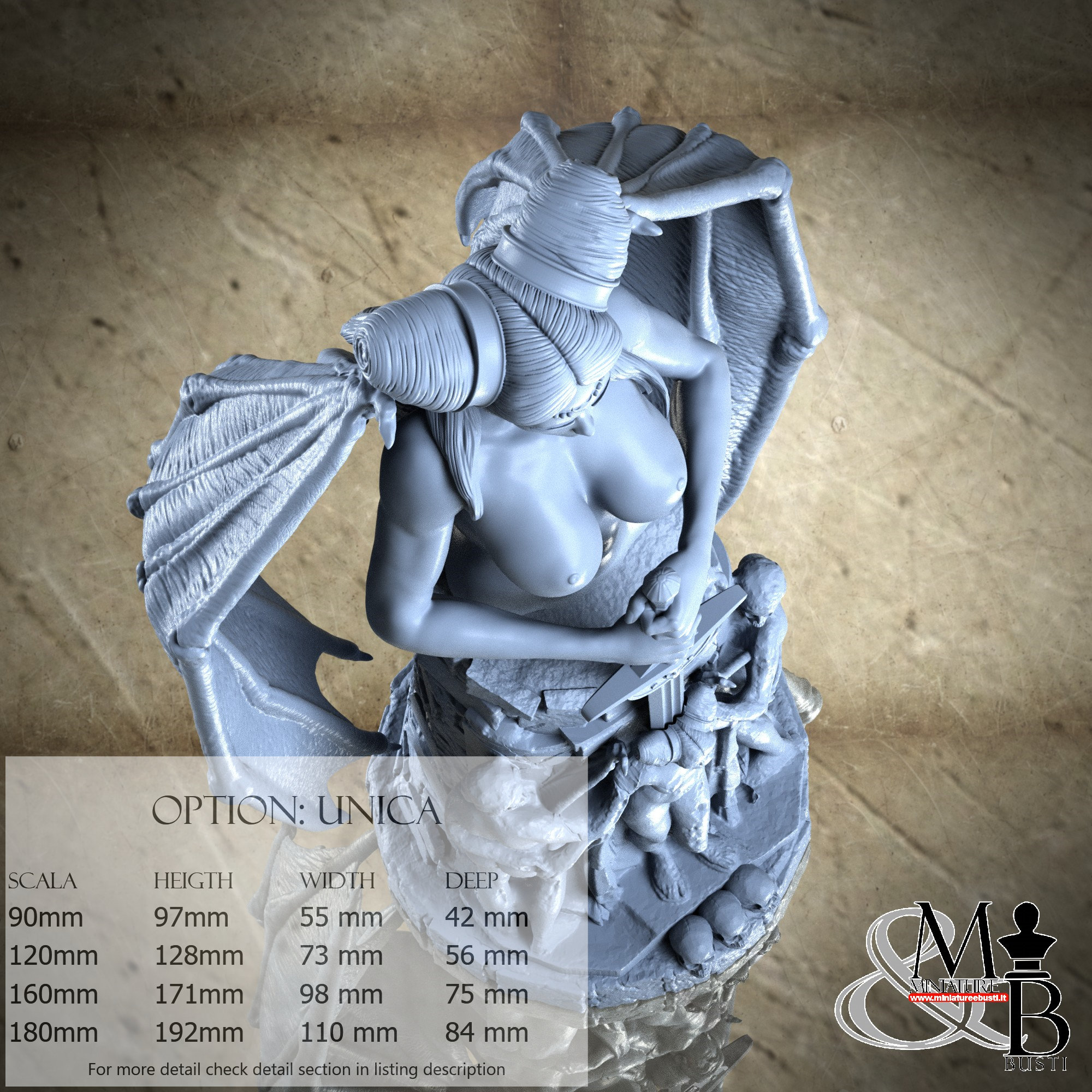 - Bust (3 pieces) in Resin: Height: 58 mm, Width: 30 mm, Depth: 28 mm