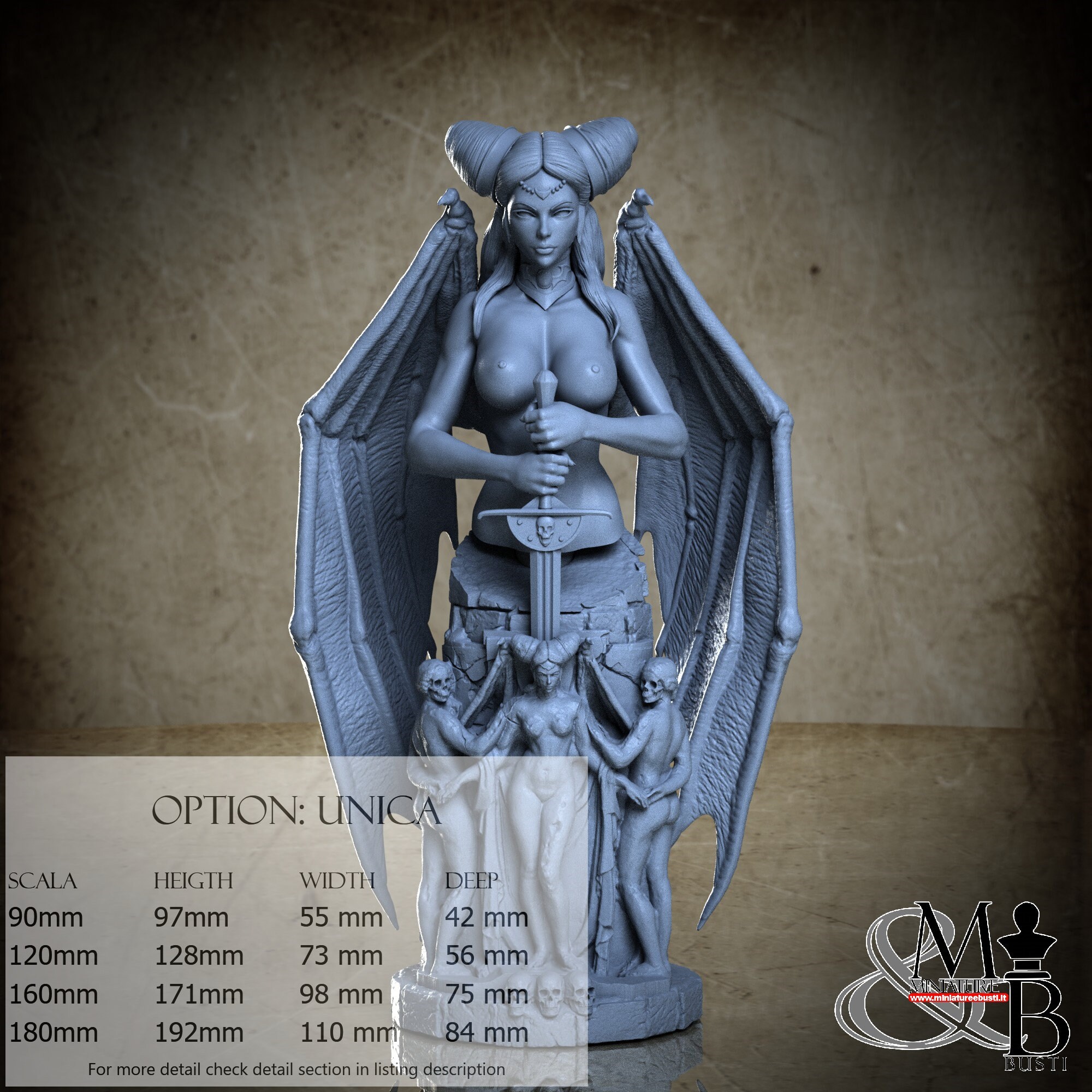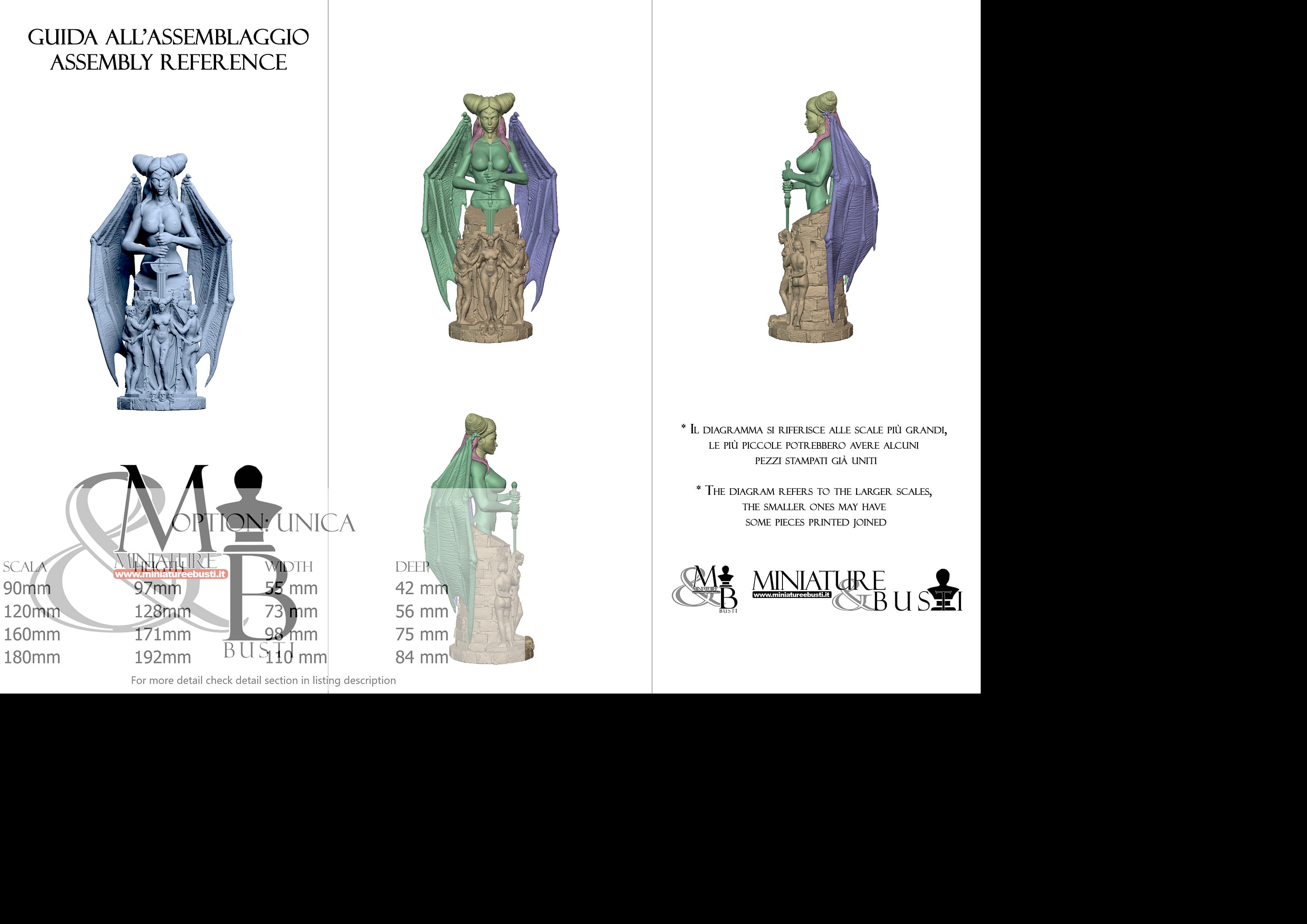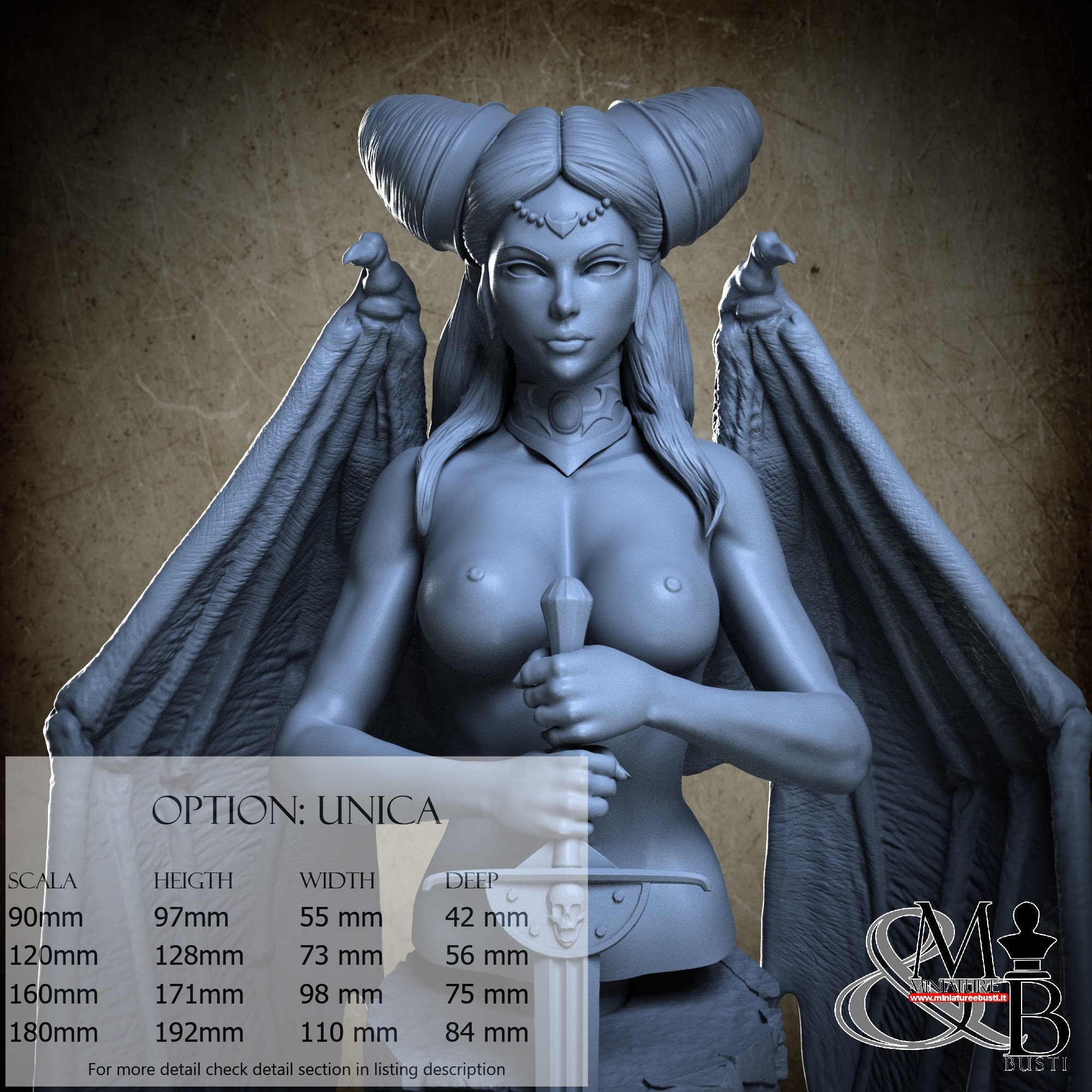 - Bust (3 pieces) in Resin: Height: 58 mm, Width: 30 mm, Depth: 28 mm