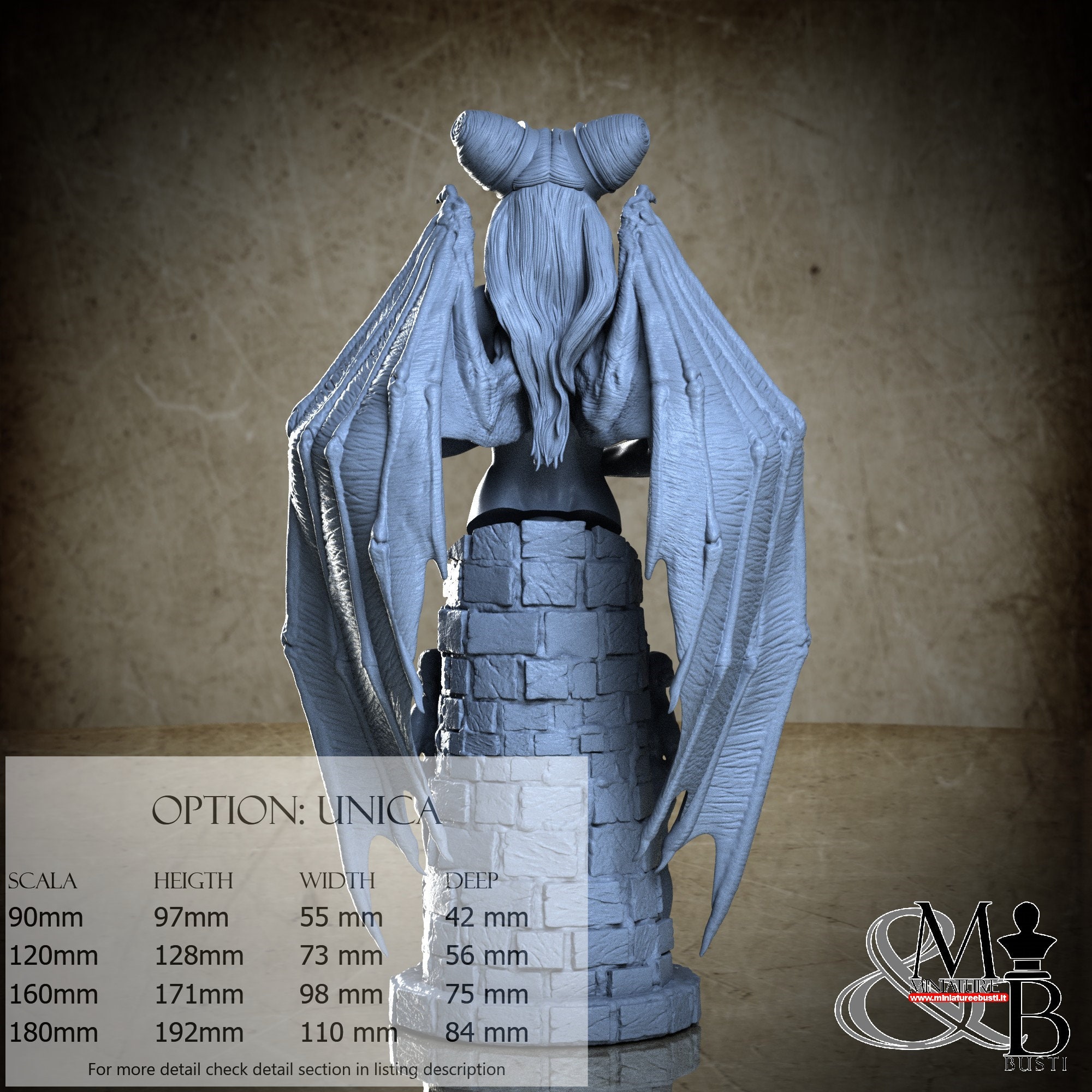 - Bust (3 pieces) in Resin: Height: 115 mm, Width: 60 mm, Depth: 55 mm