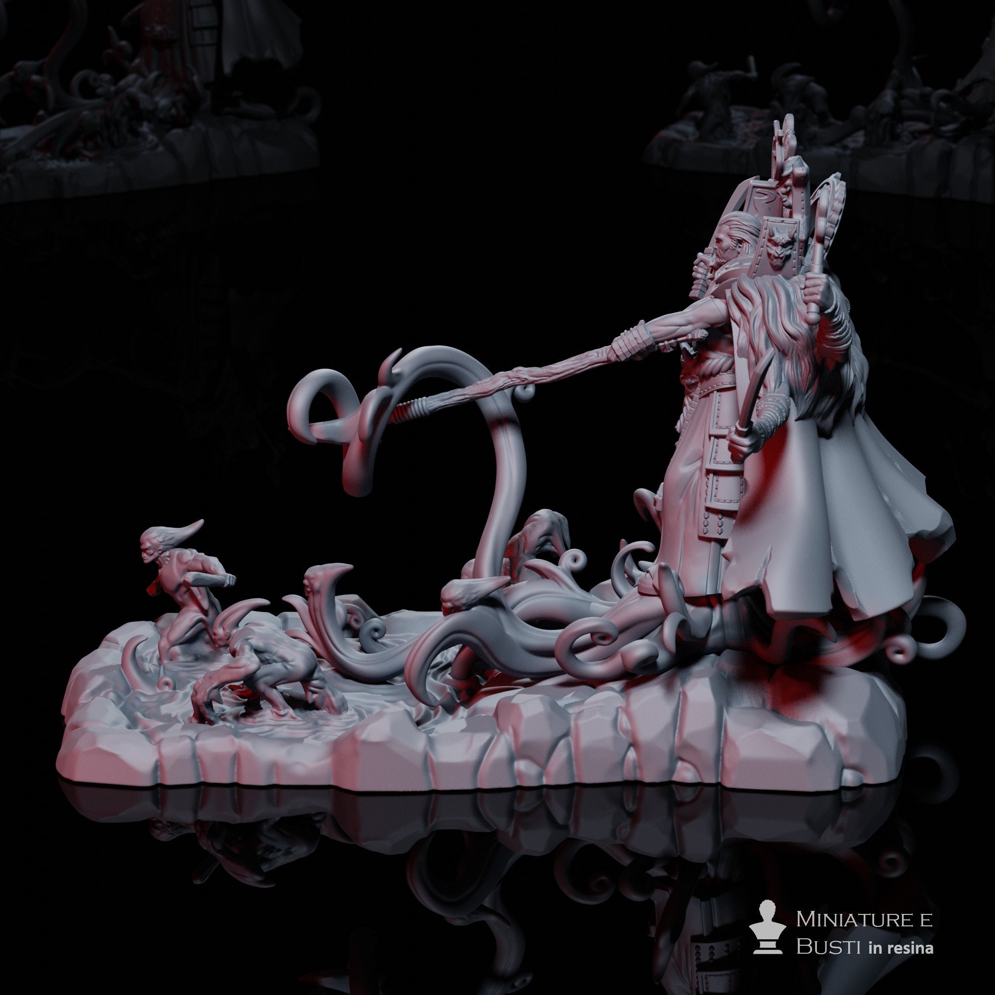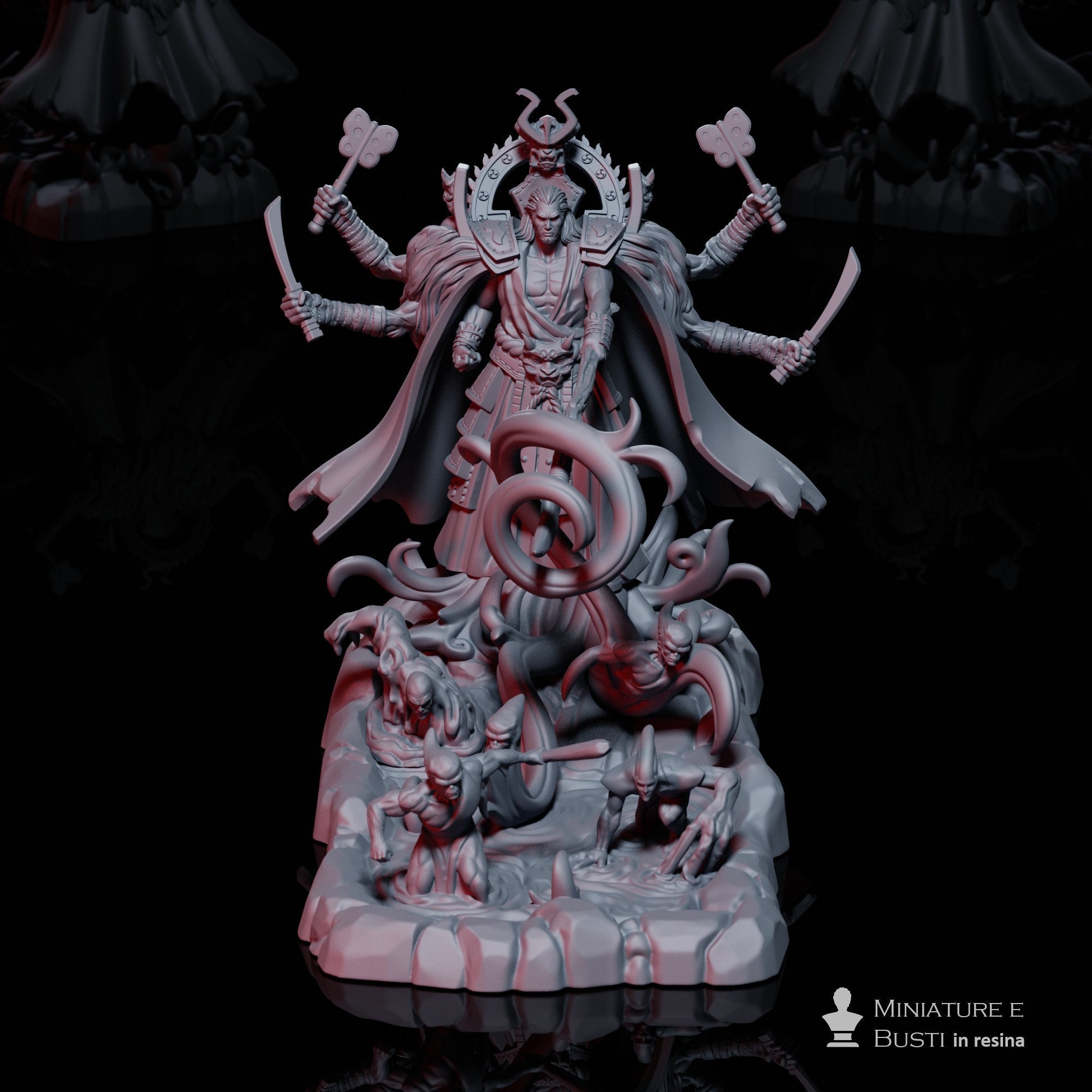 Izanagi is the creator god of the Earth, depicted here with the Ame-nu-oko spear. Sculpted on a large display base, the miniature is richly detailed, like all Clay Cyanide miniatures.
