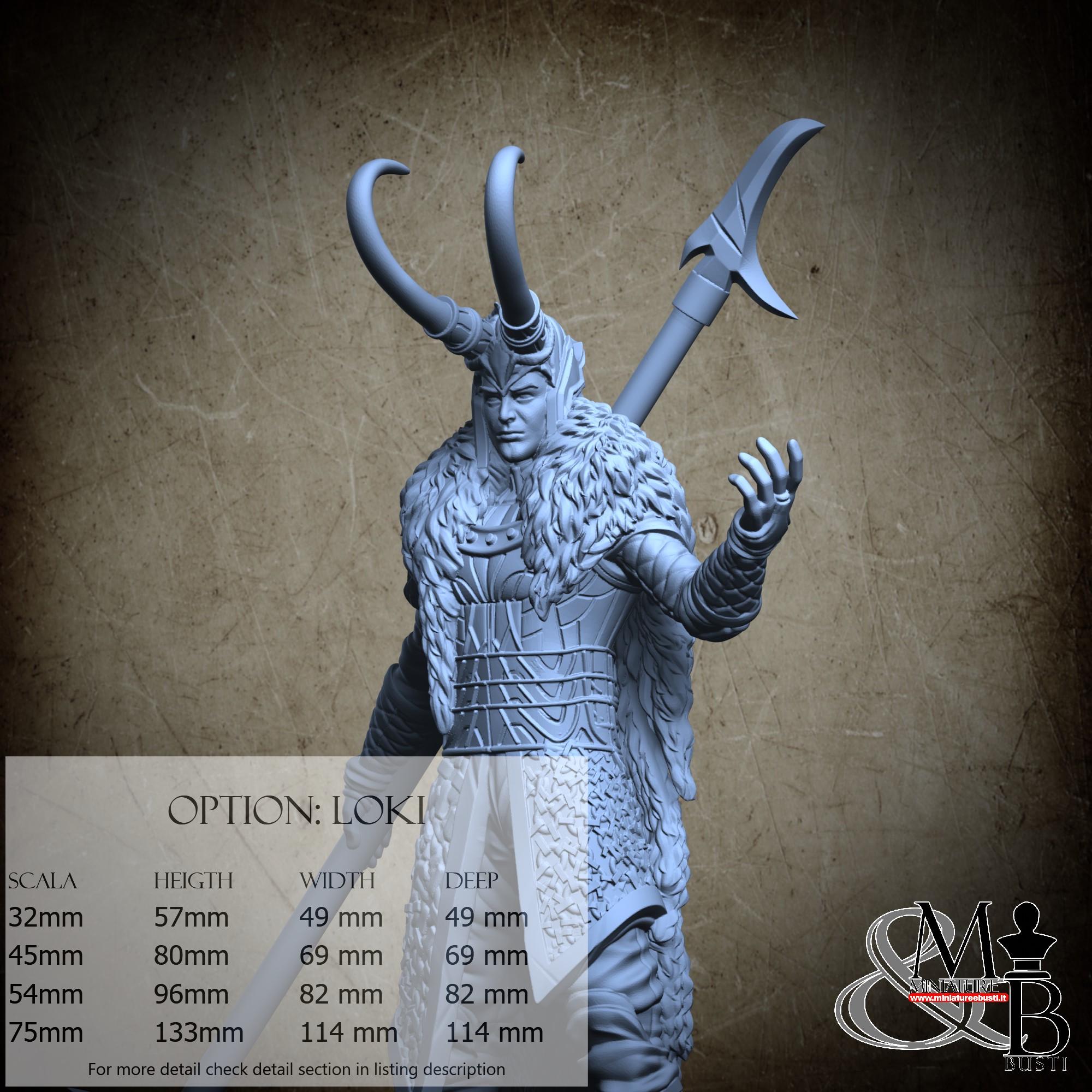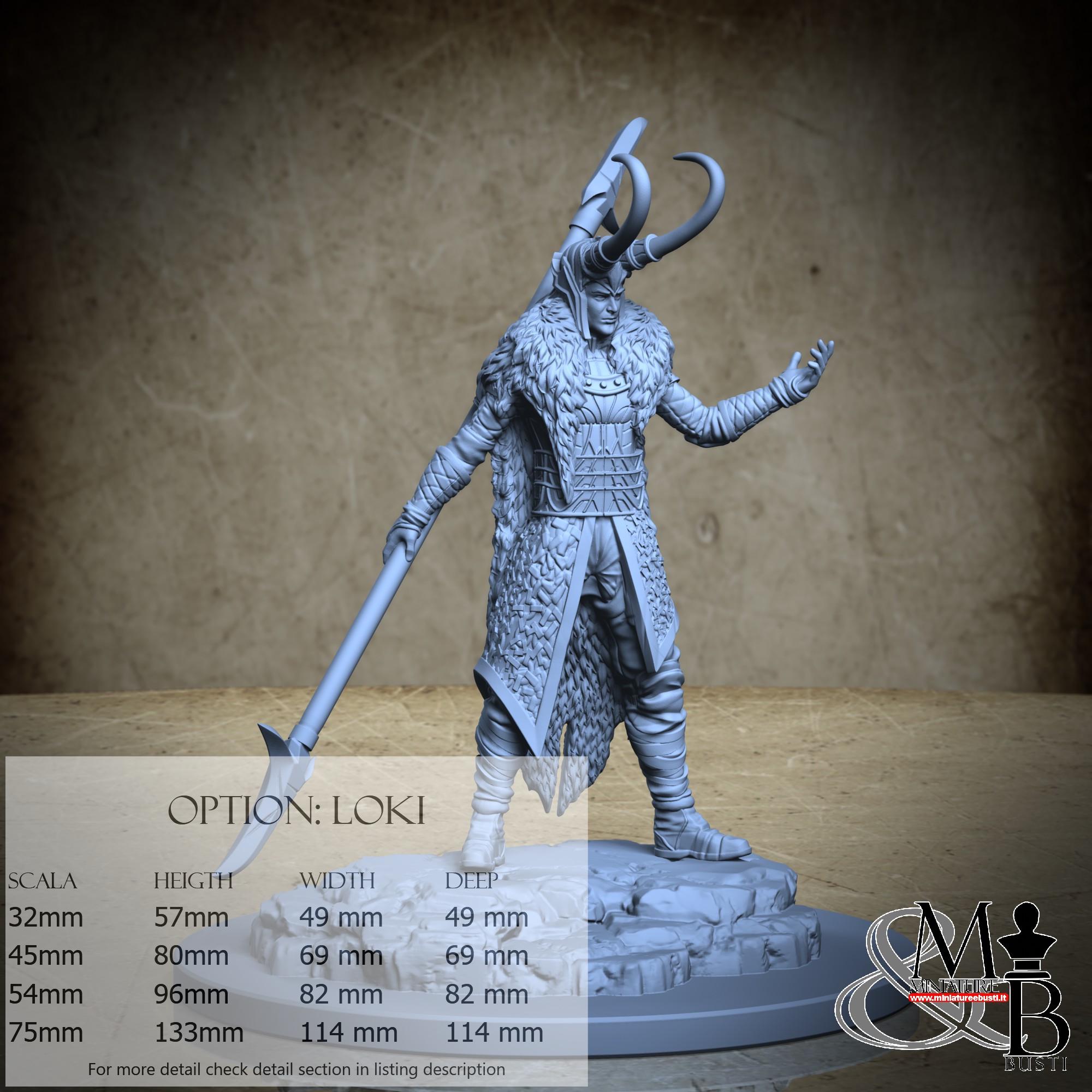 - Loki (1 piece) in Resin: Height: 82 mm, Width: 55 mm, Depth: 45 mm