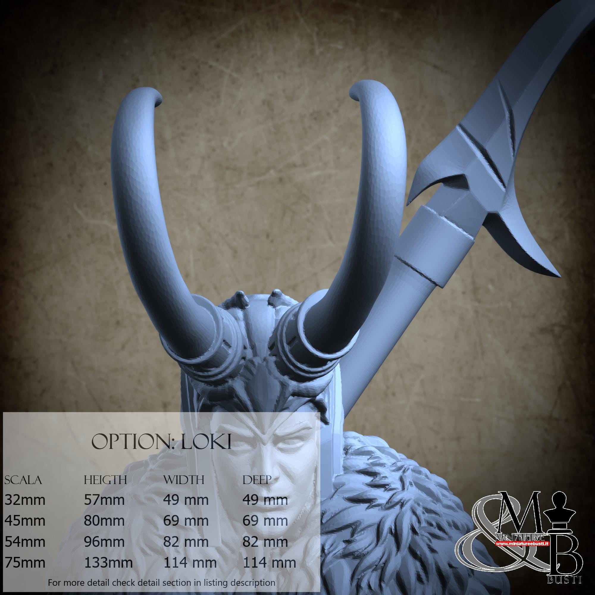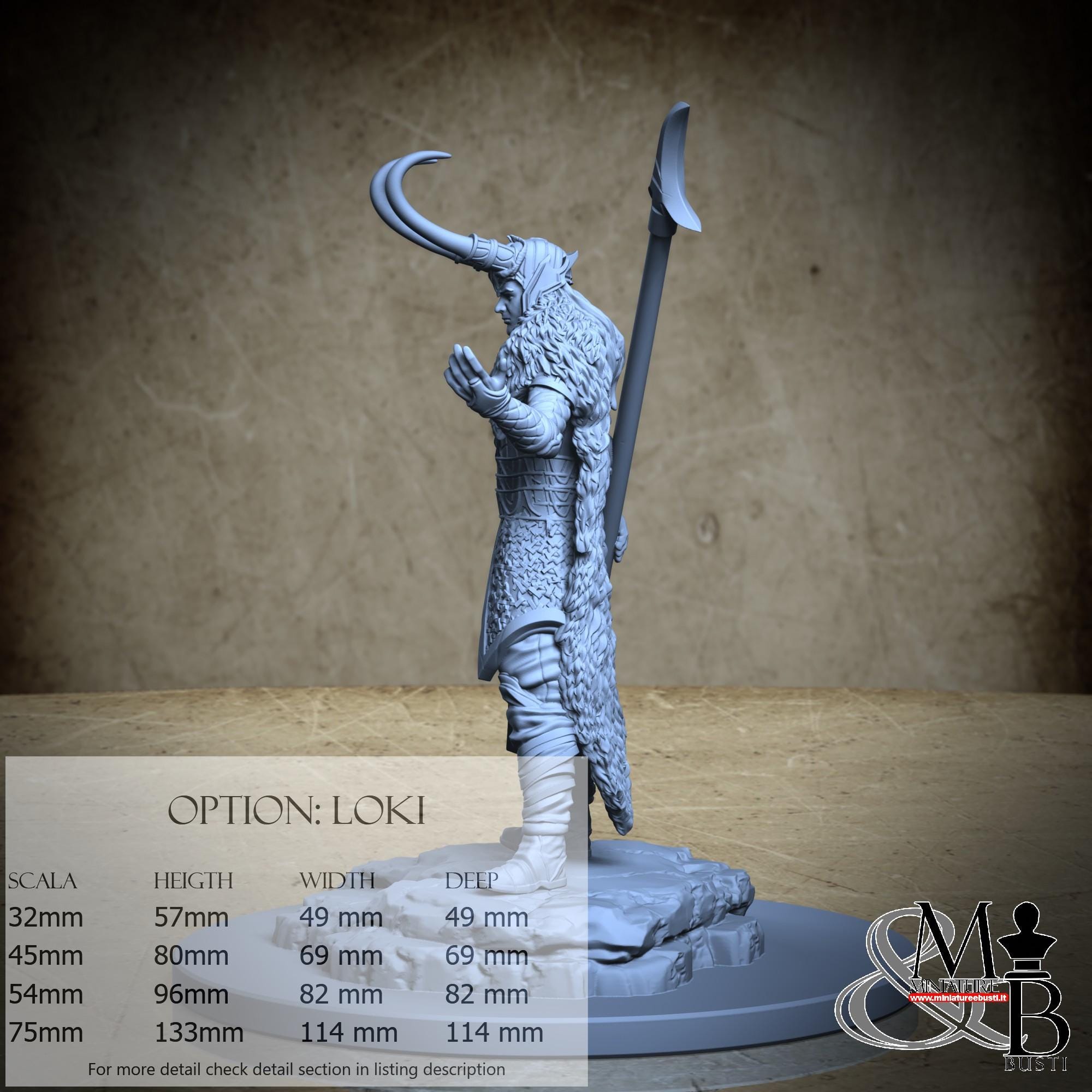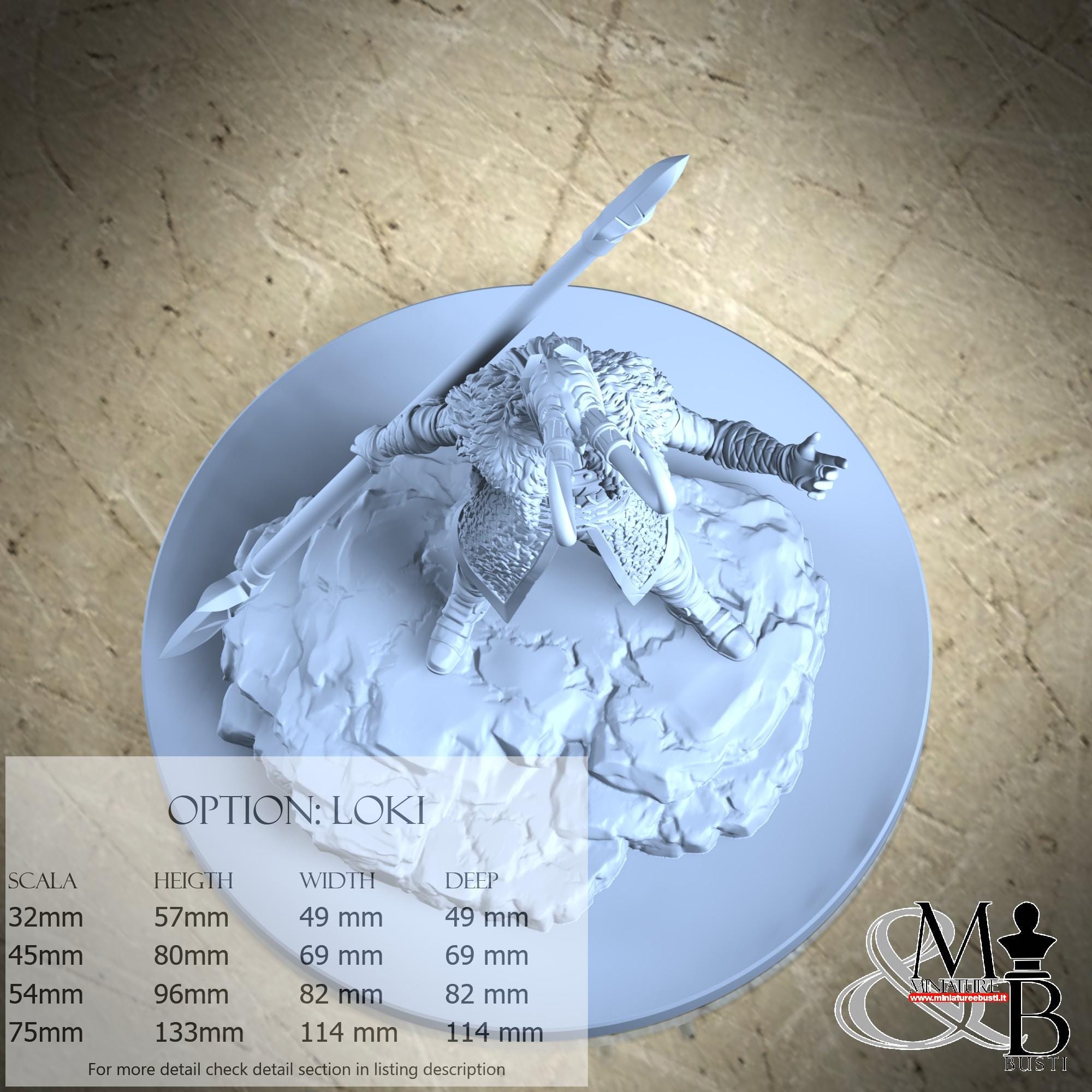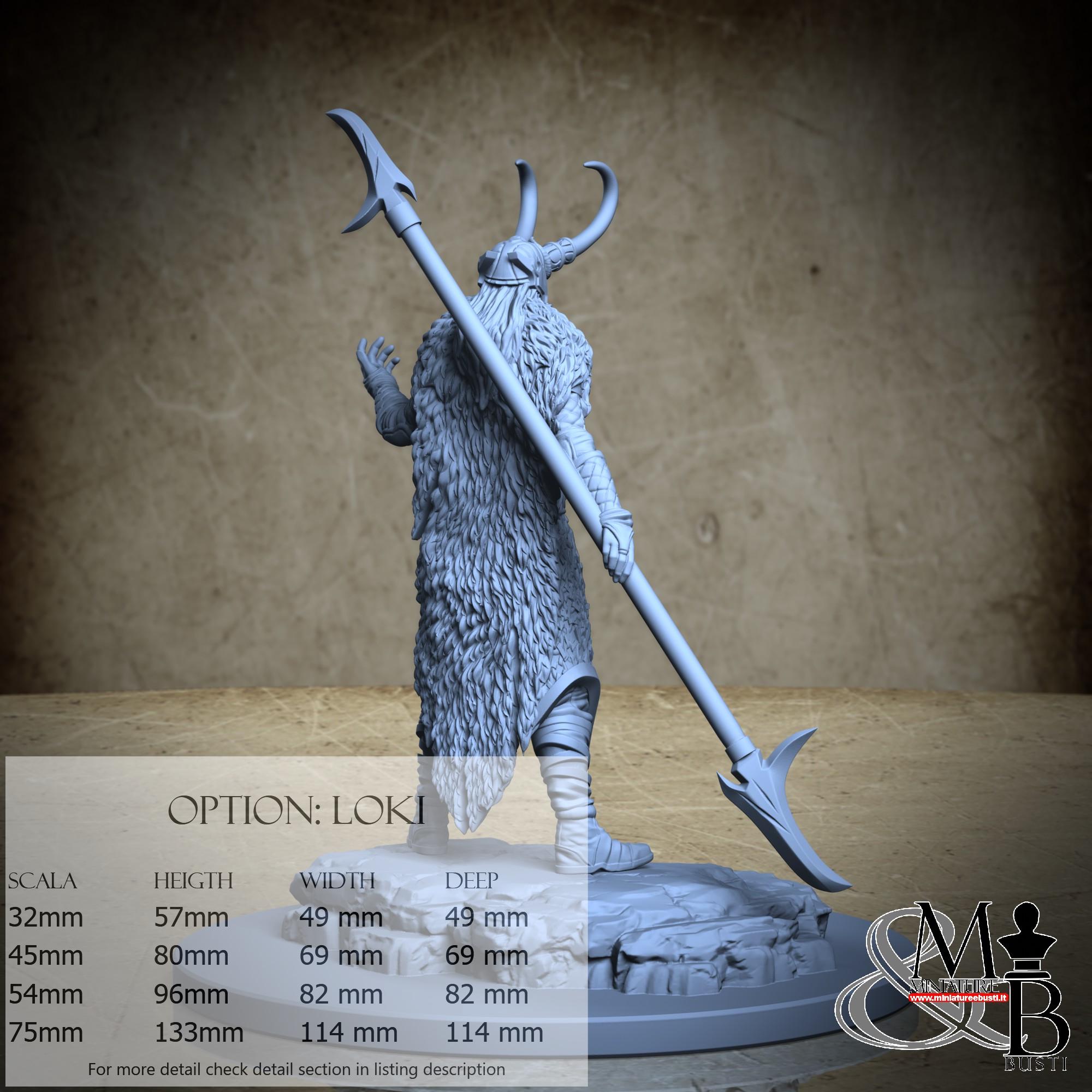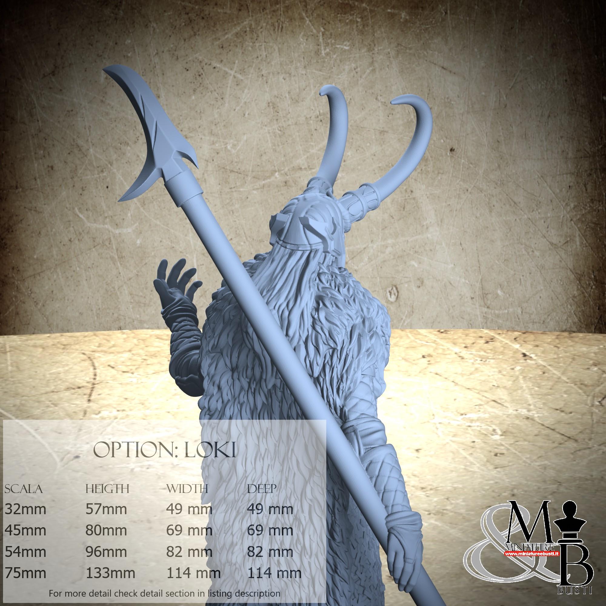 - Loki (1 piece) in Resin: Height: 114 mm, Width: 77 mm, Depth: 63 mm