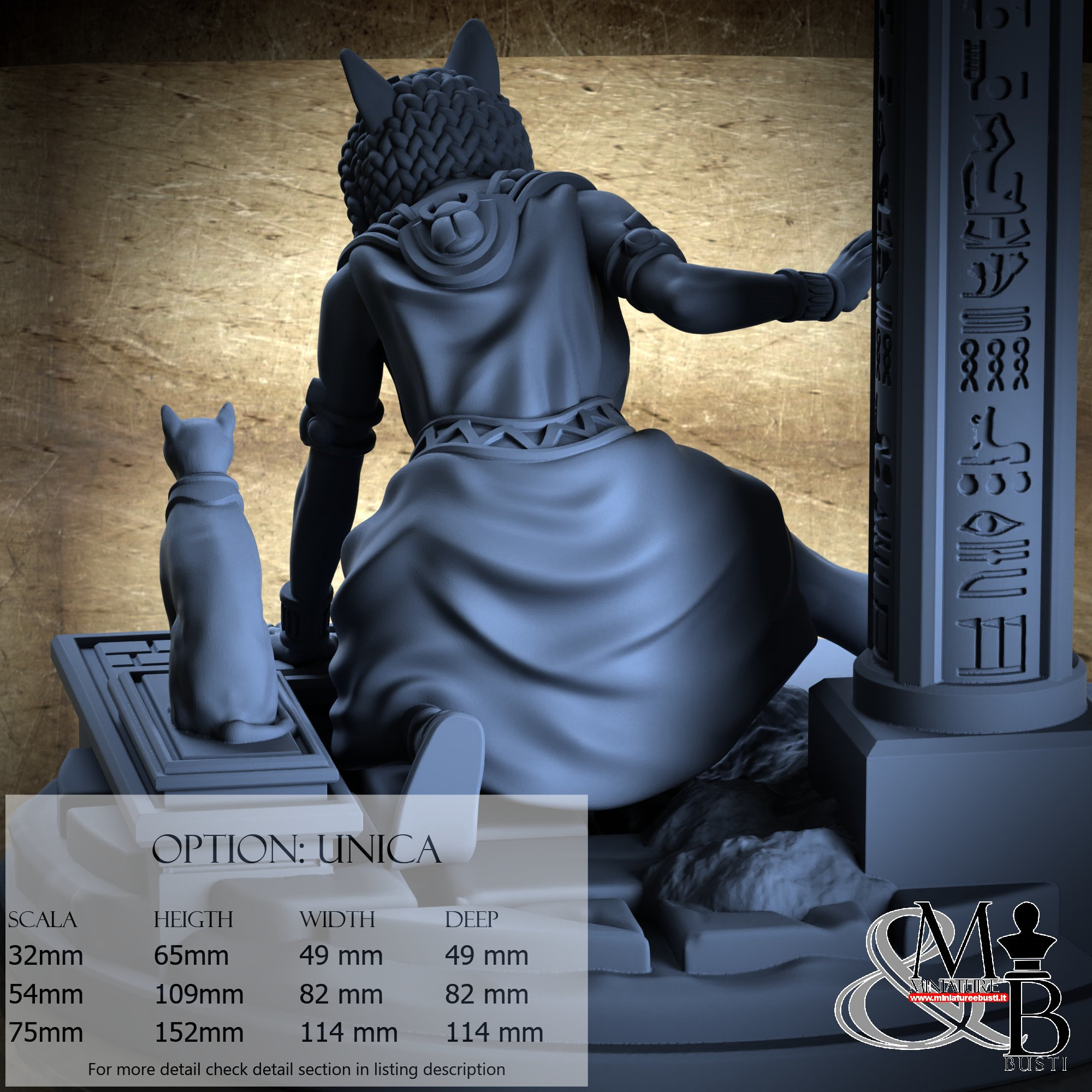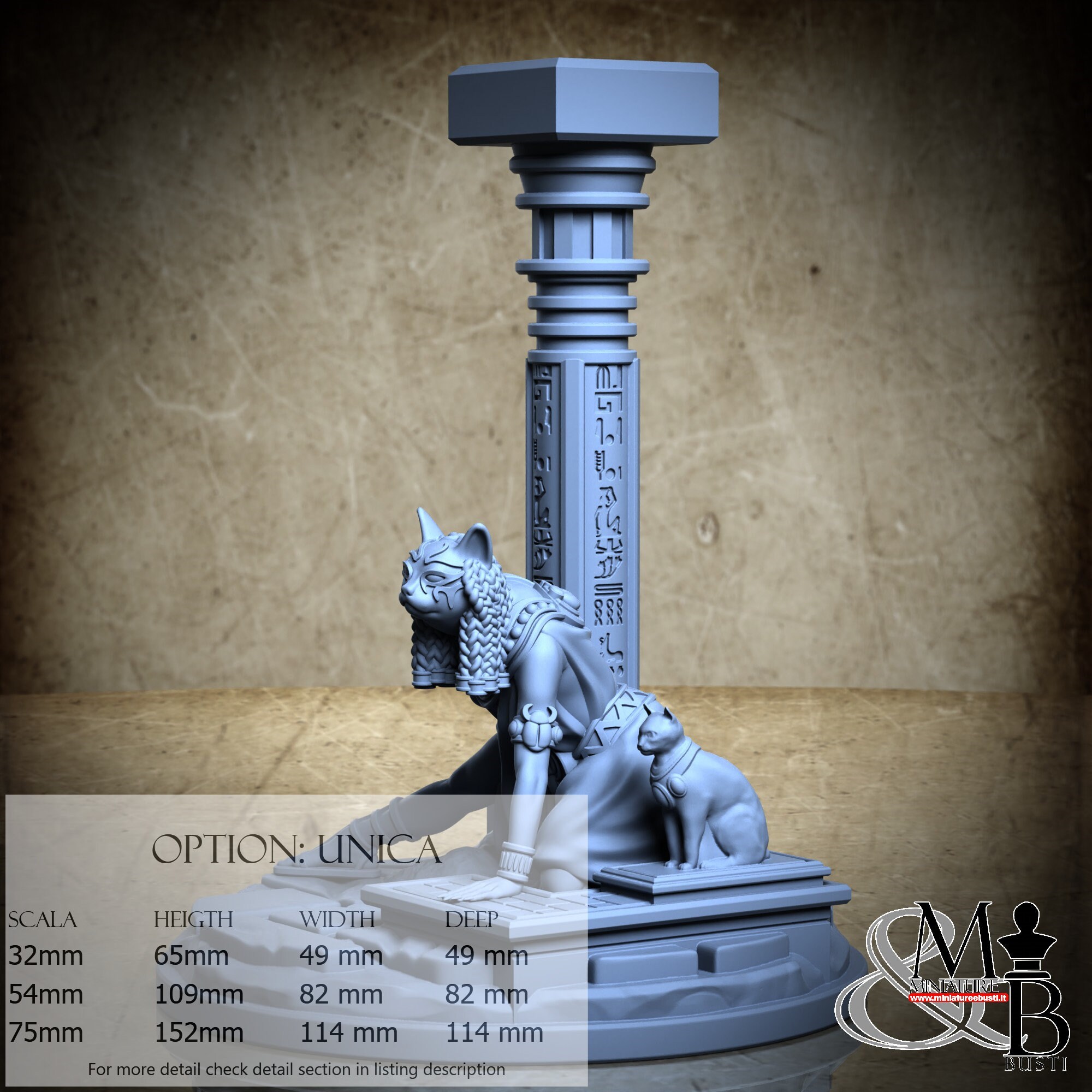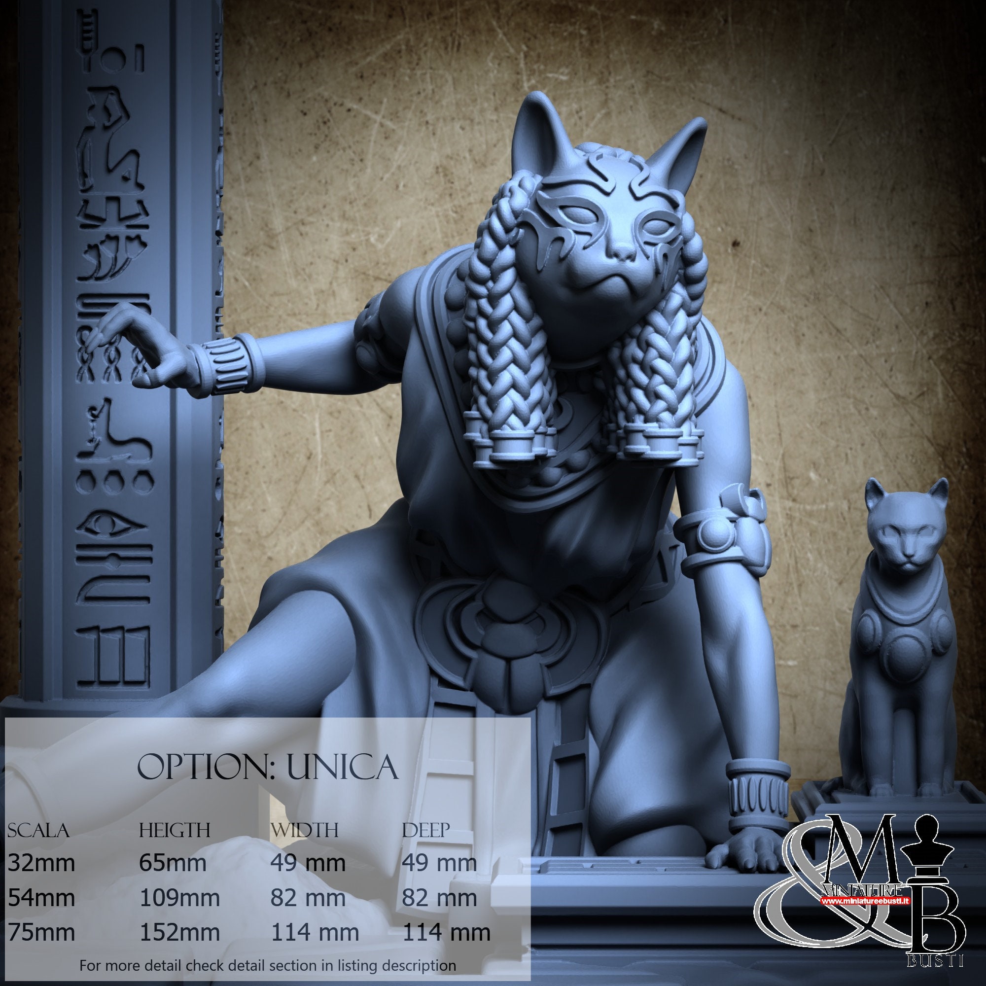 - Bastet (1 piece) in Resin: Height: 28 mm, Width: 34 mm, Depth: 26 mm