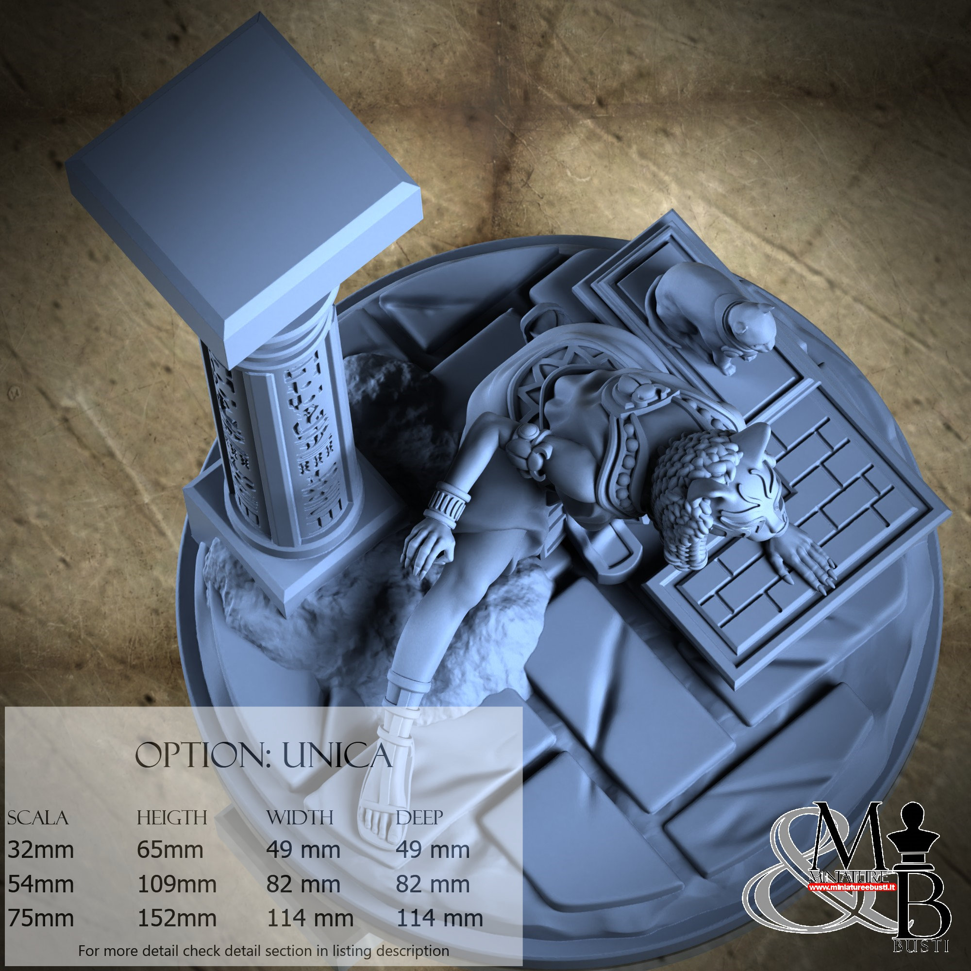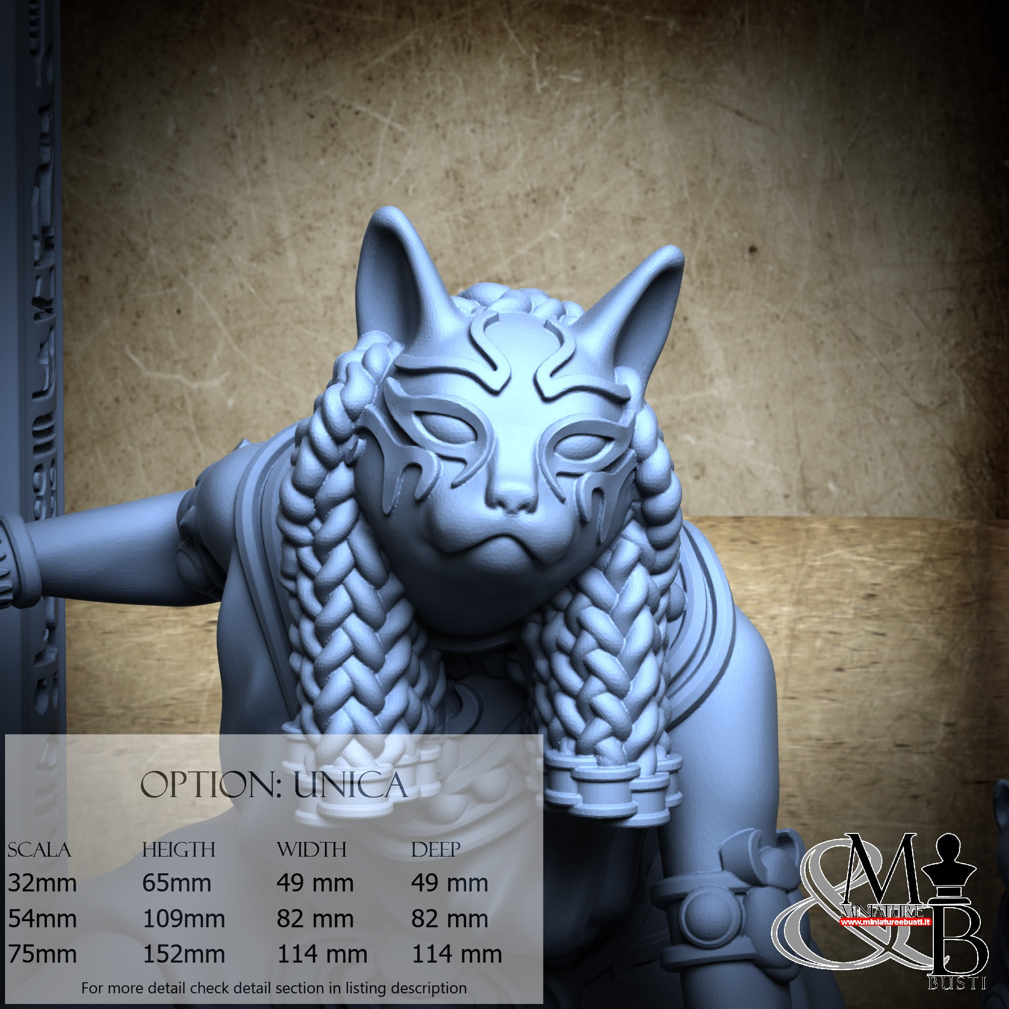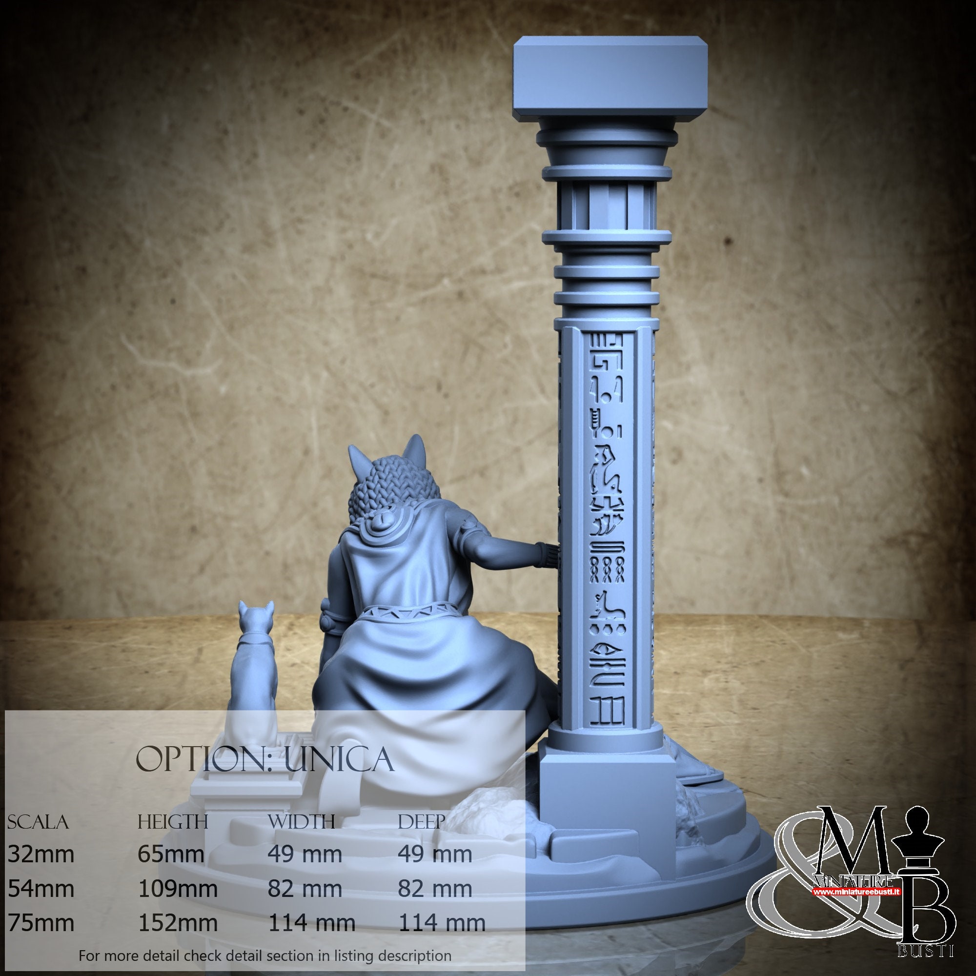 - Bastet (1 piece) in Resin: Height: 28 mm, Width: 34 mm, Depth: 26 mm