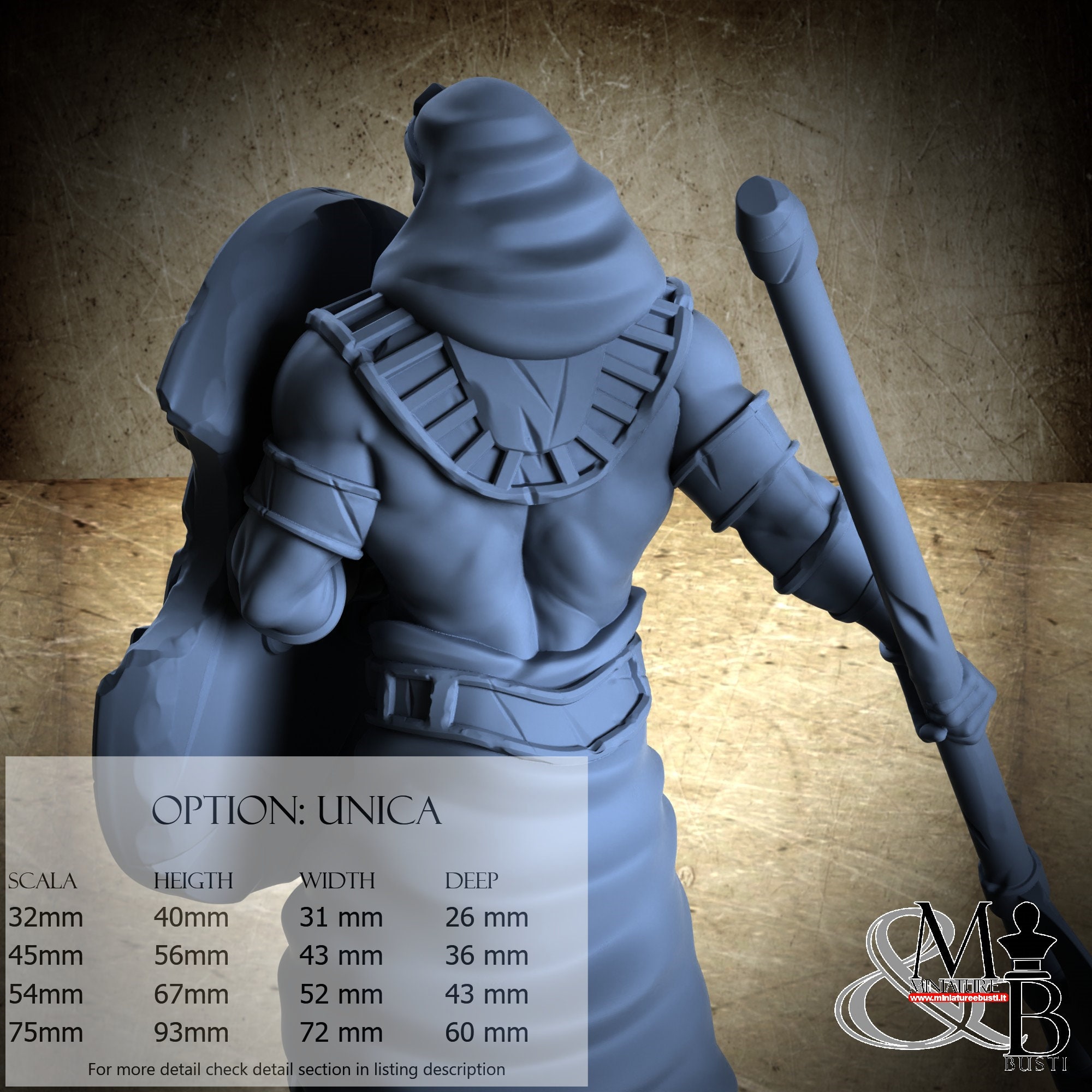 - Guard (3 pieces) in Resin: Height: 60 mm, Width: 47 mm, Depth: 37 mm