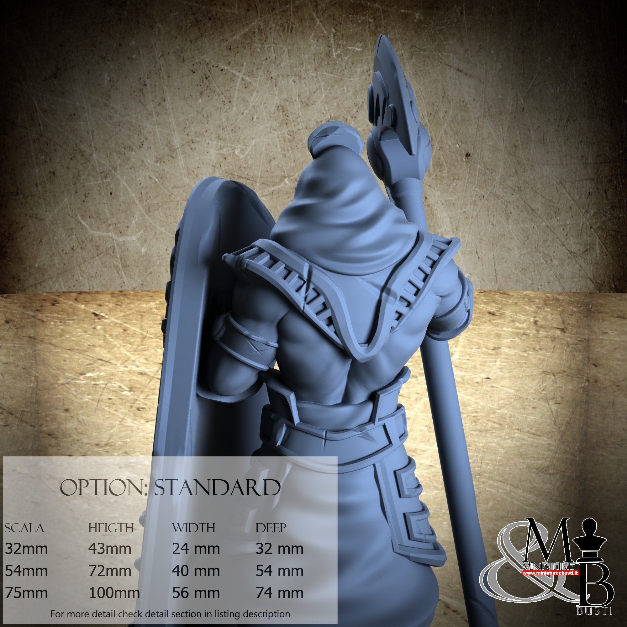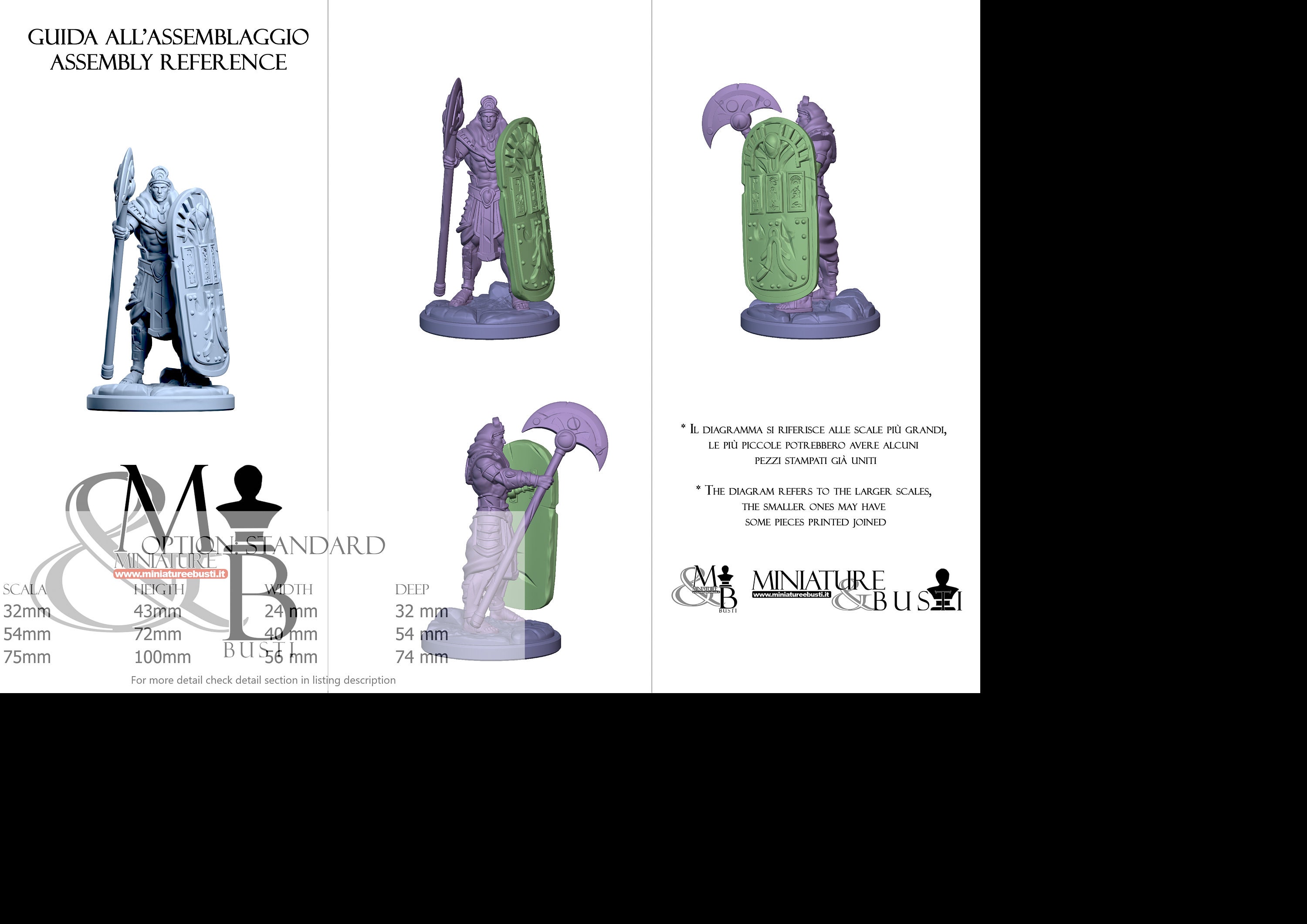 - Guard (2 pieces) in Resin: Height: 91 mm, Width: 49 mm, Depth: 56 mm