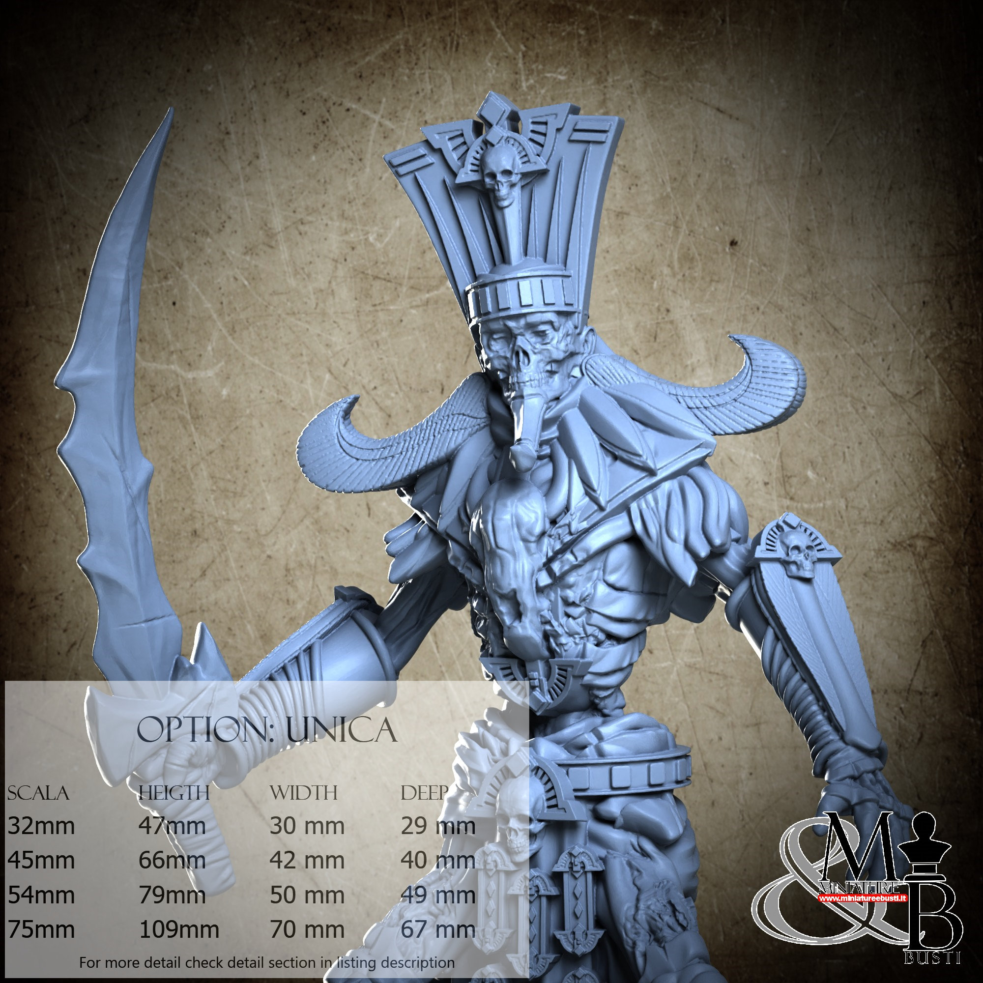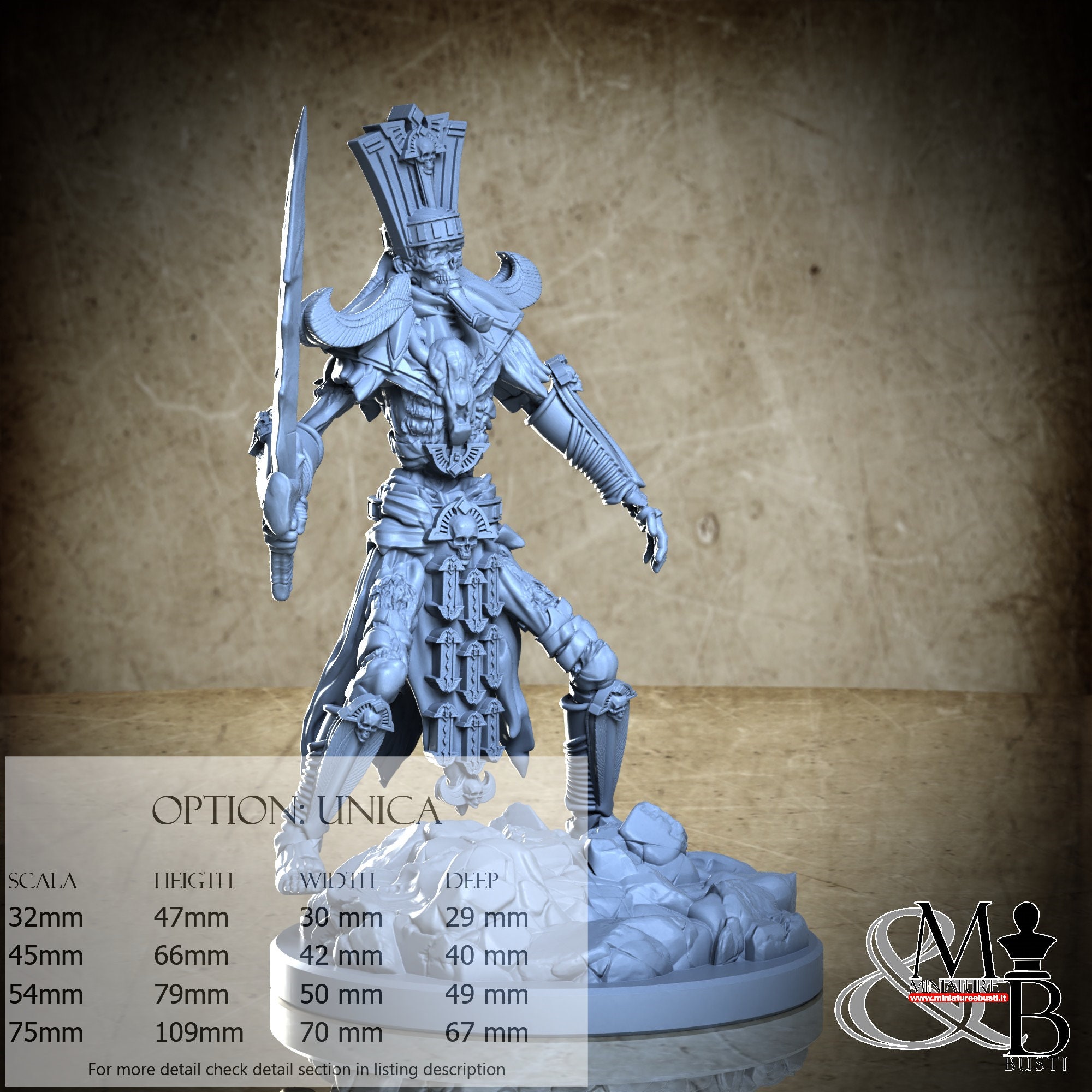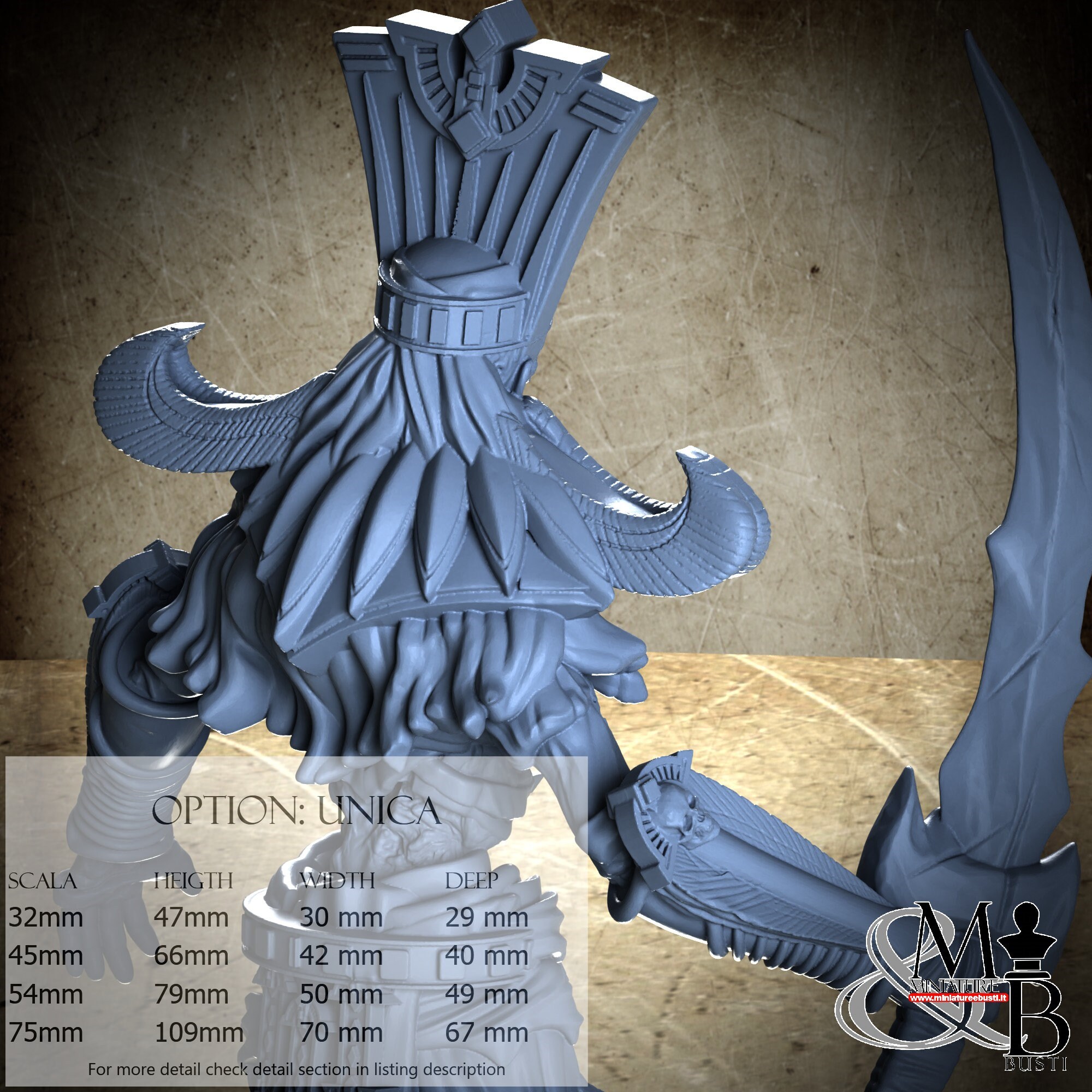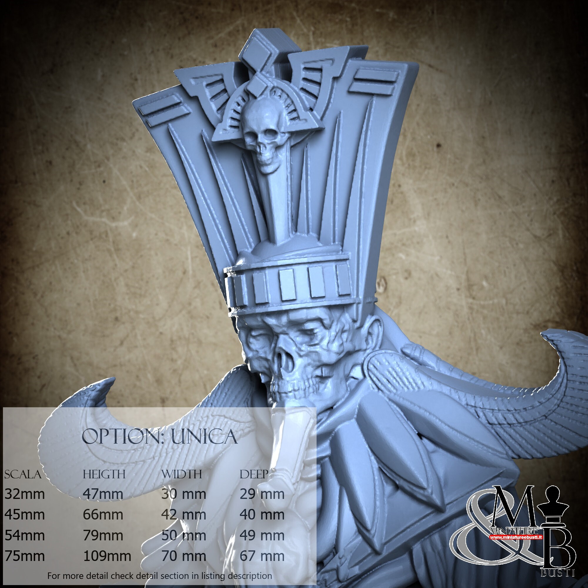 - Mummy (1 piece) in Resin: Height: 42 mm, Width: 27 mm, Depth: 17 mm