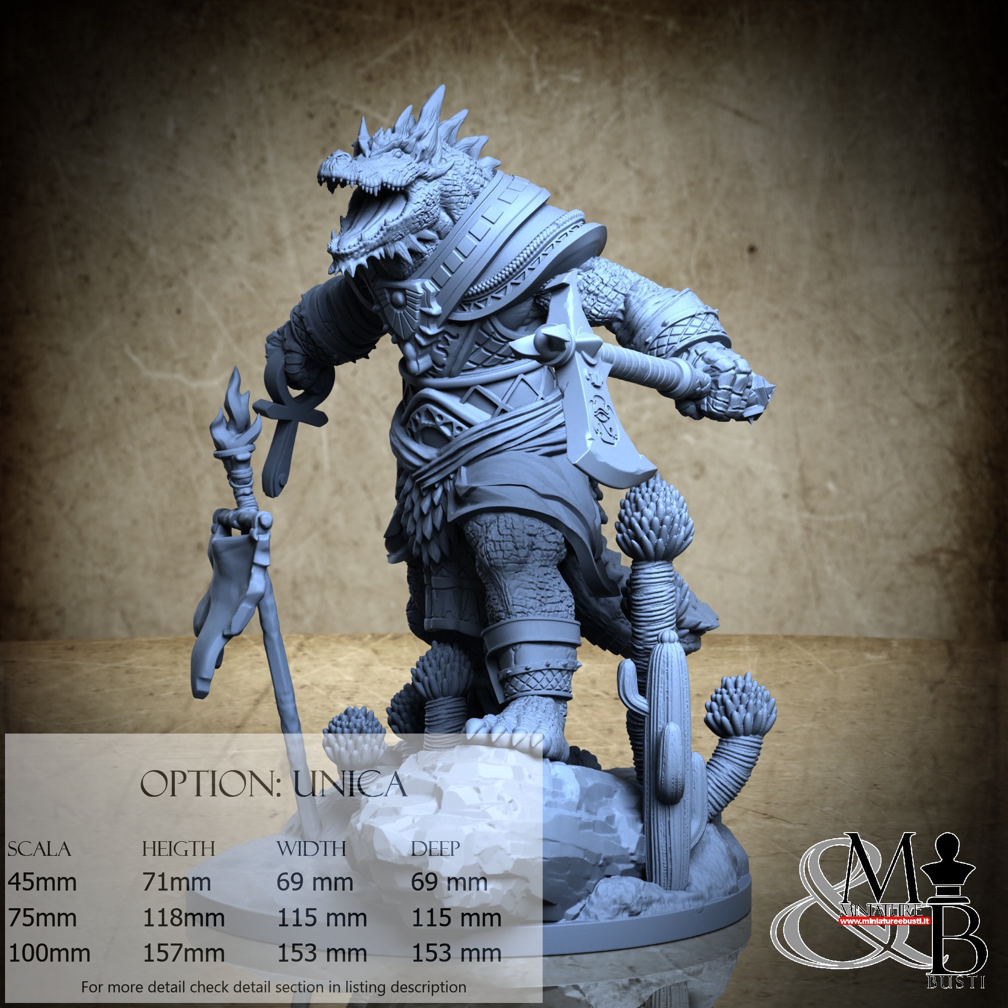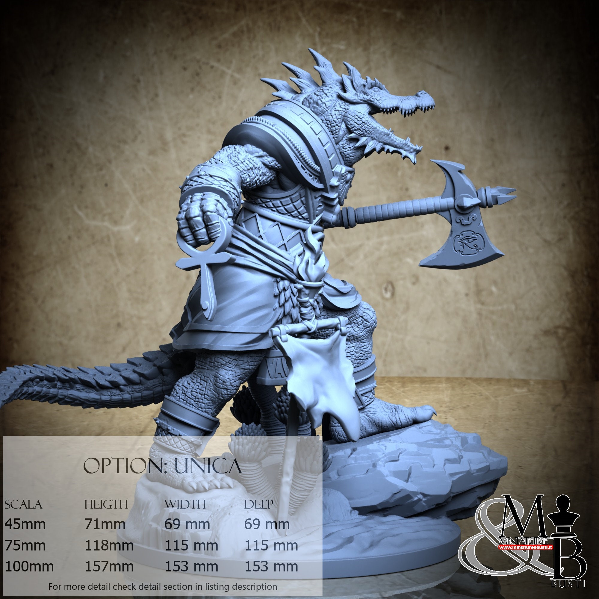 - Sobek (5 pieces) in Resin: Height: 61 mm, Width: 69 mm, Depth: 56 mm