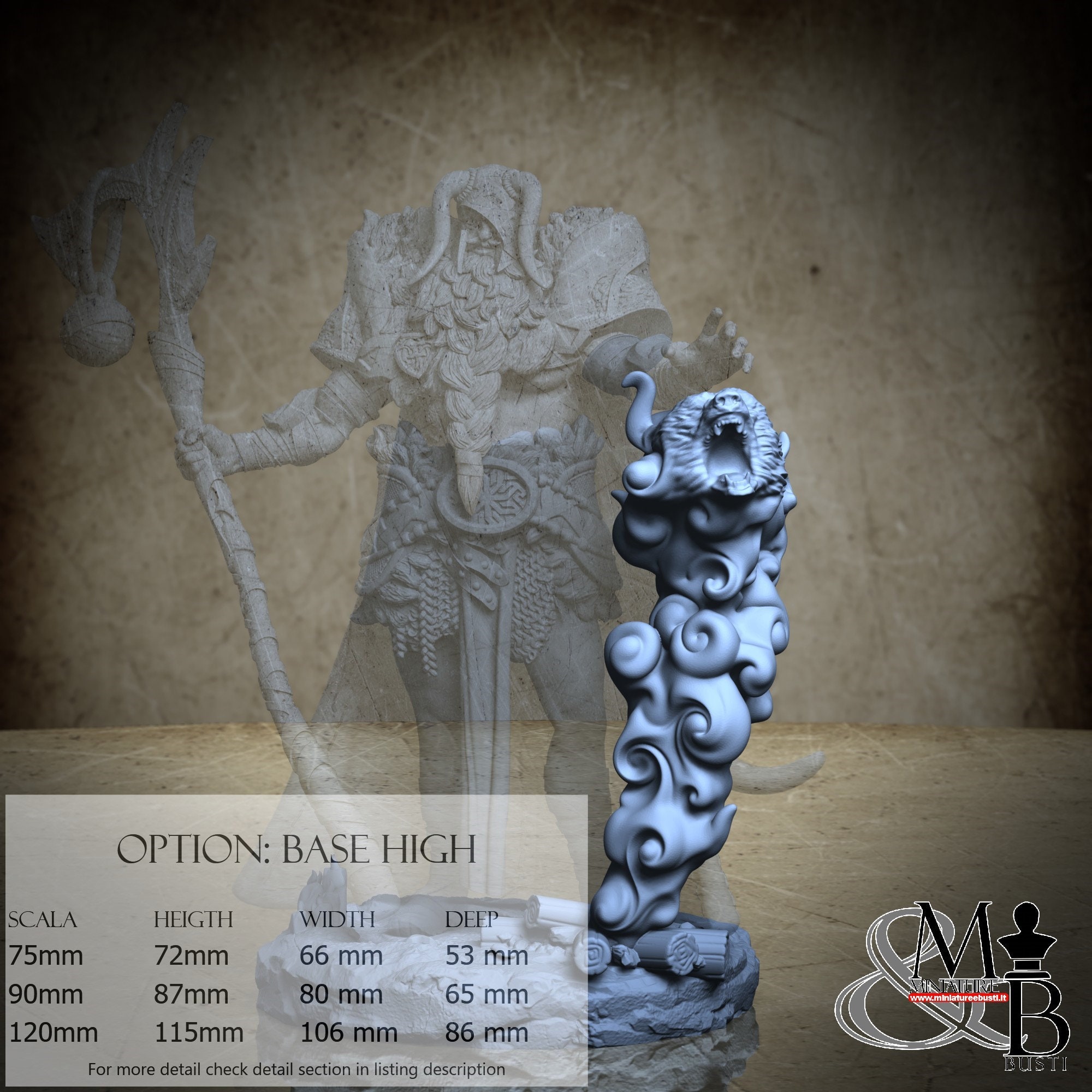 - Modello (1 pezzi) in Resina : Altezza: 72 mm, Larghezza: 66 mm, Profondità: 53 mm