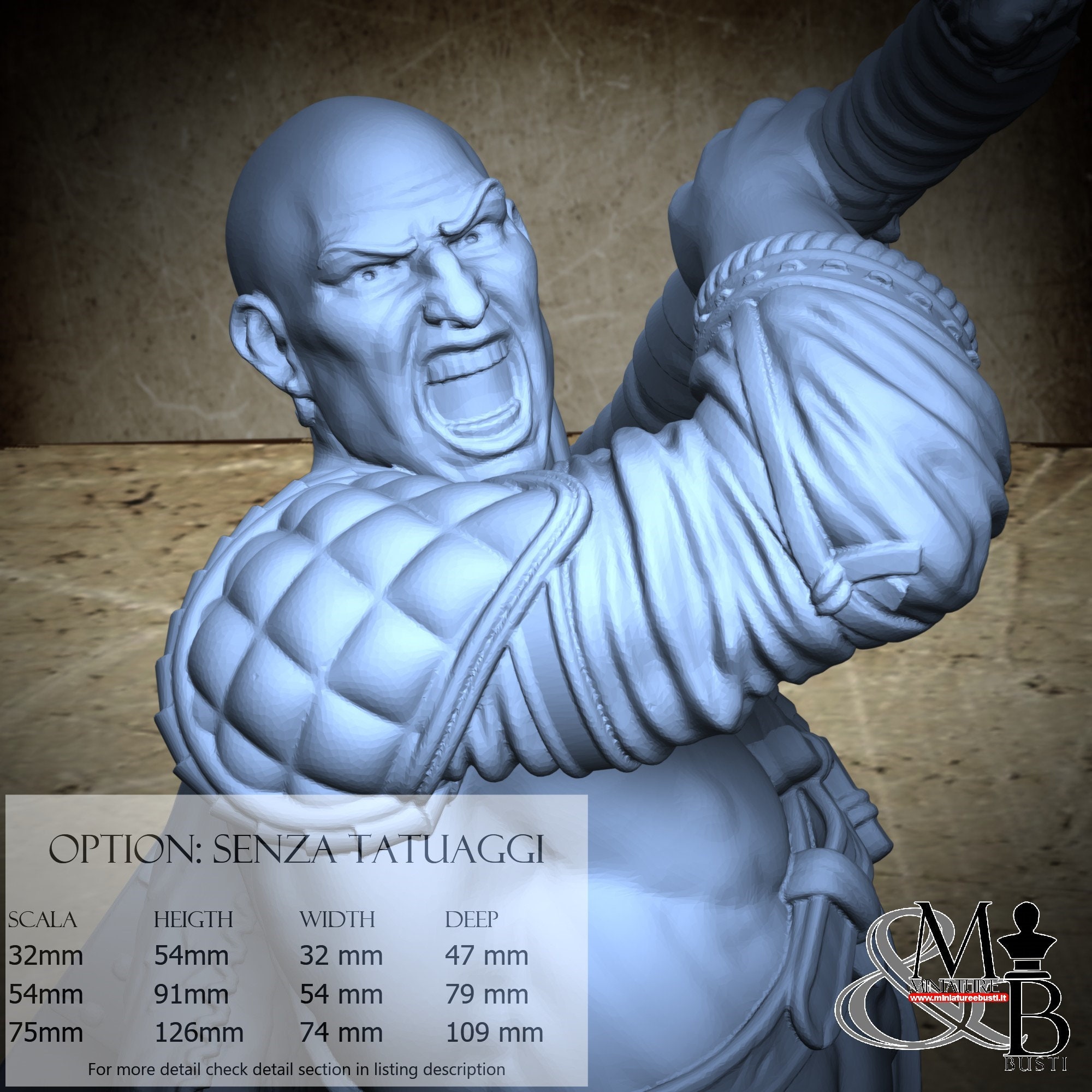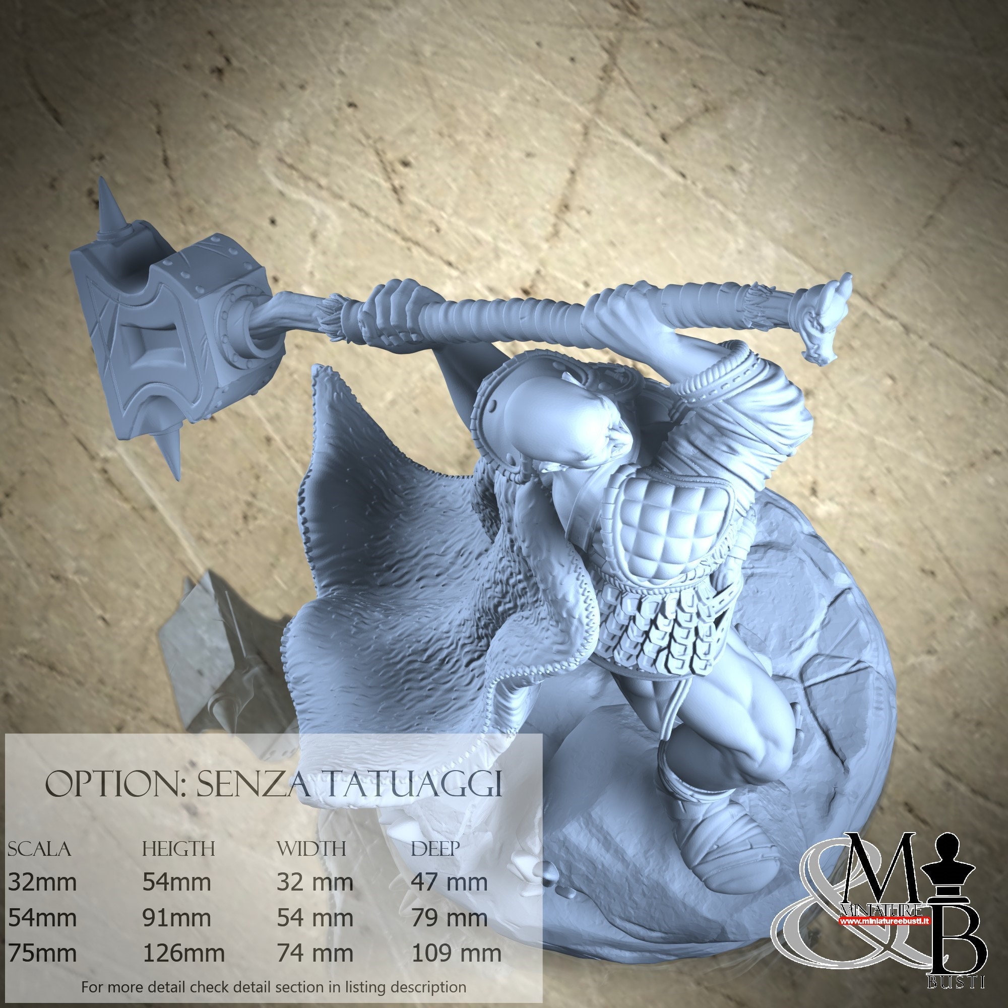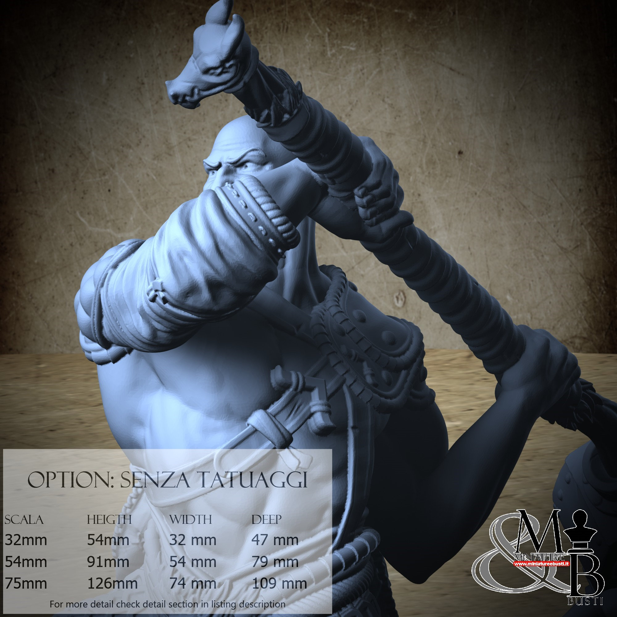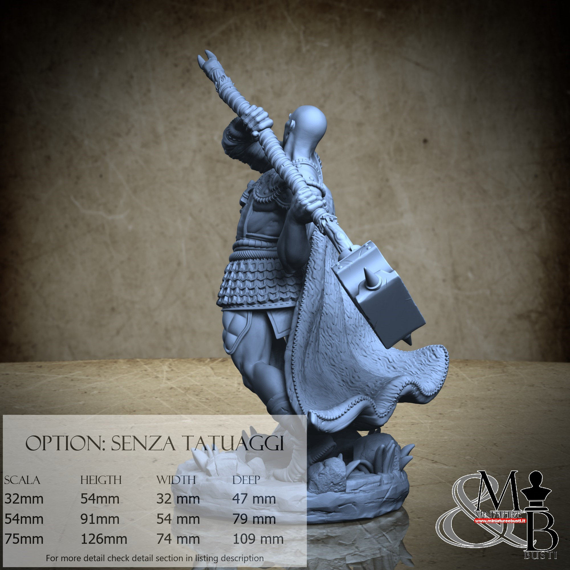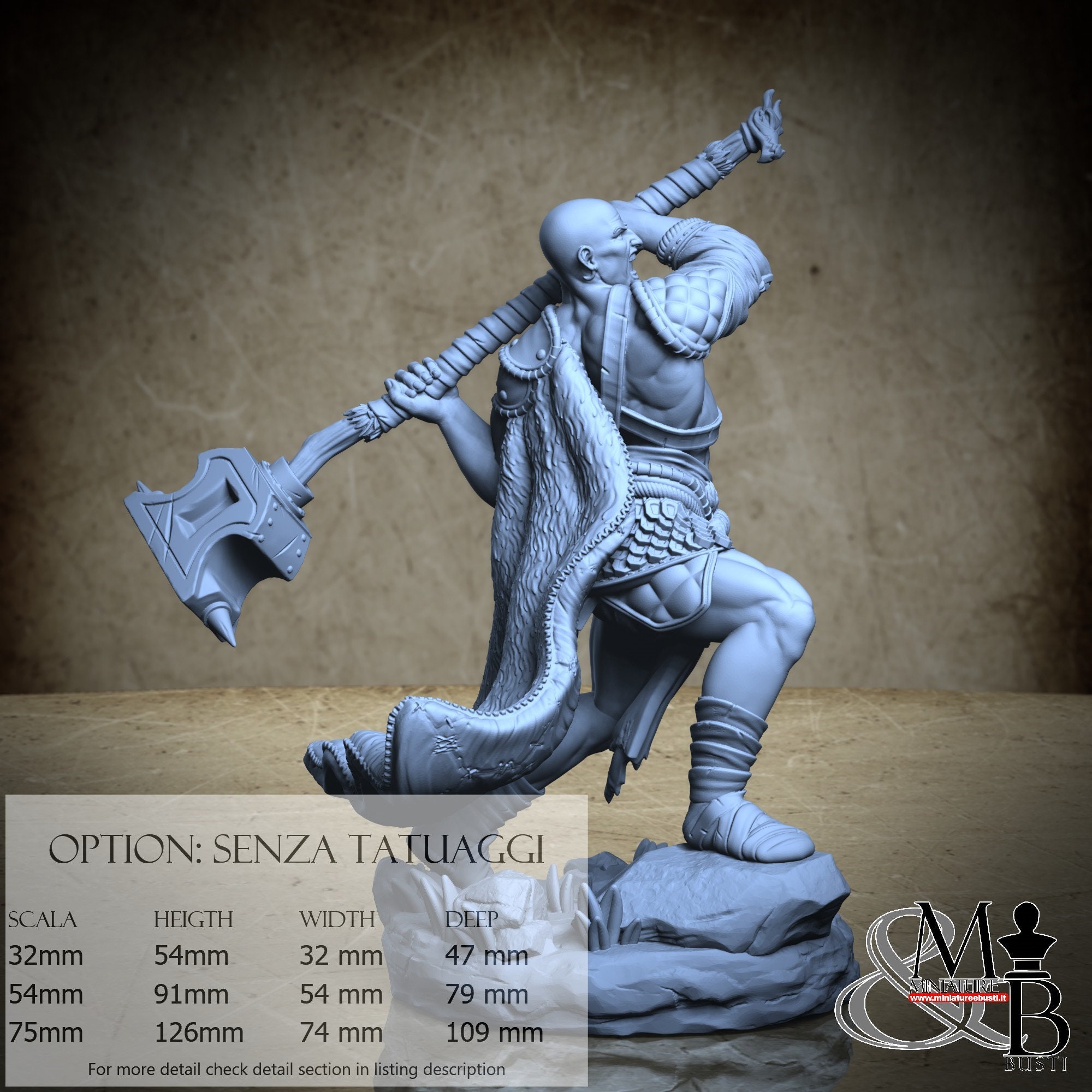 - Warrior (1 piece) in Resin: Height: 84 mm, Width: 49 mm, Depth: 76 mm