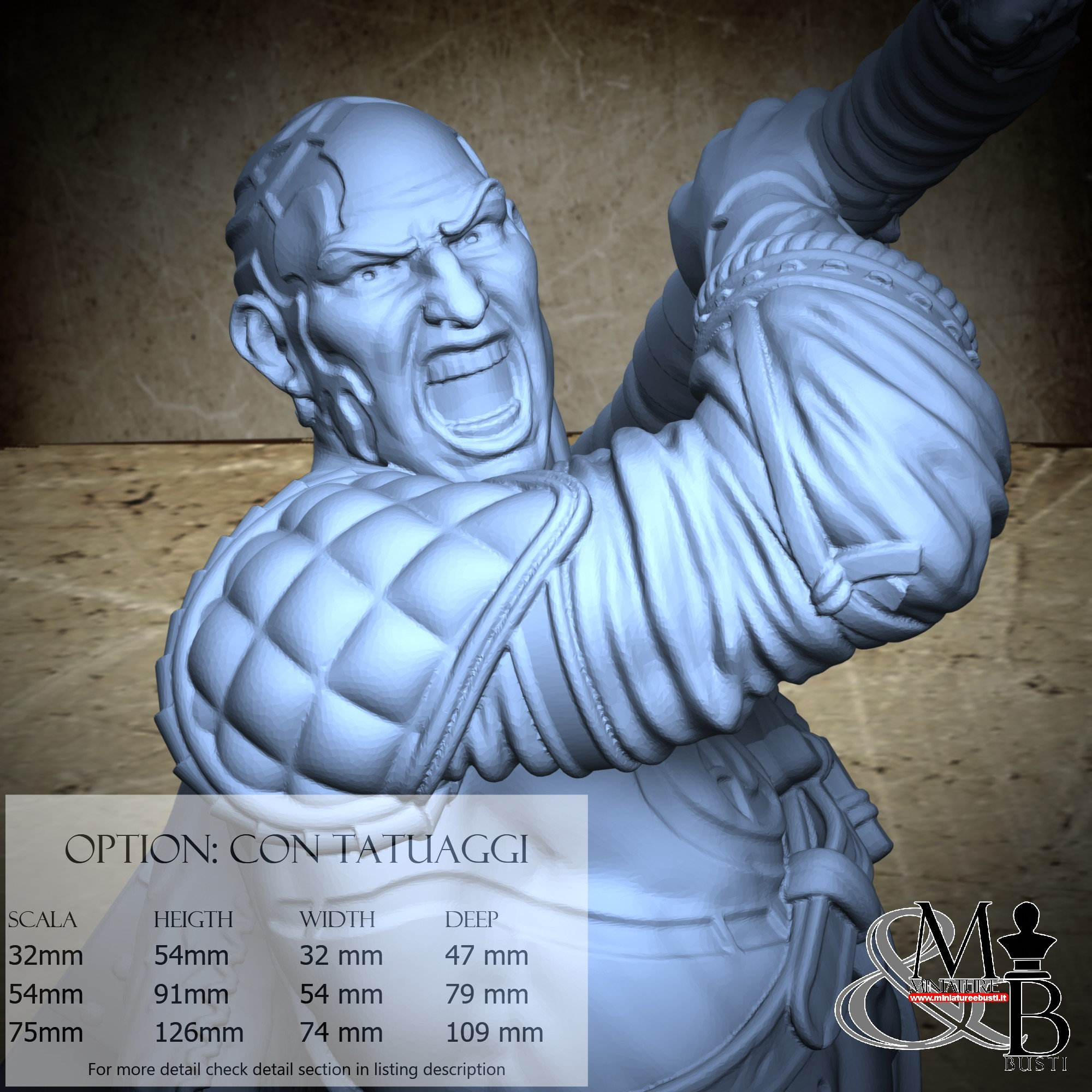 - Warrior (1 piece) in Resin: Height: 50 mm, Width: 29 mm, Depth: 45 mm