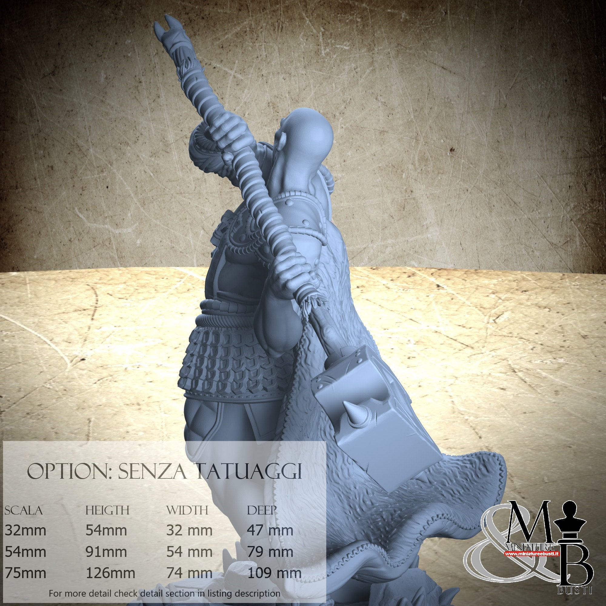 - Warrior (1 piece) in Resin: Height: 117 mm, Width: 67 mm, Depth: 105 mm