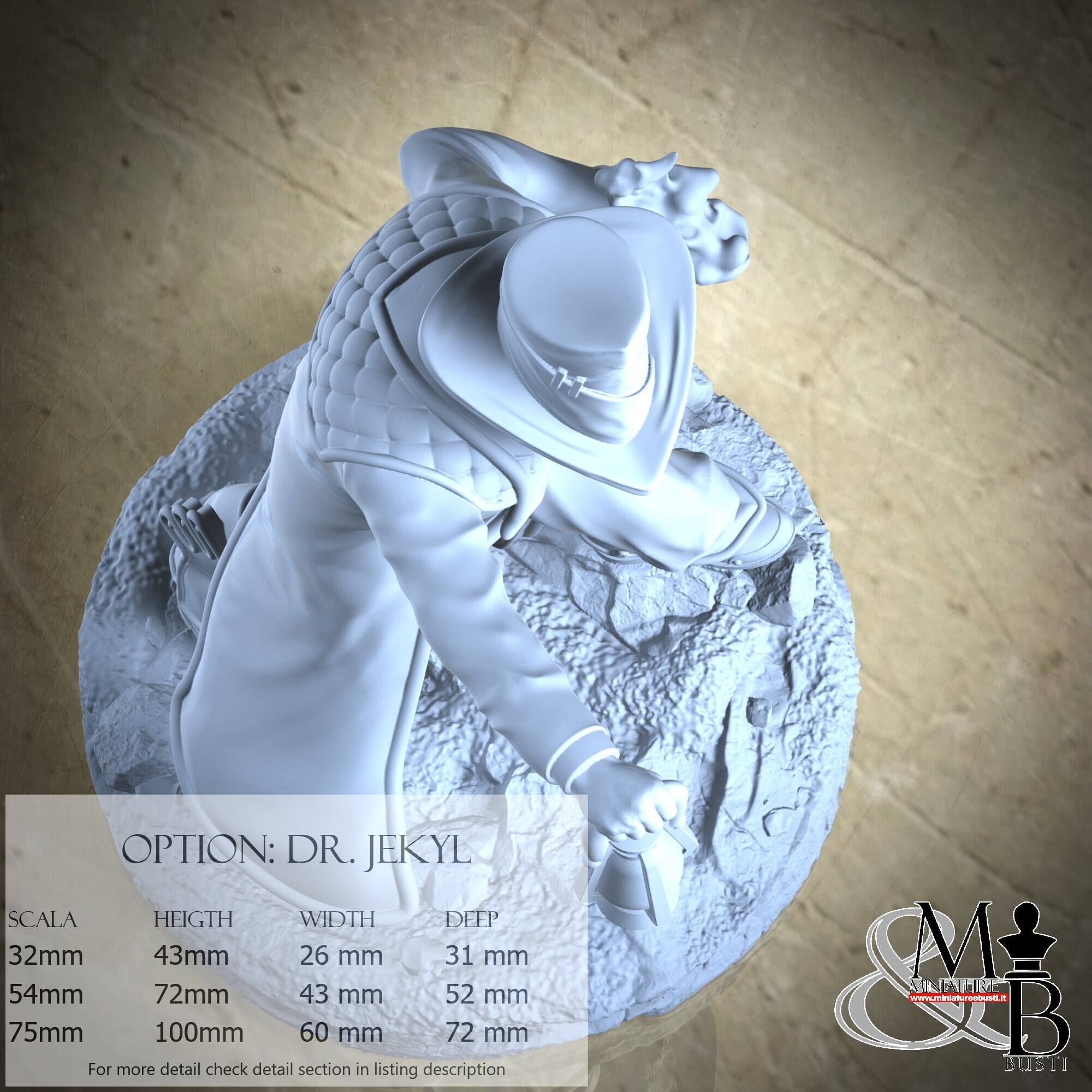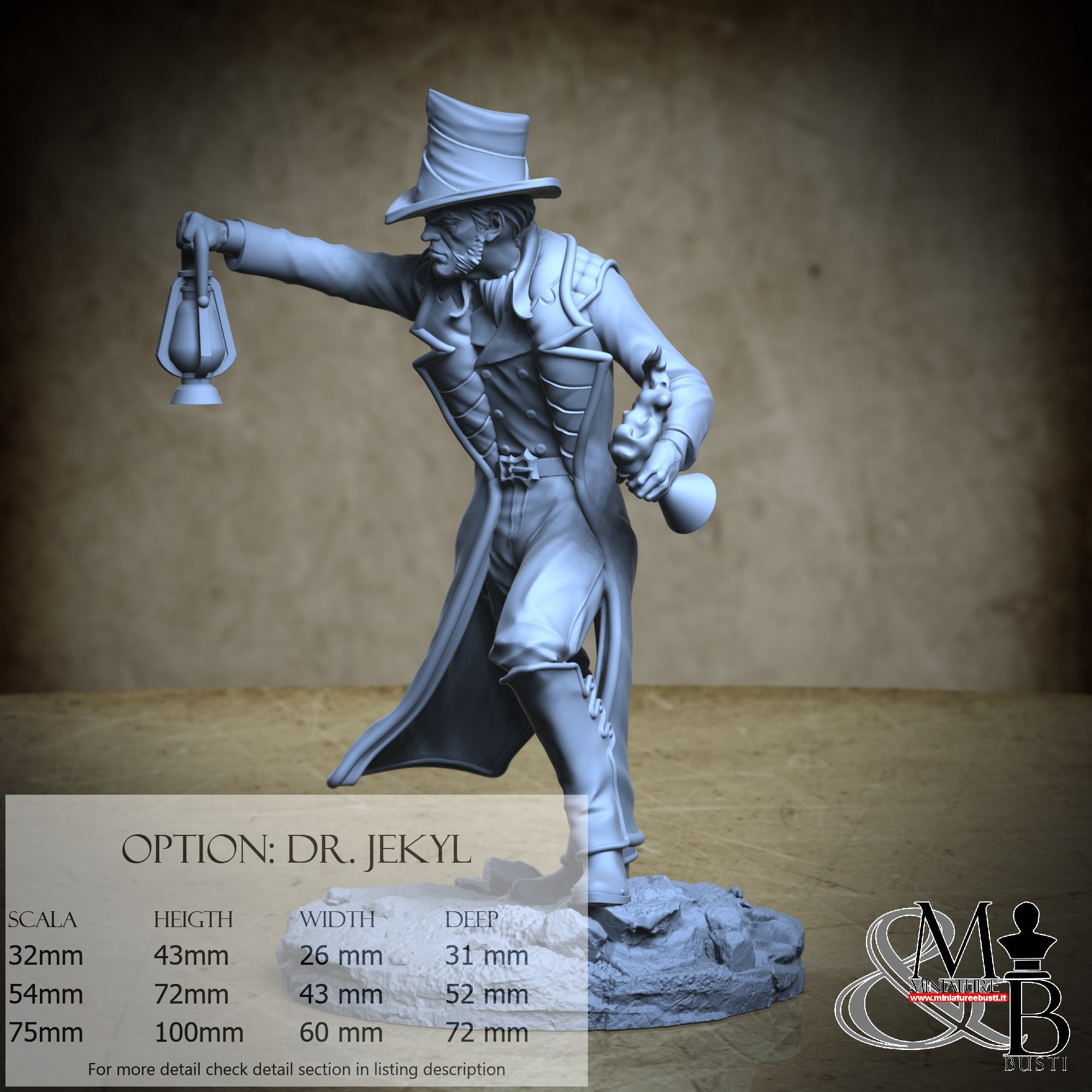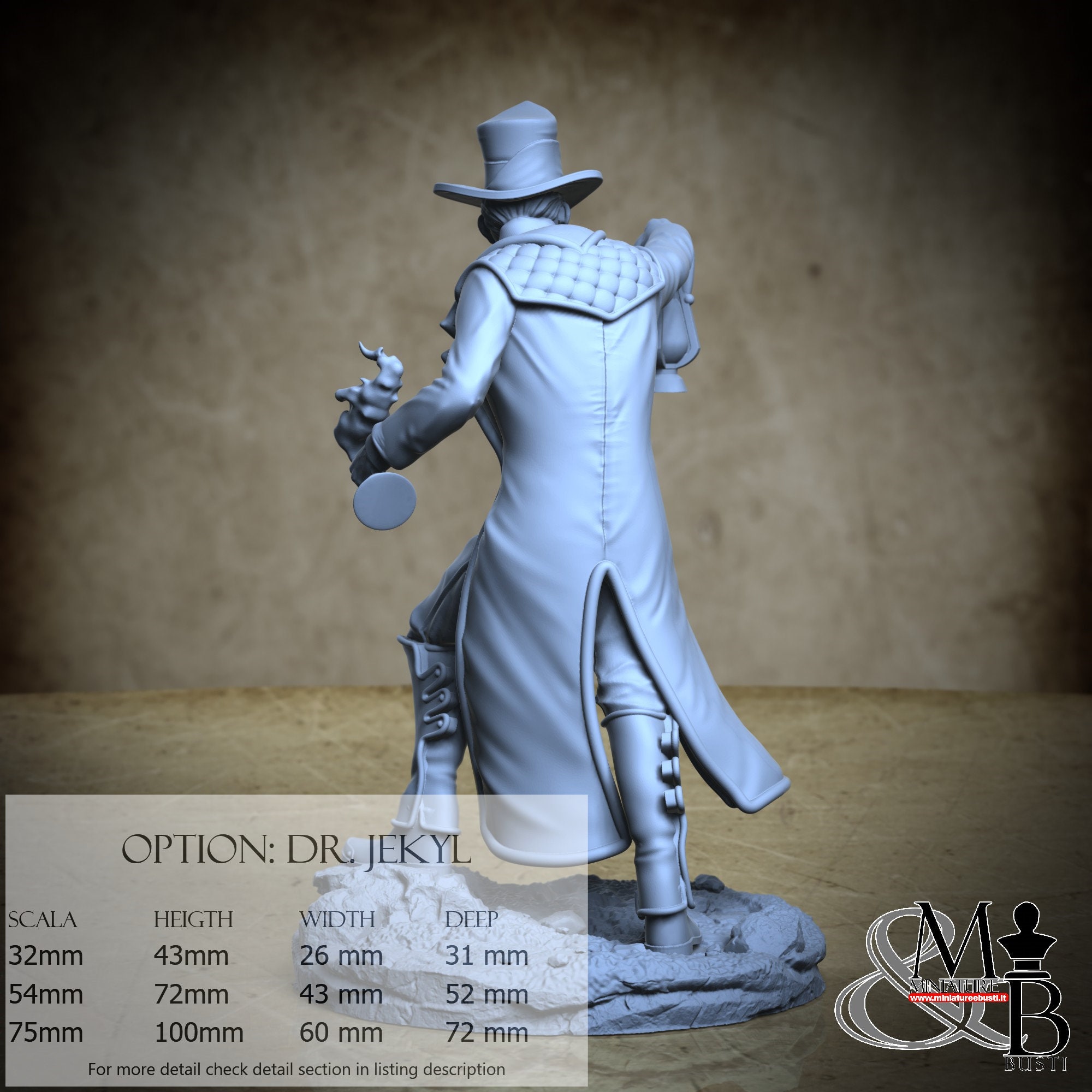 - Dr. Jekyl (1 piece) in Resin: Height: 93 mm, Width: 51 mm, Depth: 63 mm