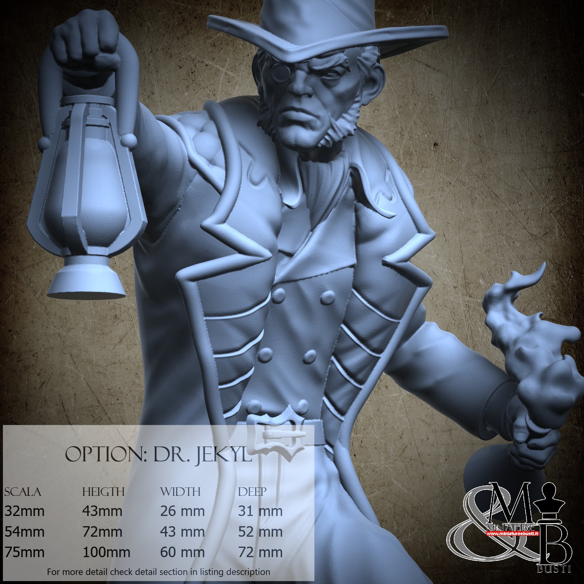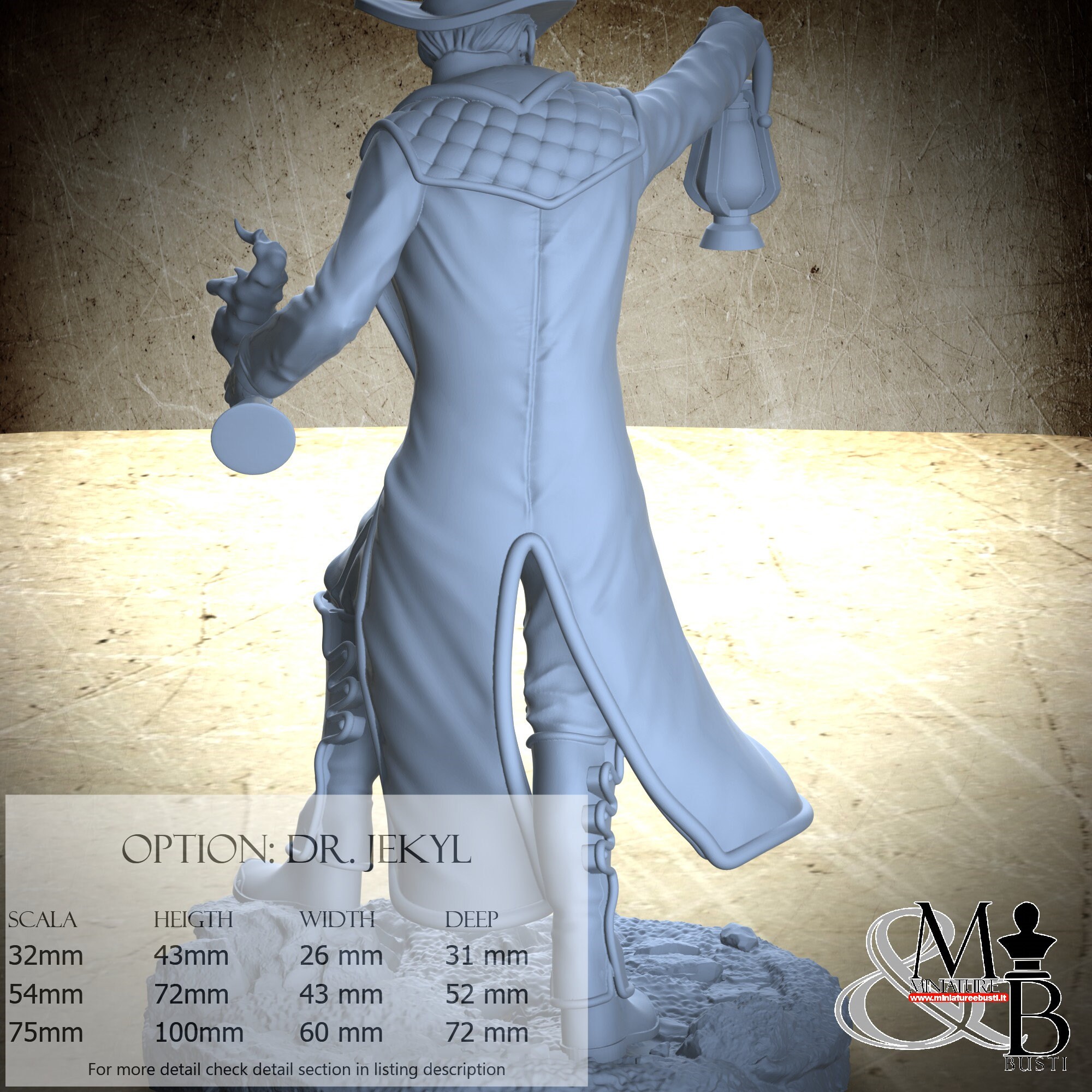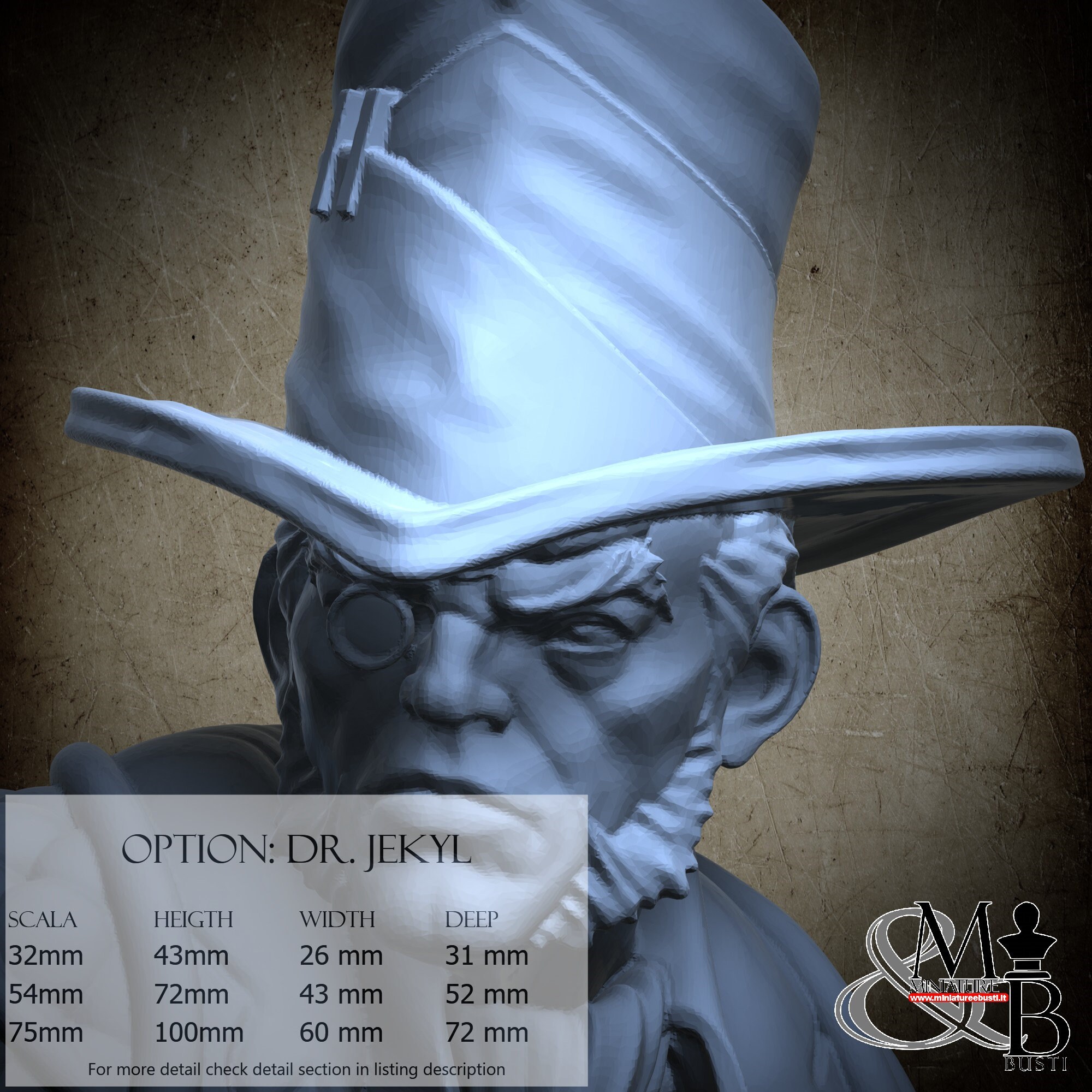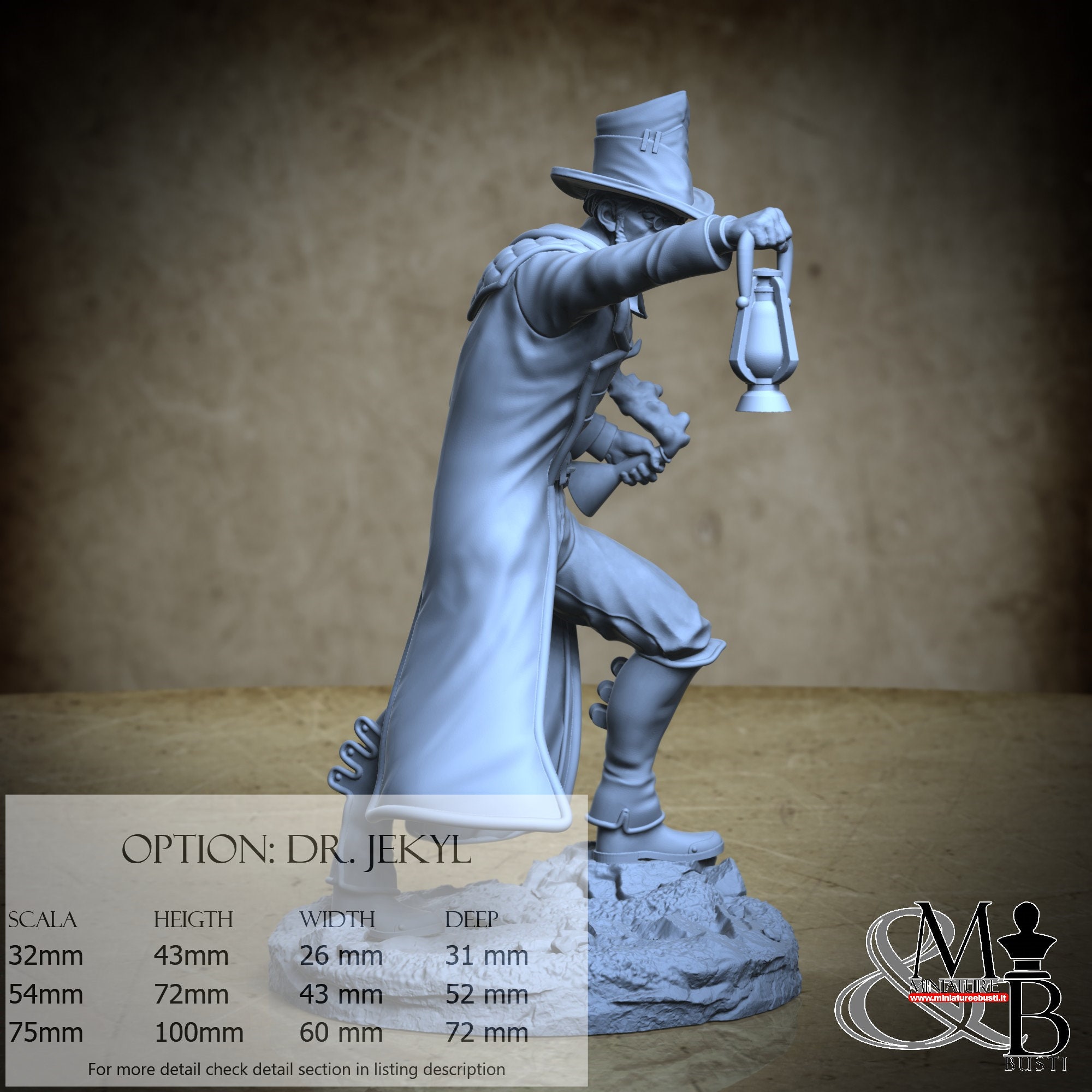 - Dr. Jekyl (1 piece) in Resin: Height: 93 mm, Width: 51 mm, Depth: 63 mm