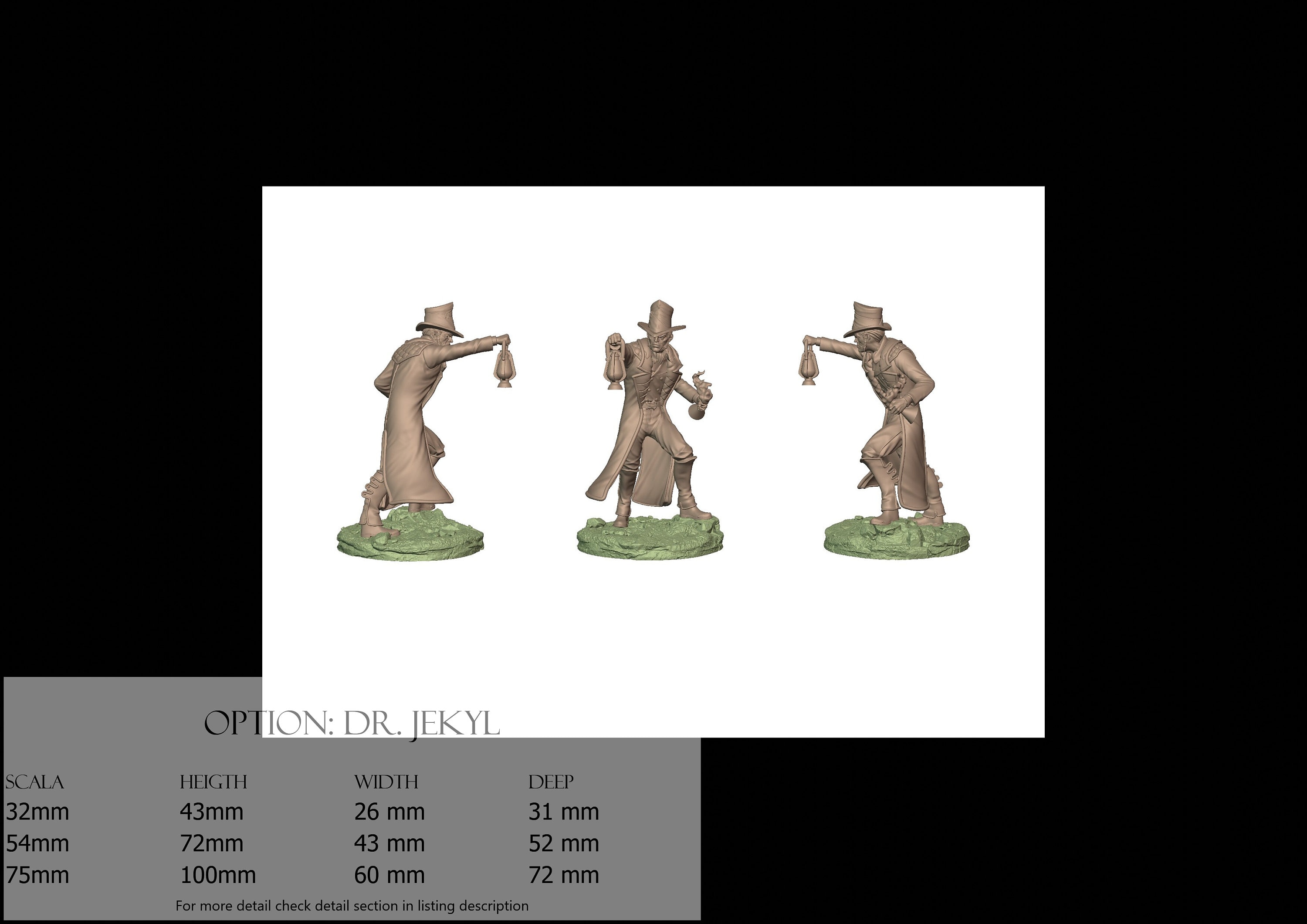 - Dr. Jekyl (1 piece) in Resin: Height: 67 mm, Width: 37 mm, Depth: 45 mm