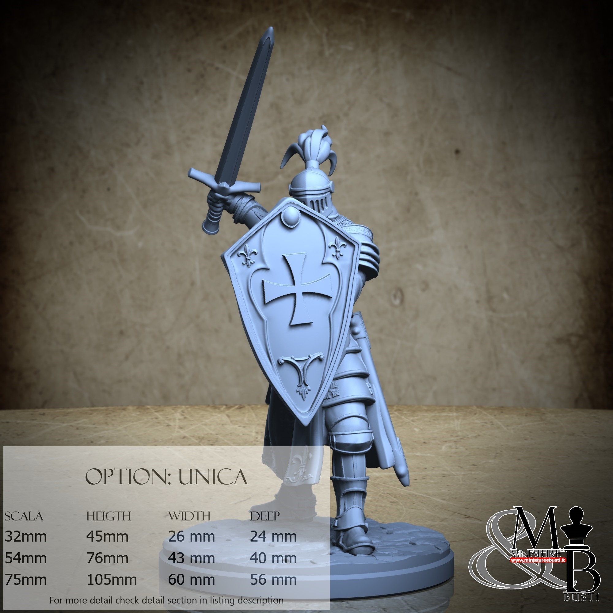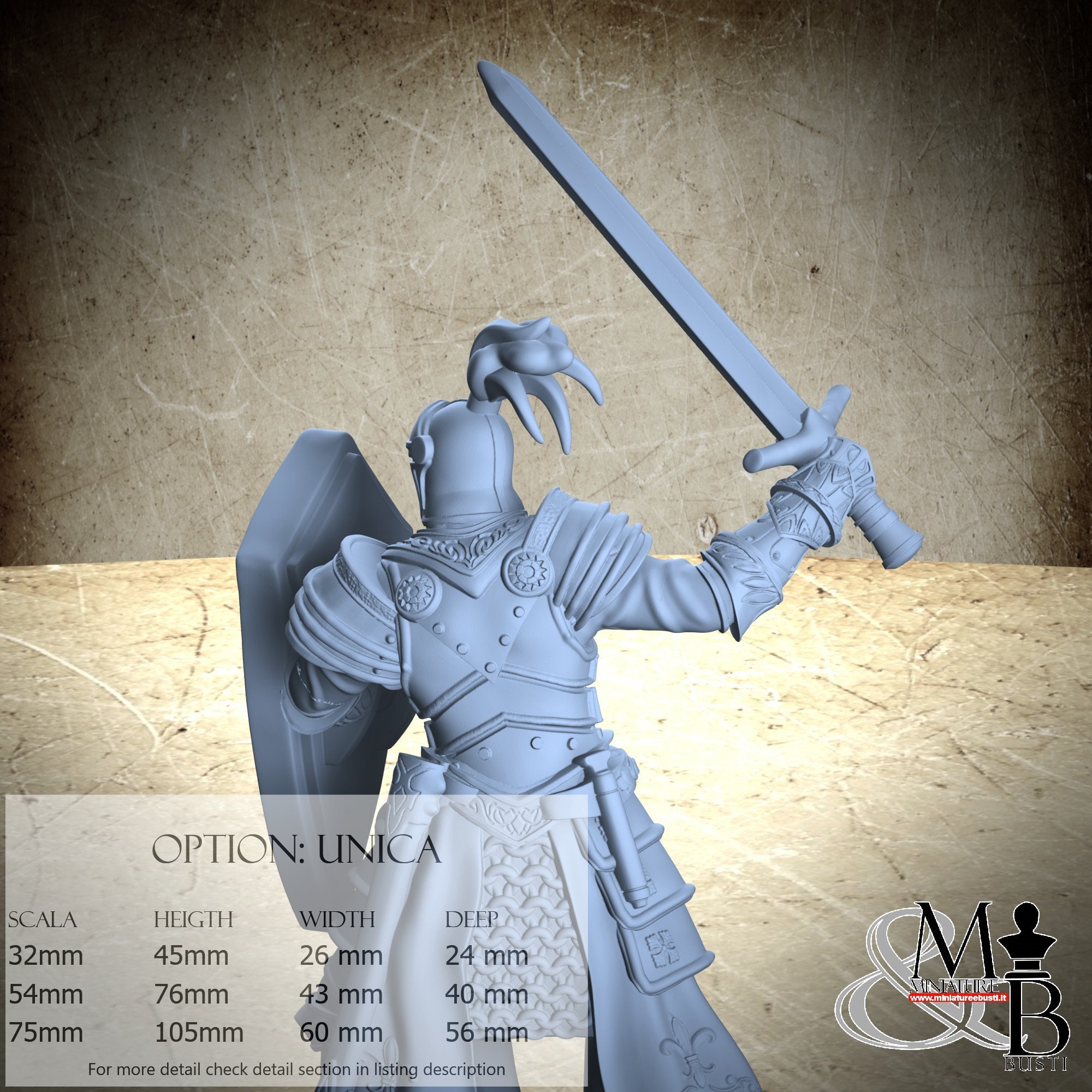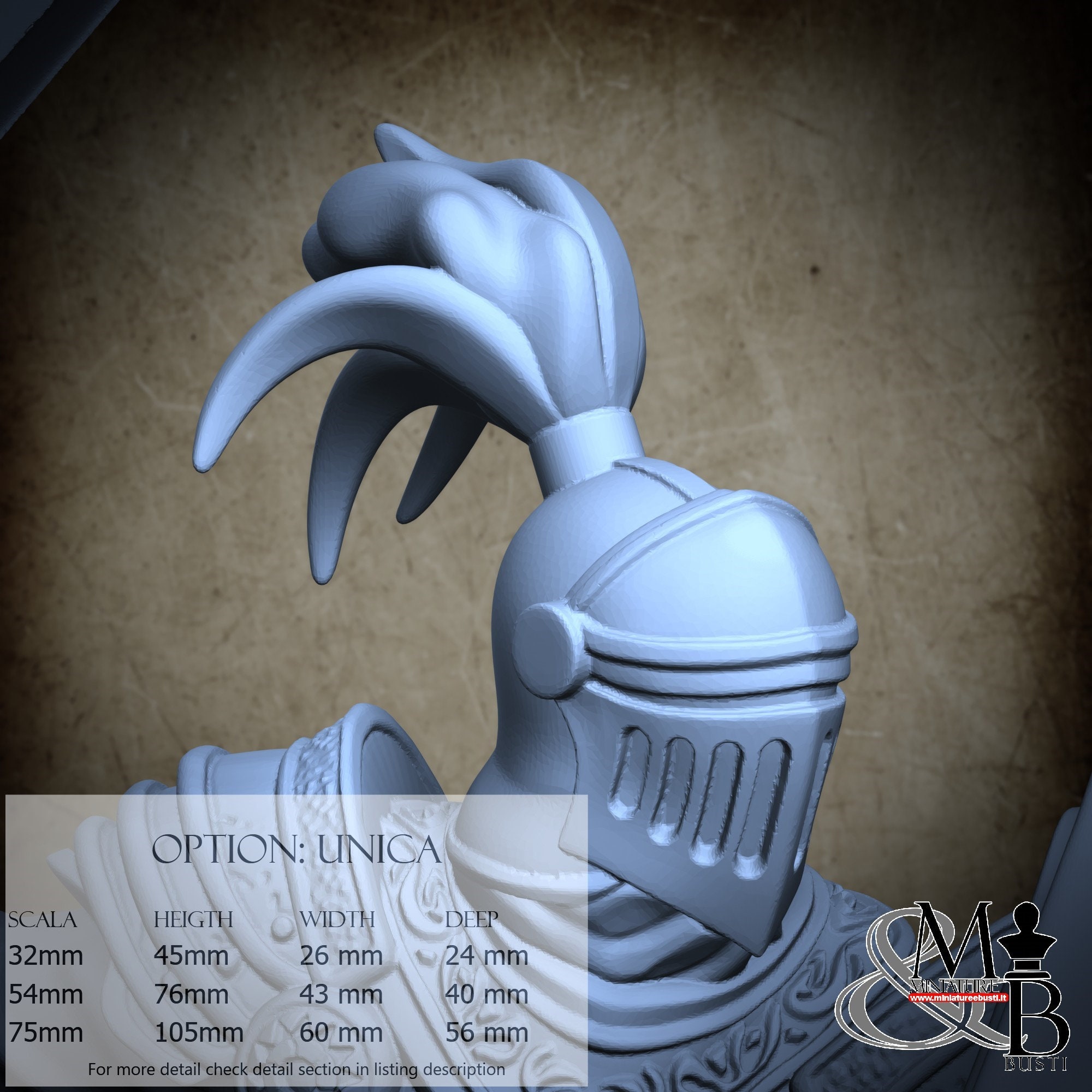 - Knight (3 pieces) in Resin: Height: 70 mm, Width: 40 mm, Depth: 30 mm