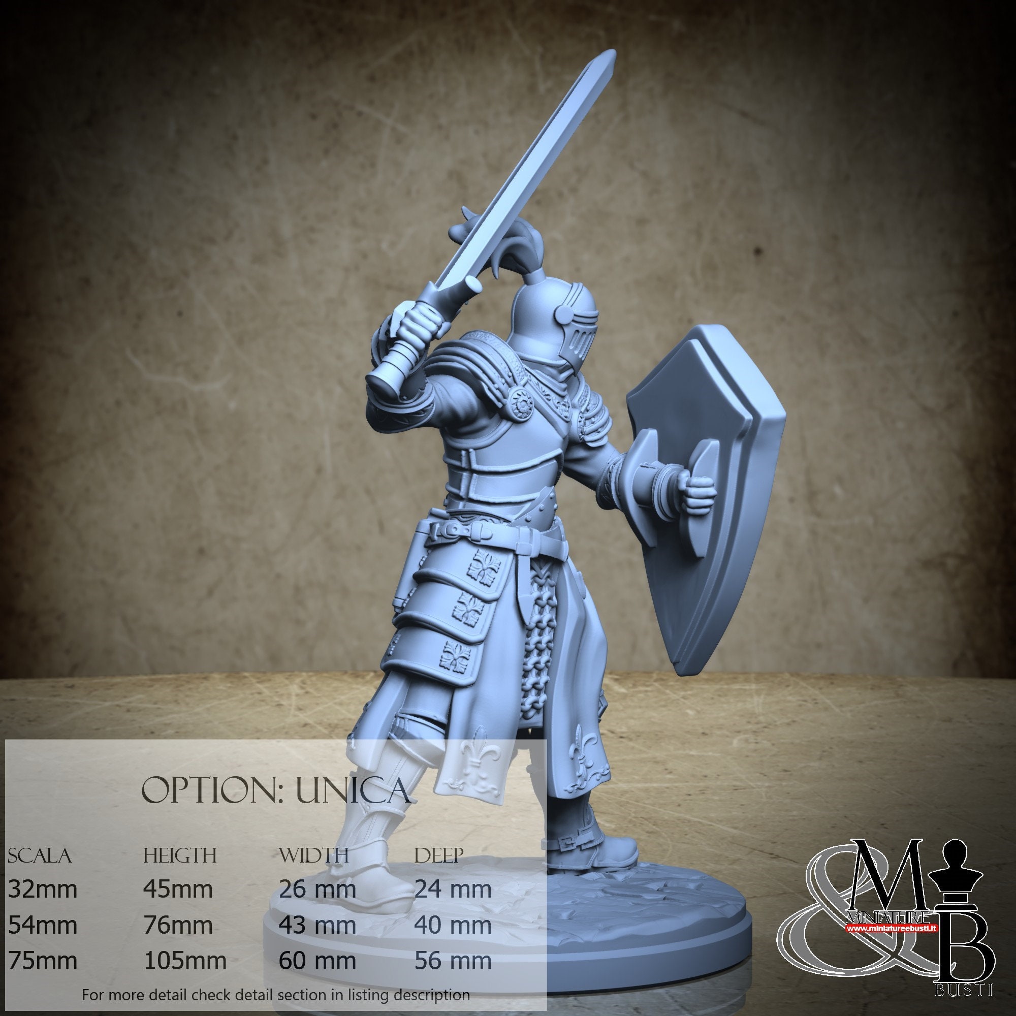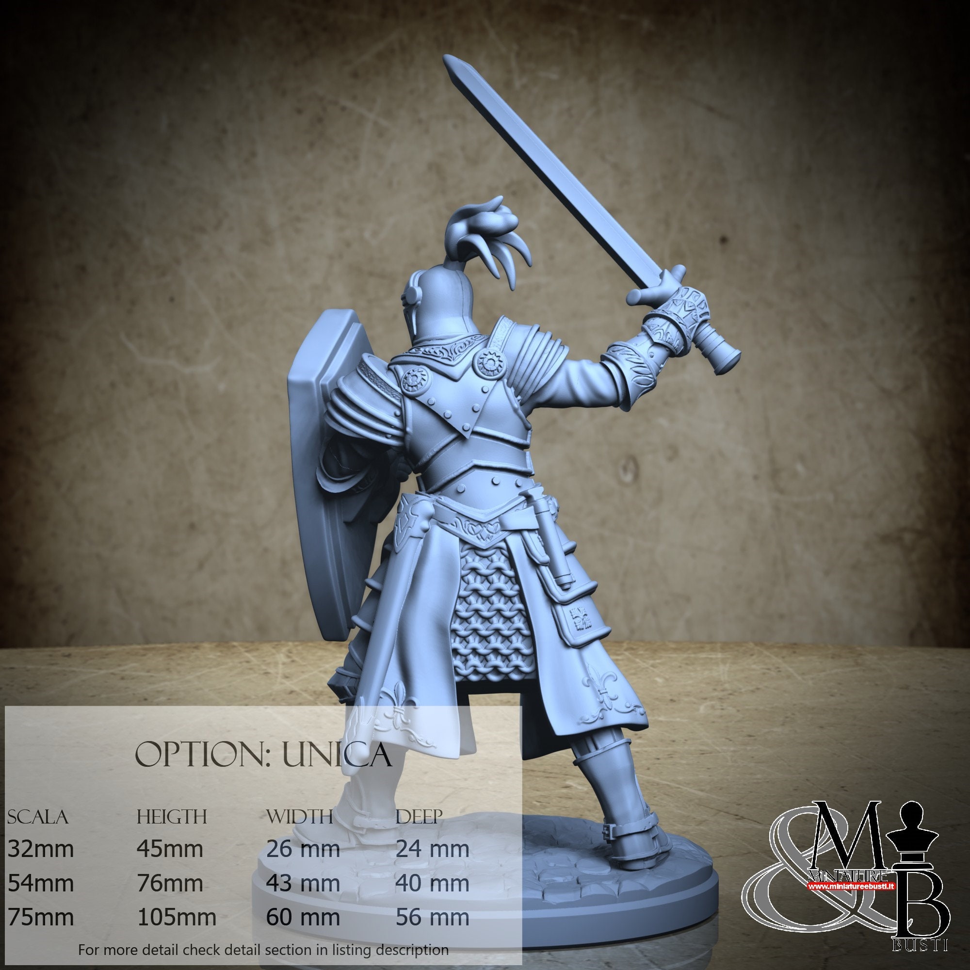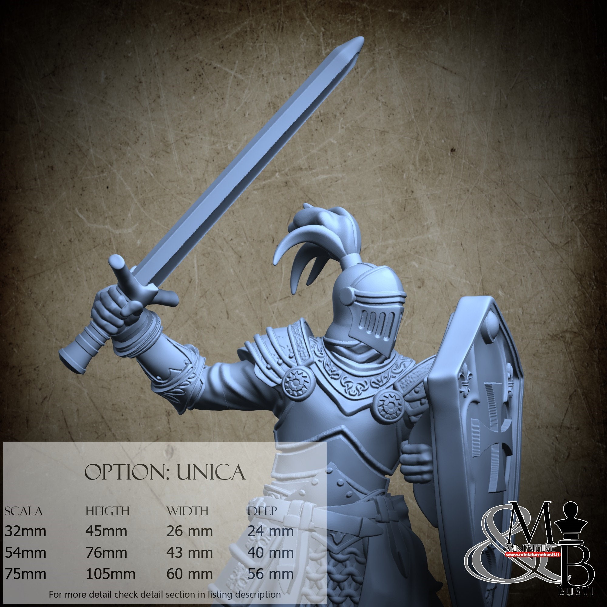 - Knight (3 pieces) in Resin: Height: 70 mm, Width: 40 mm, Depth: 30 mm