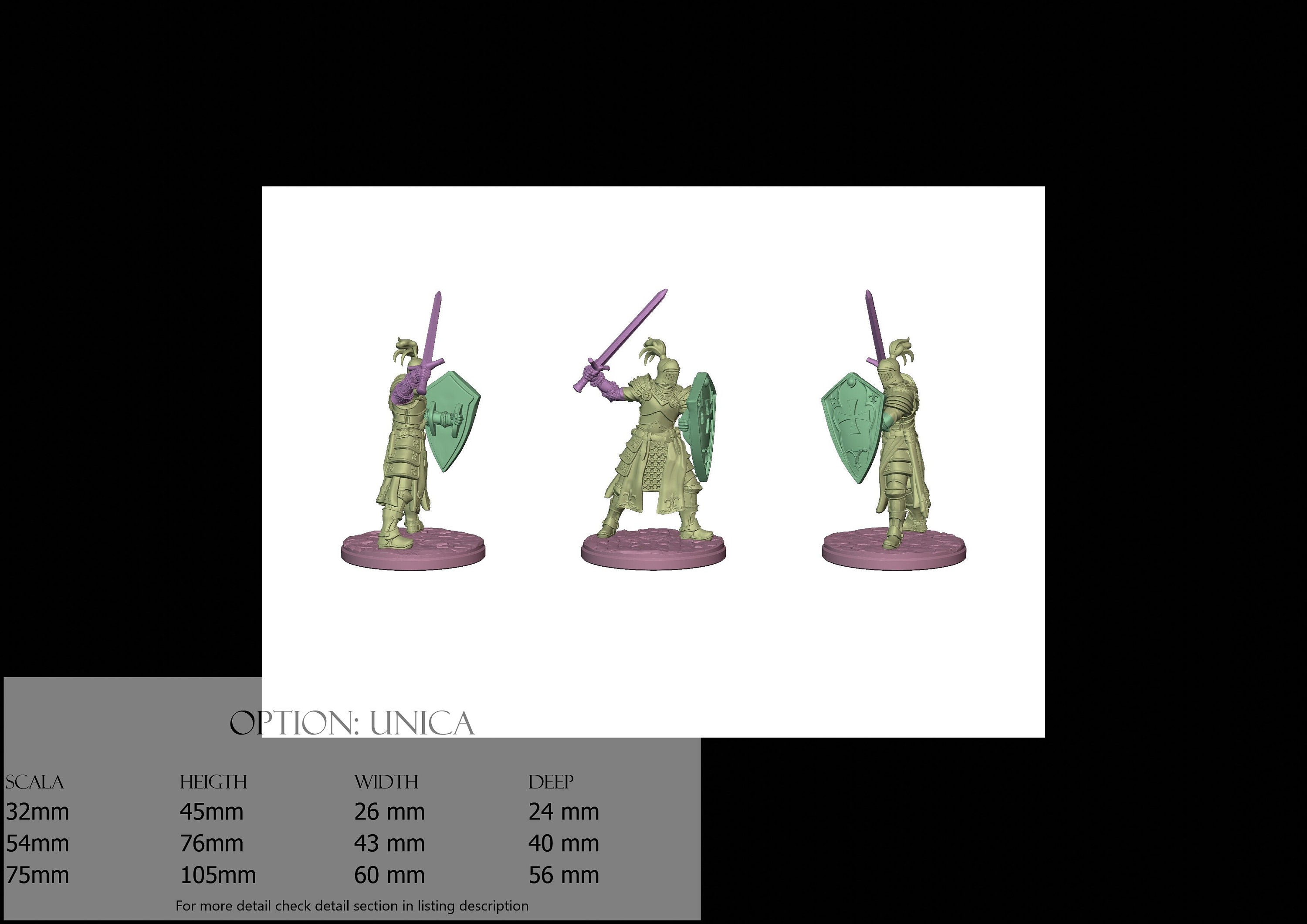 - Knight (3 pieces) in Resin: Height: 98 mm, Width: 56 mm, Depth: 42 mm