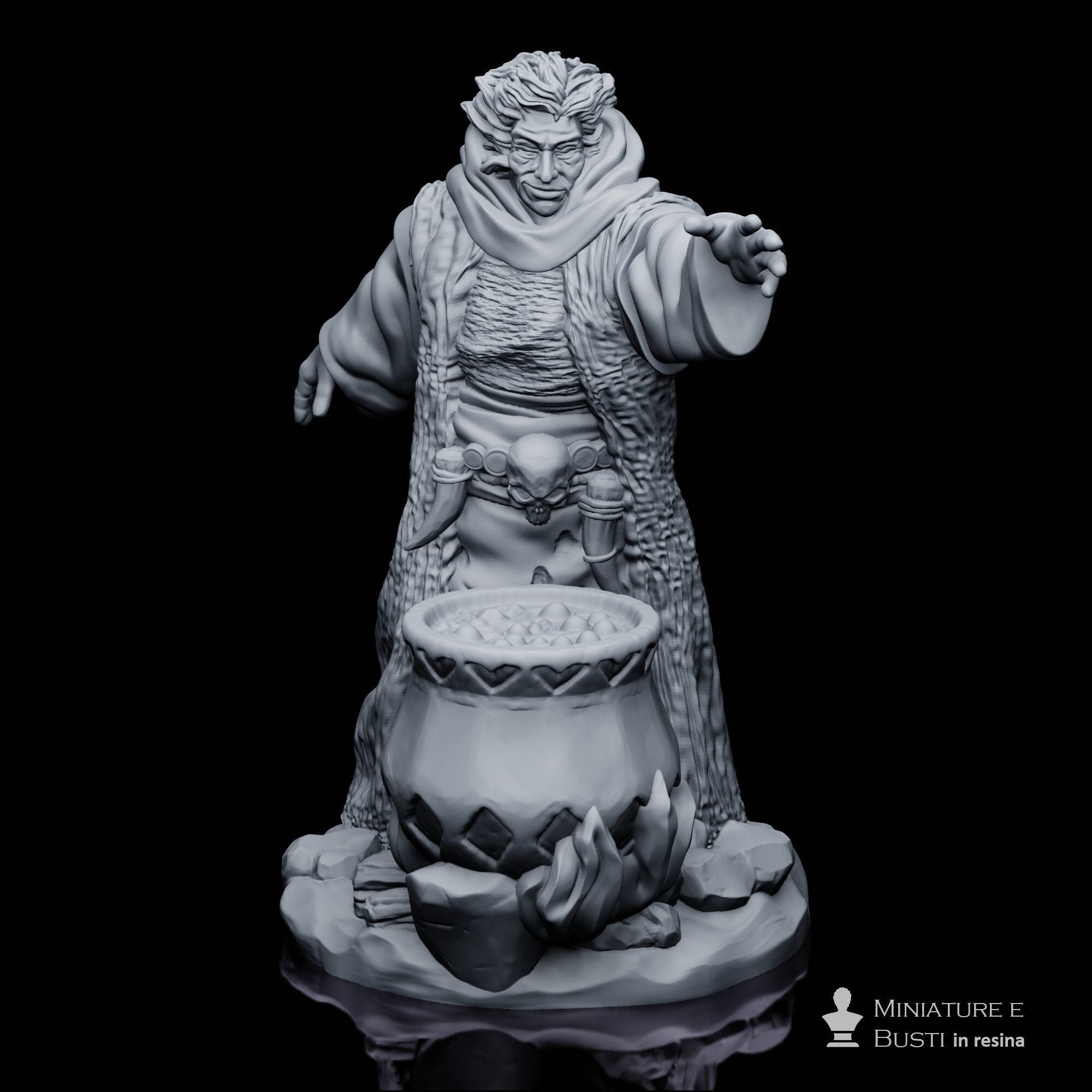 - Witch (1 piece) in Resin: Height: 54 mm, Width: 32 mm, Depth: 37 mm