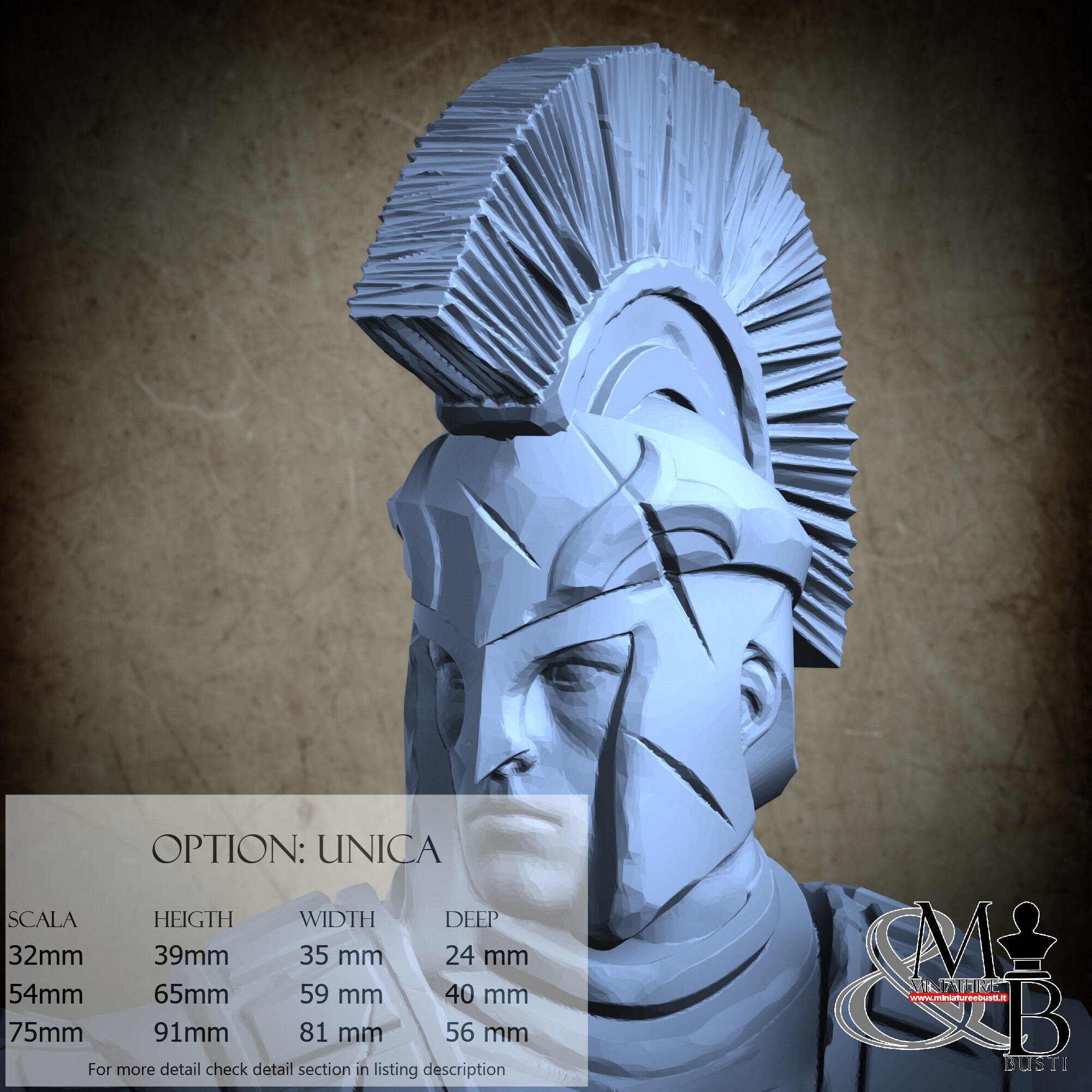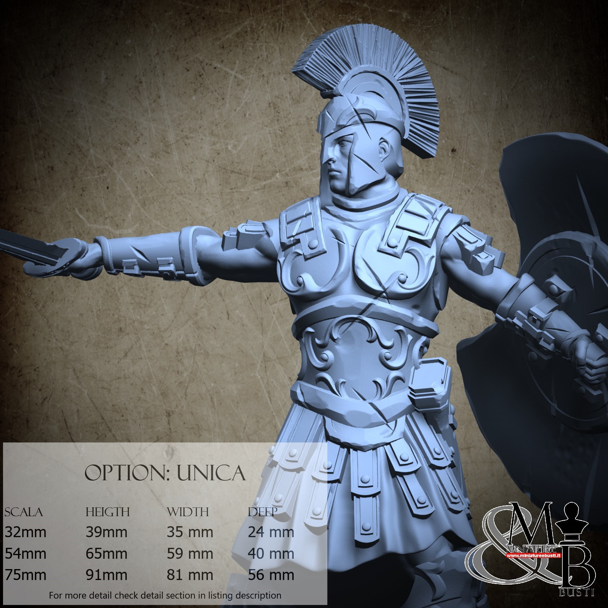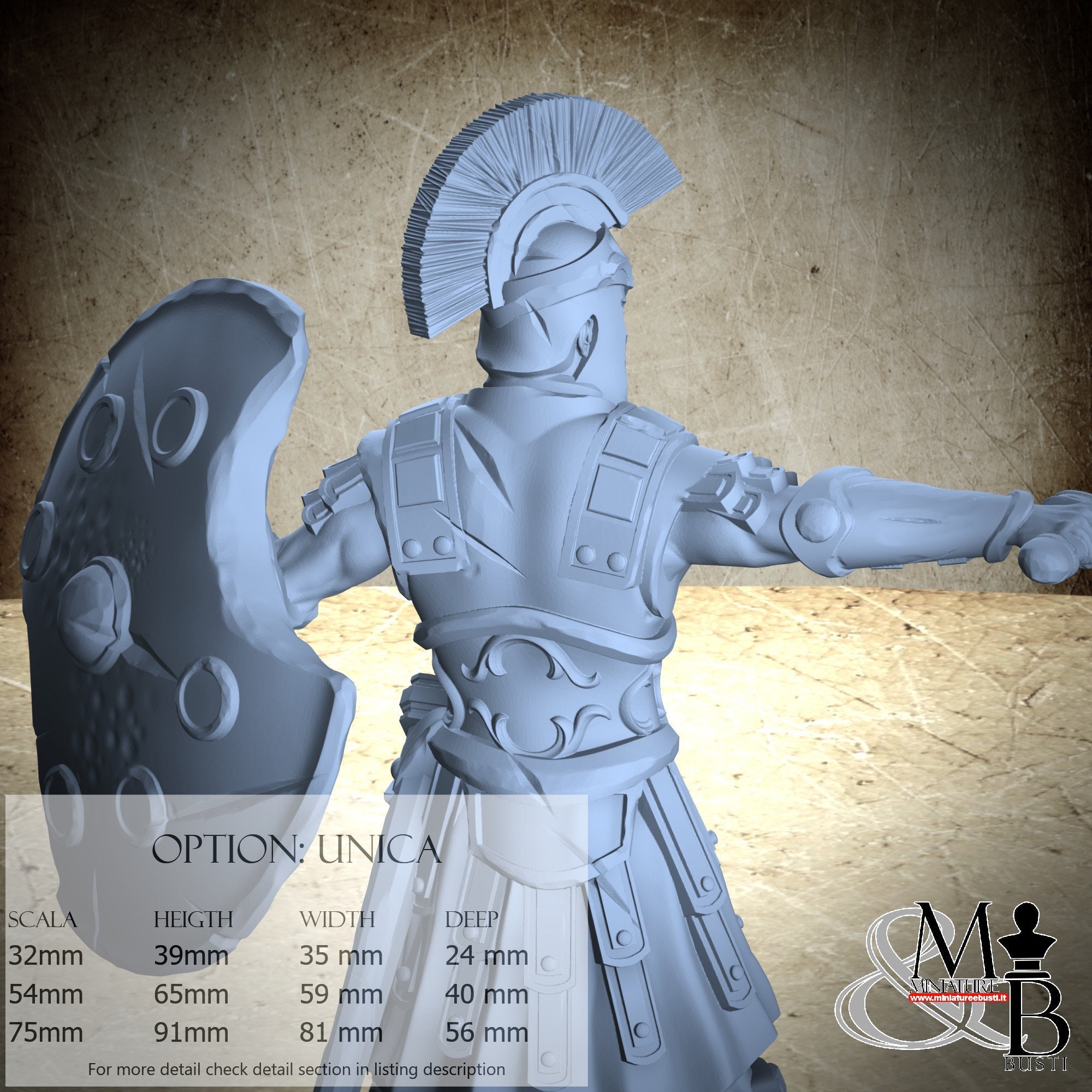 - Soldier (3 pieces) in Resin: Height: 81 mm, Width: 81 mm, Depth: 44 mm