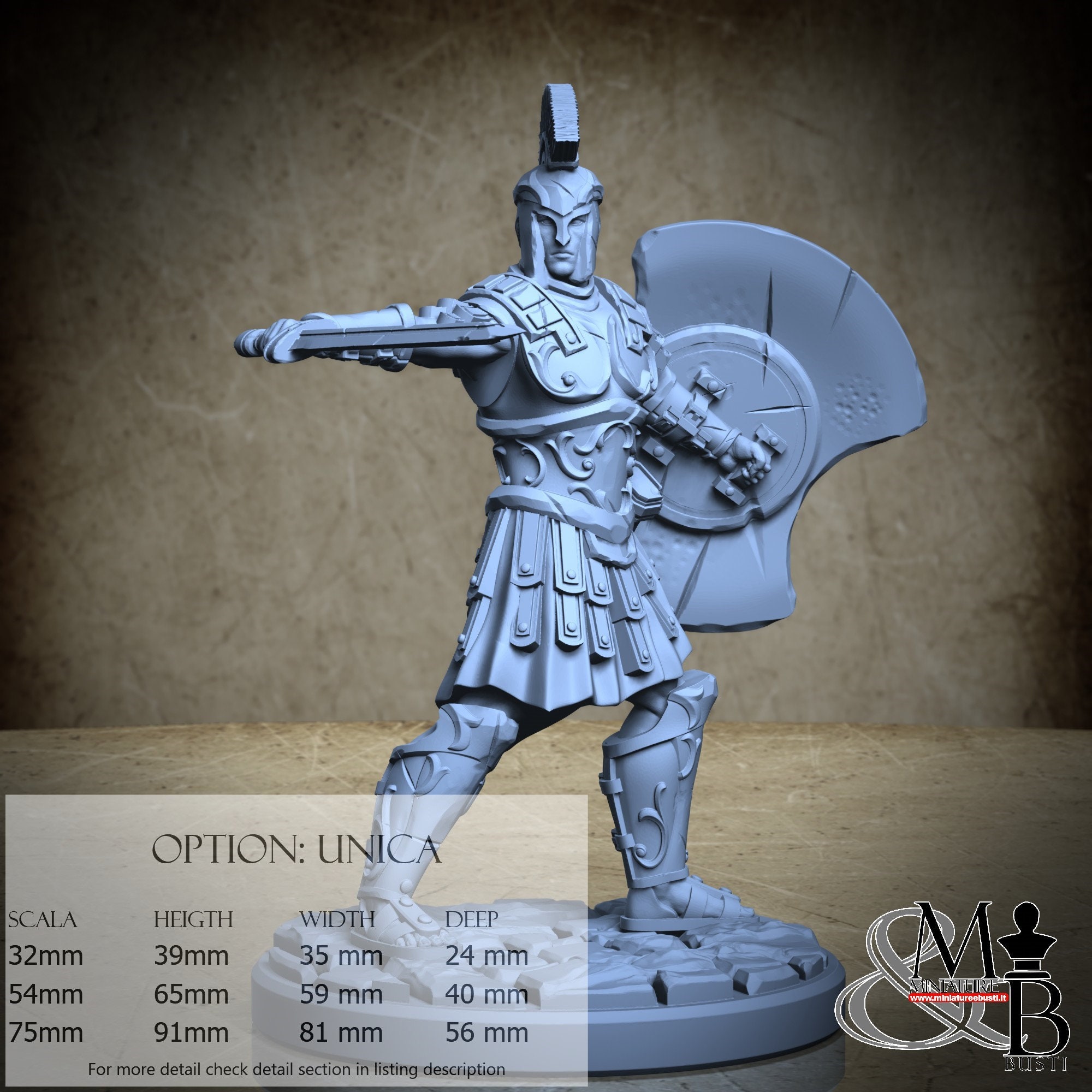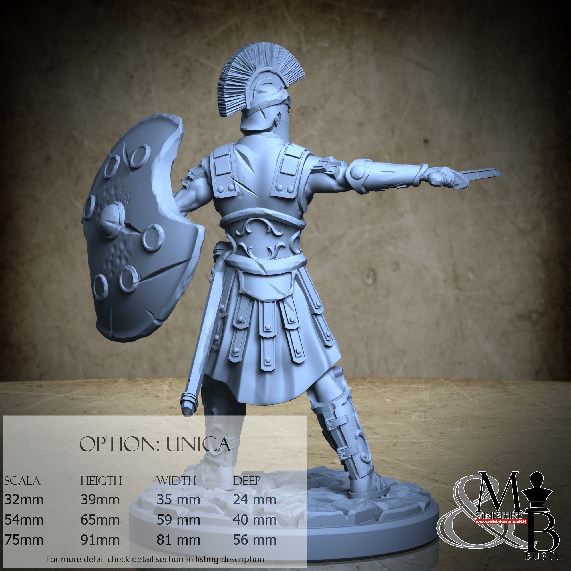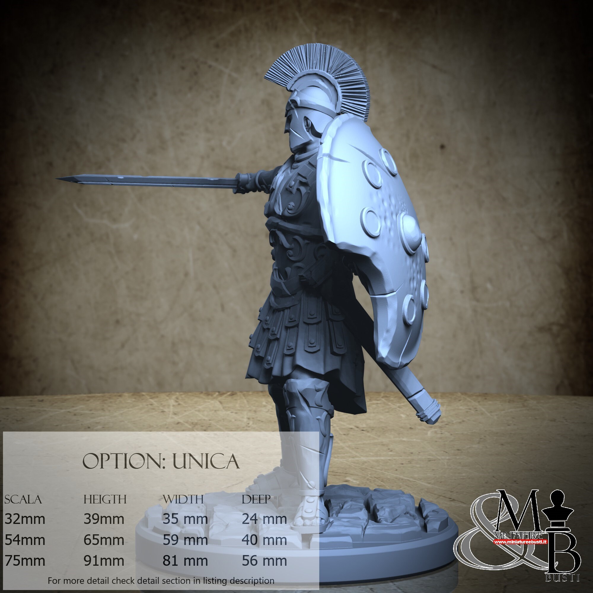 - Soldier (3 pieces) in Resin: Height: 81 mm, Width: 81 mm, Depth: 44 mm