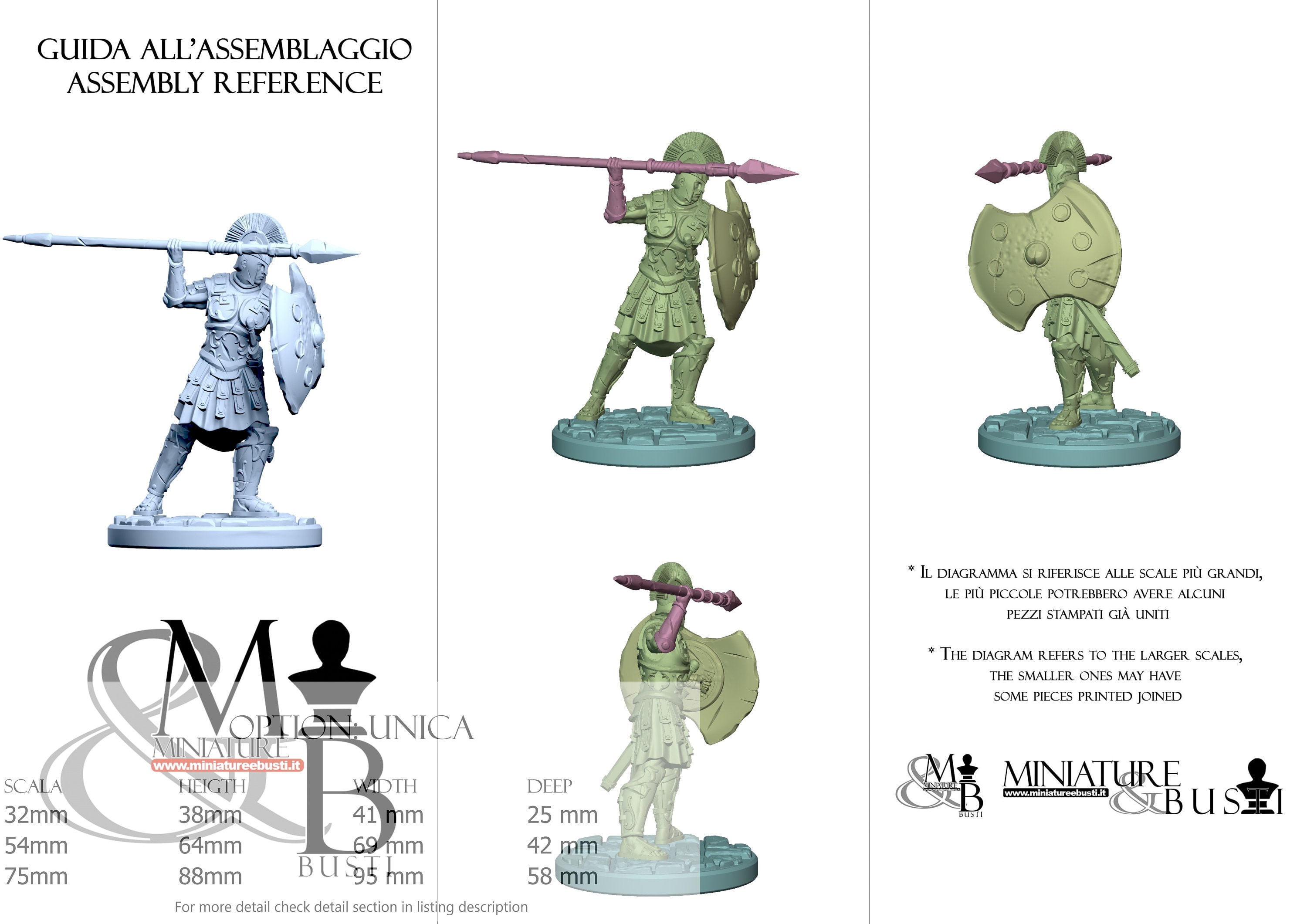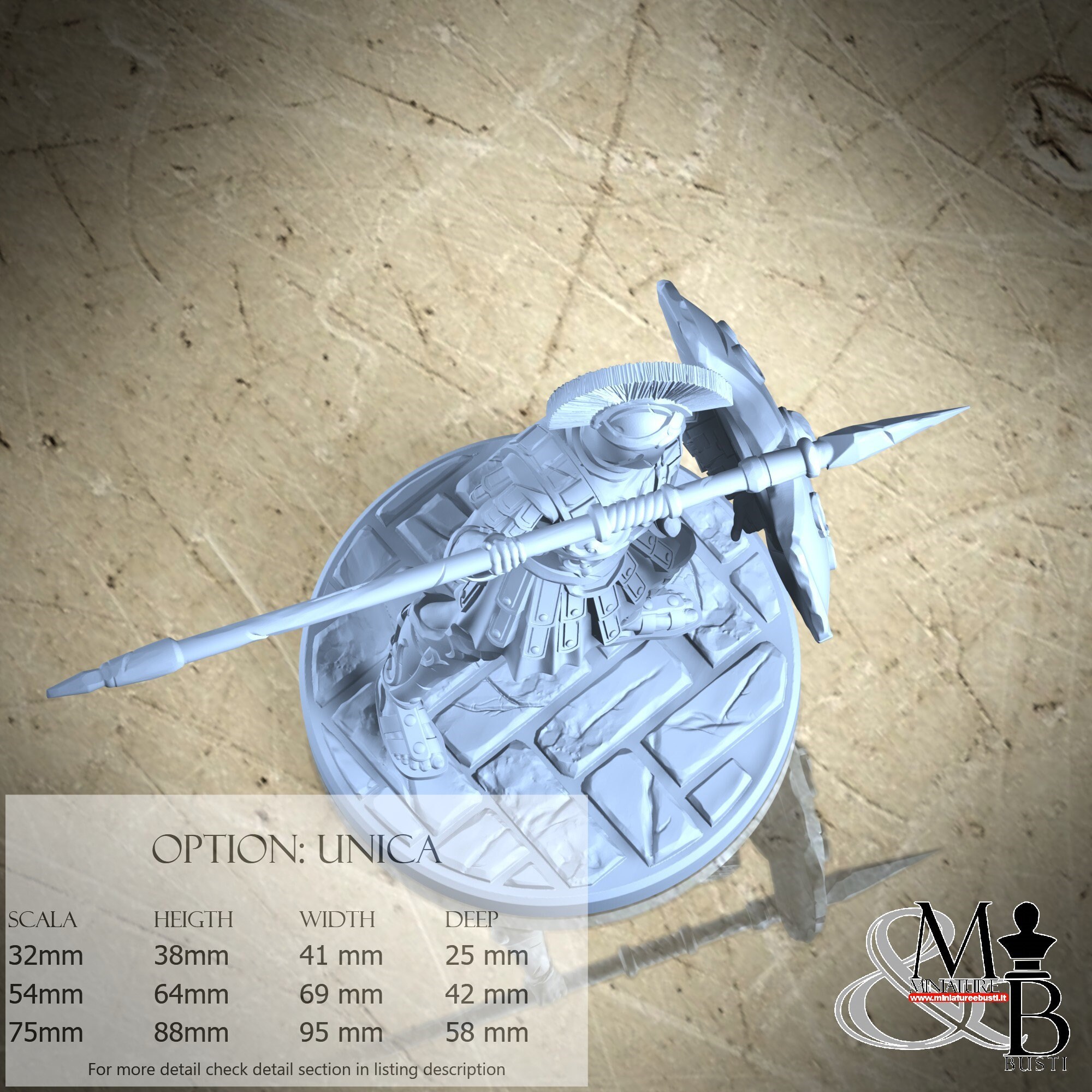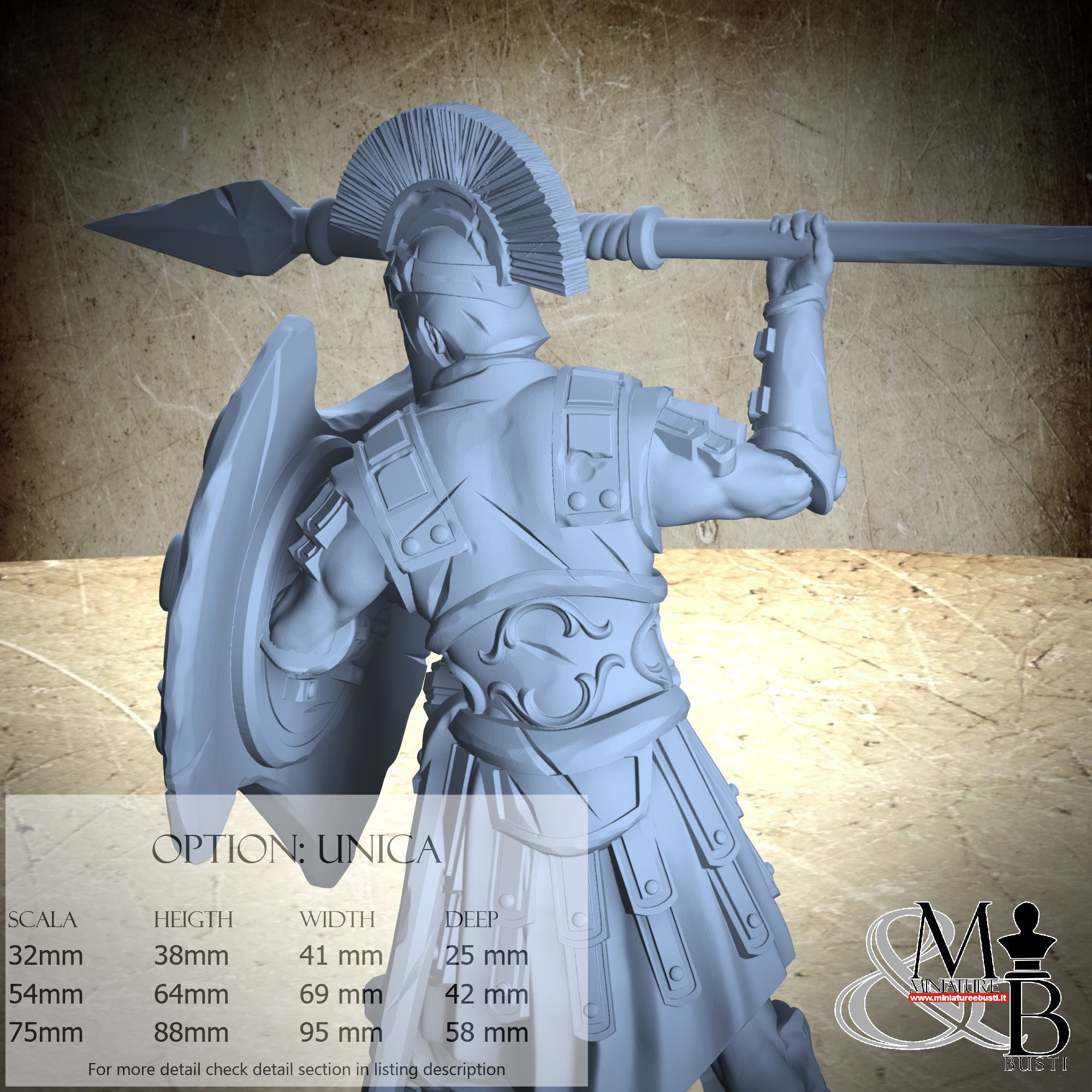 - Soldier (3 pieces) in Resin: Height: 59 mm, Width: 69 mm, Depth: 33 mm
