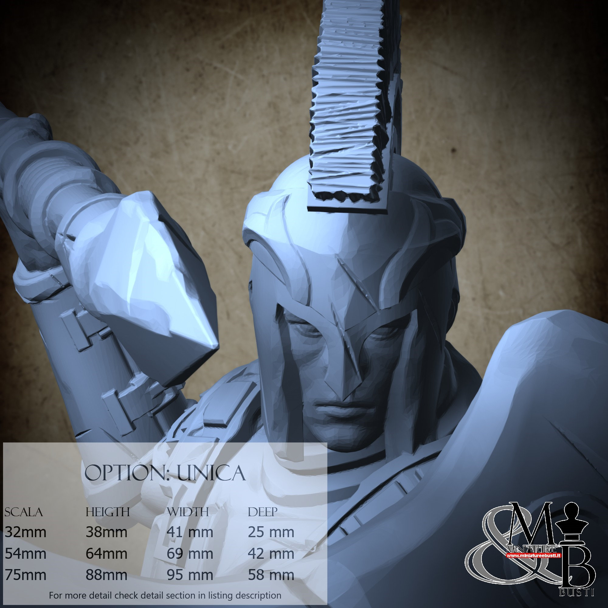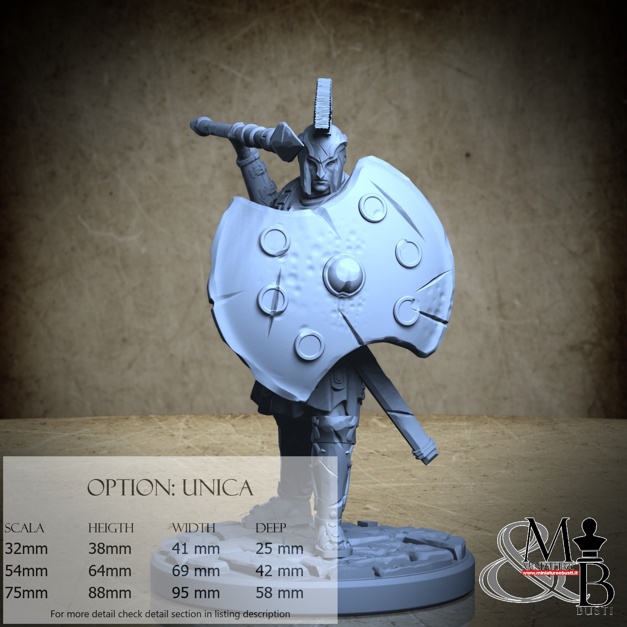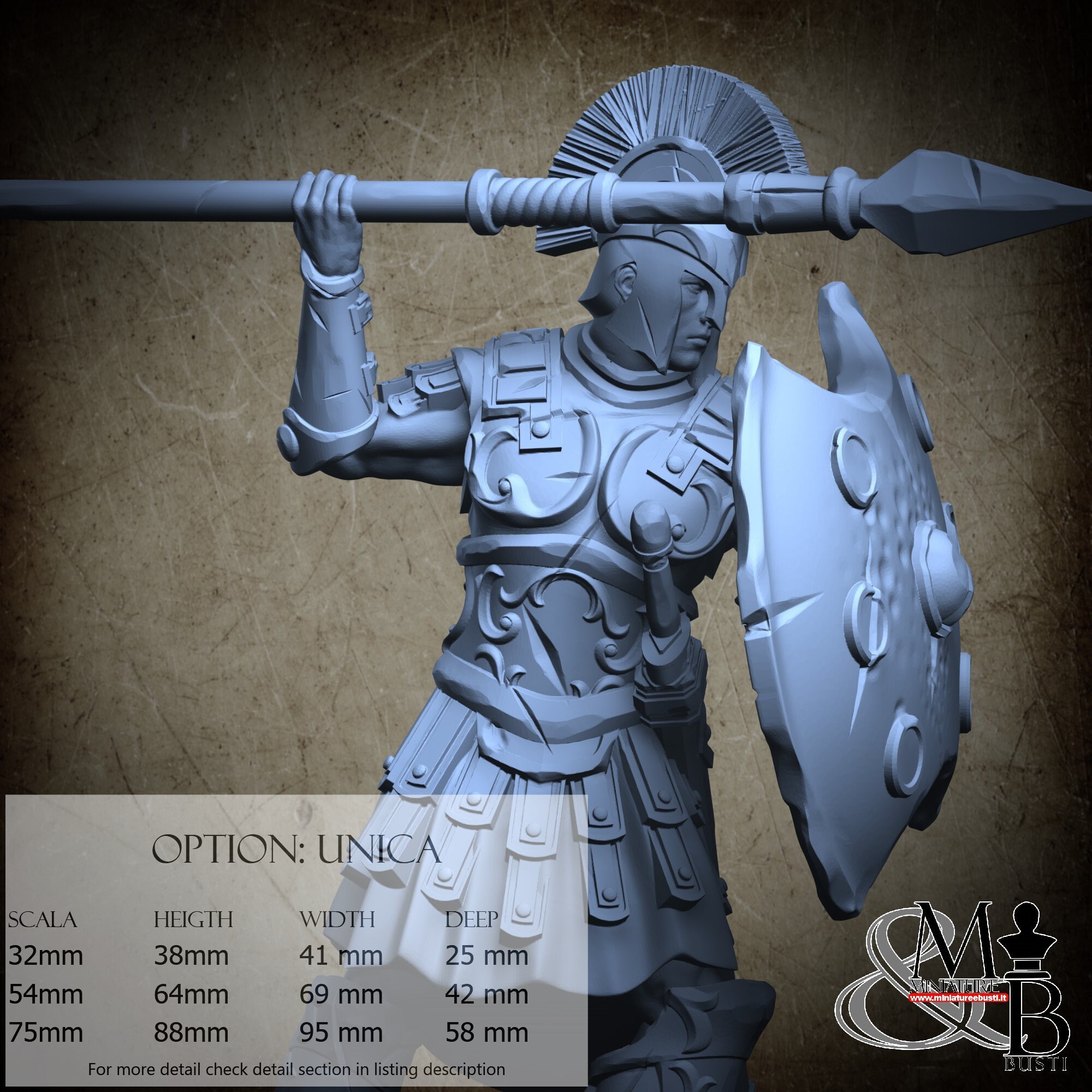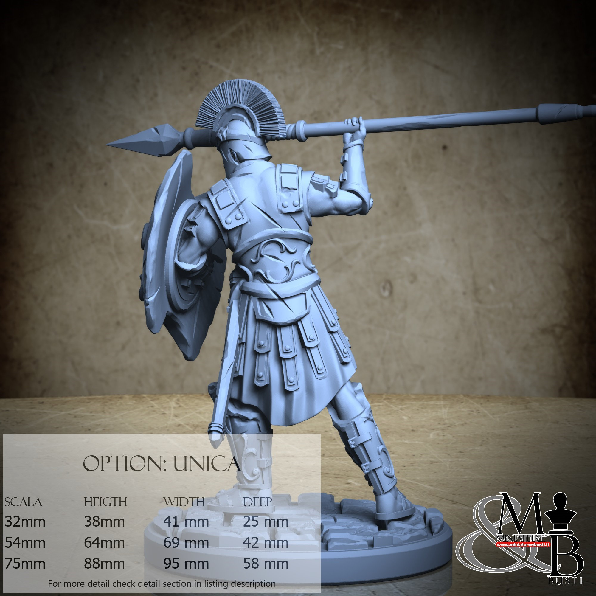 - Soldier (3 pieces) in Resin: Height: 59 mm, Width: 69 mm, Depth: 33 mm