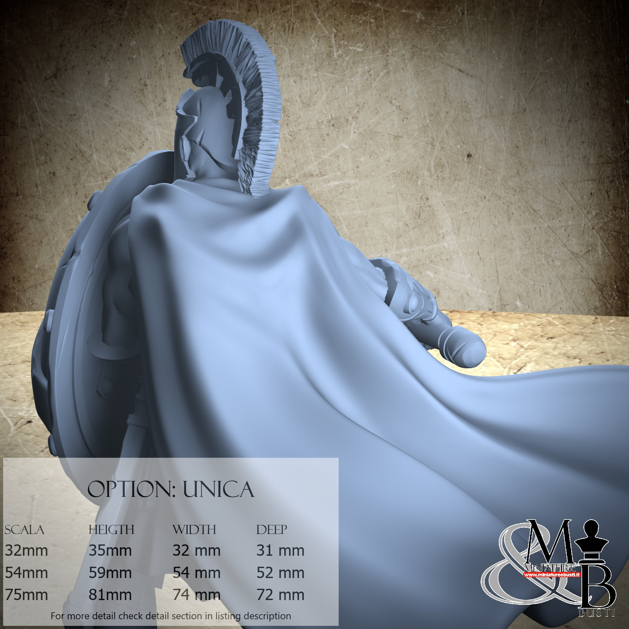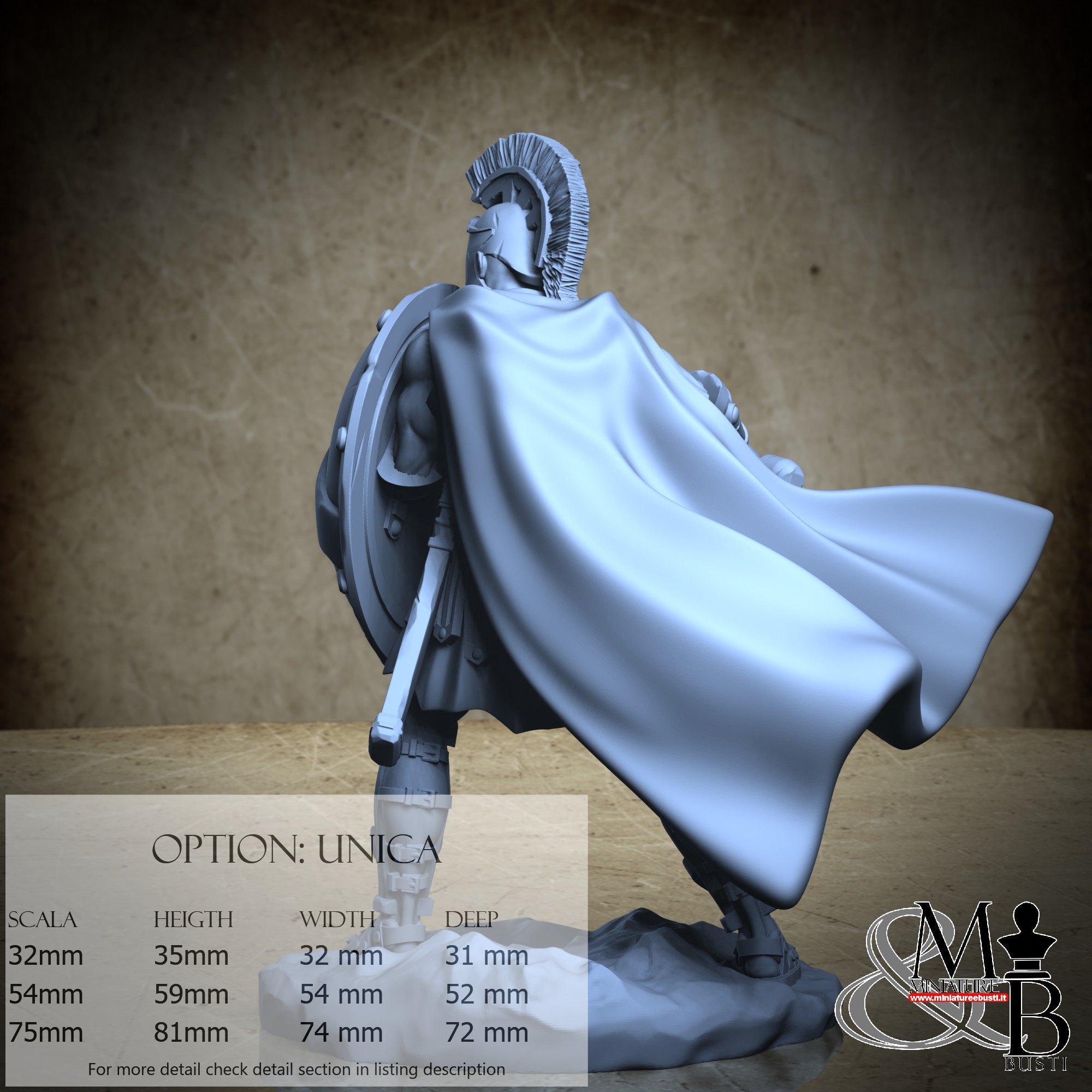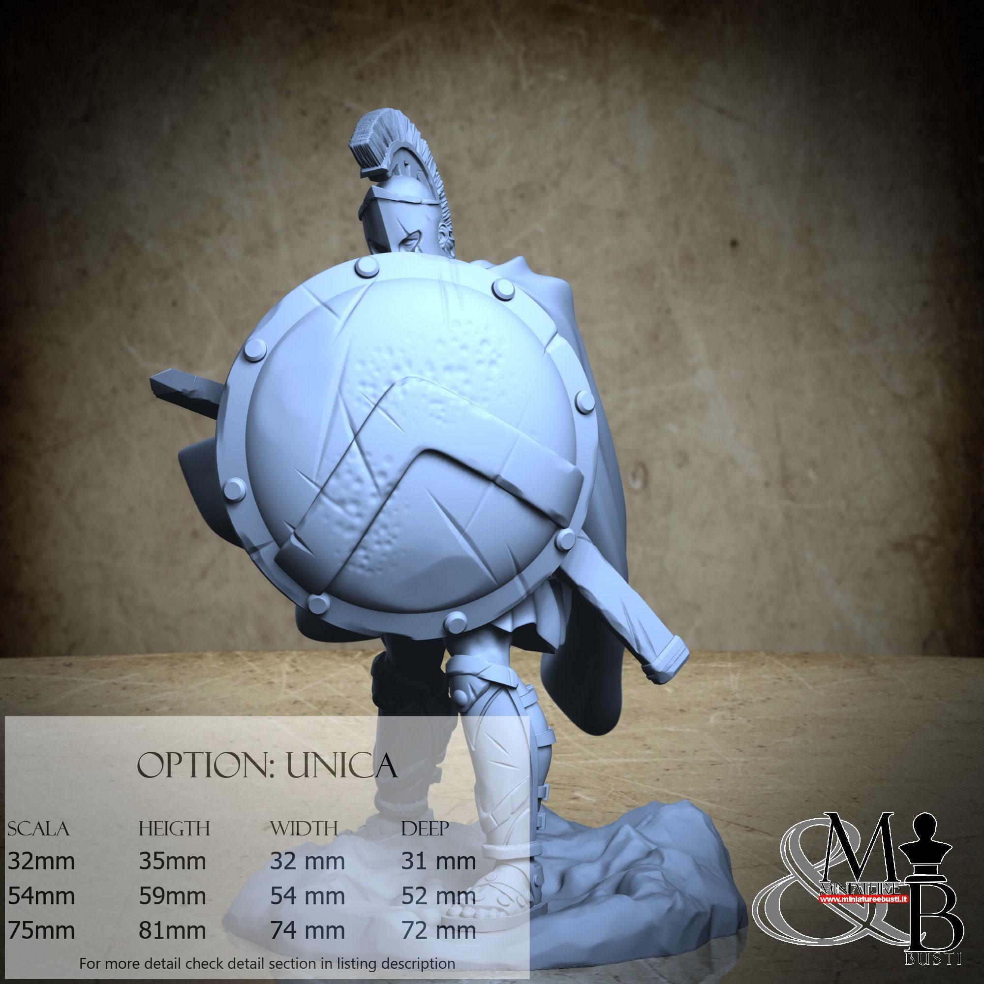 - Spartan (3 pieces) in Resin: Height: 34 mm, Width: 30 mm, Depth: 31 mm