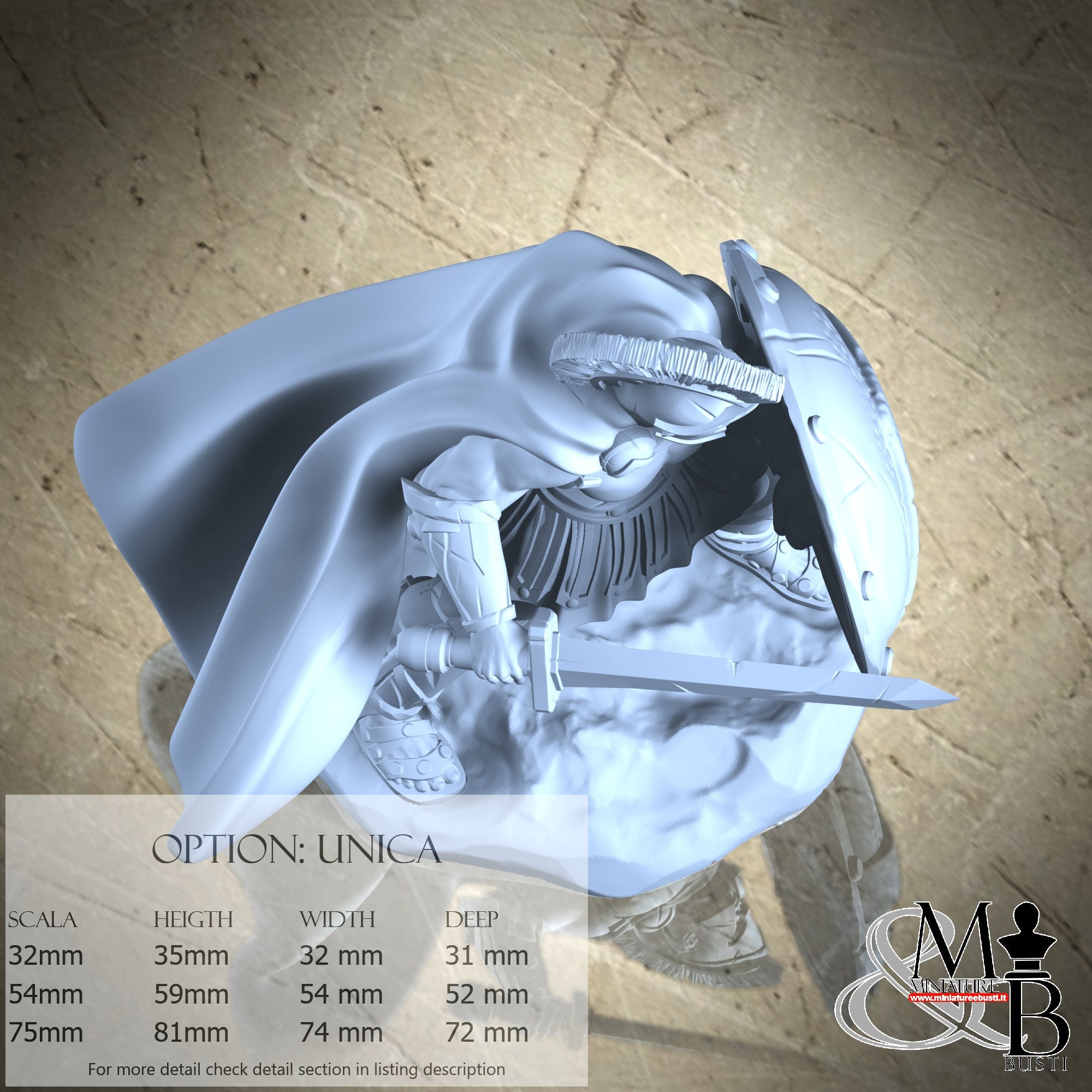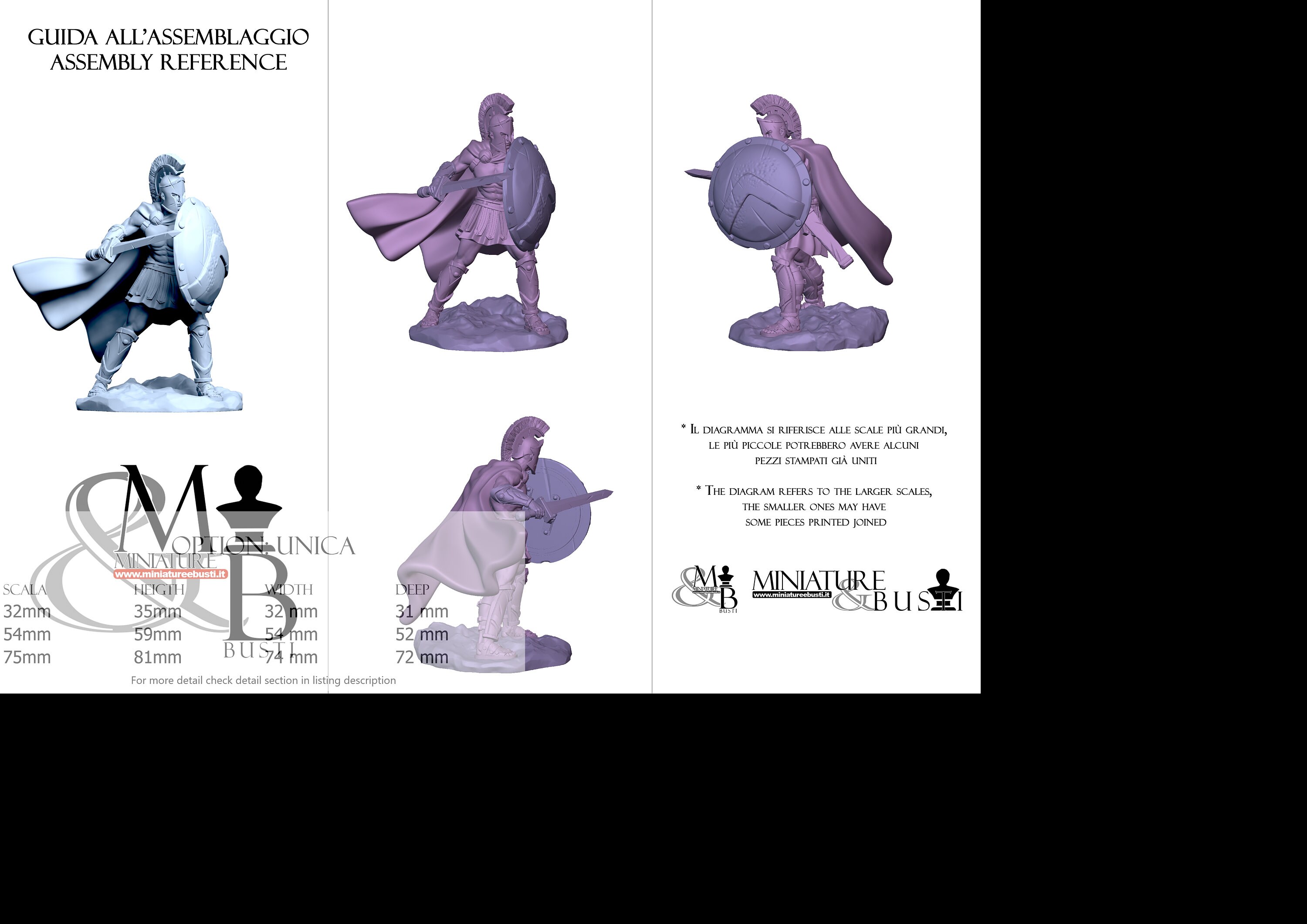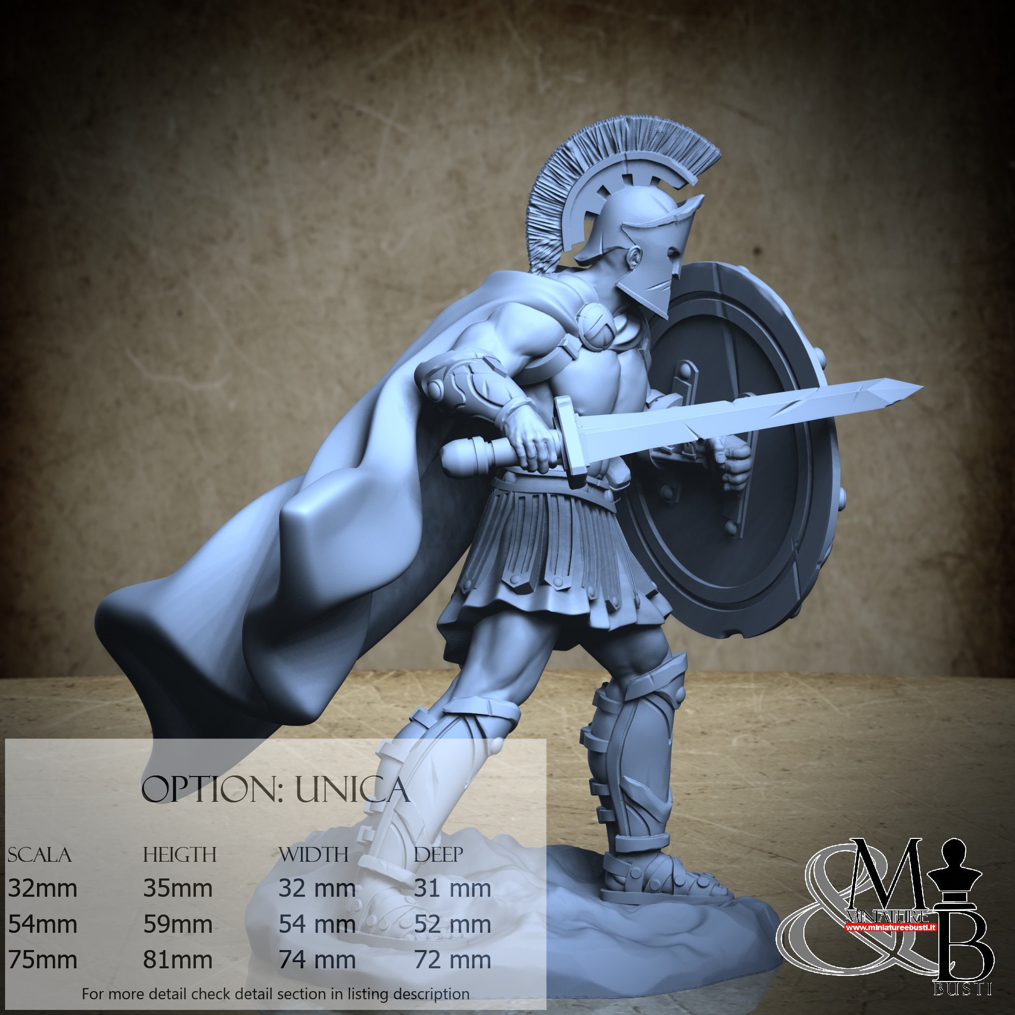- Spartan (3 pieces) in Resin: Height: 34 mm, Width: 30 mm, Depth: 31 mm
