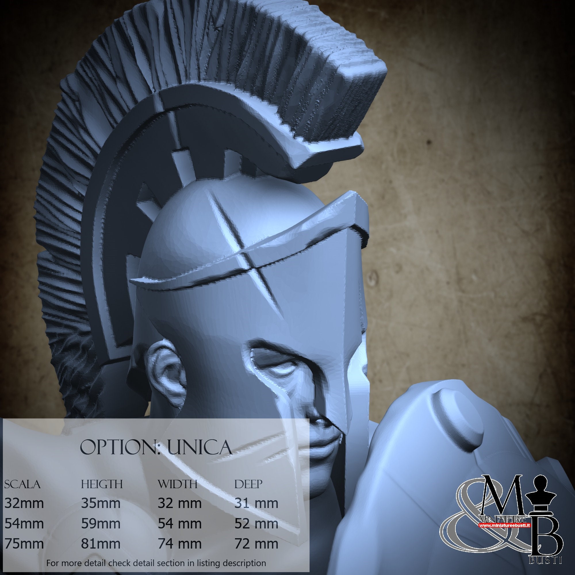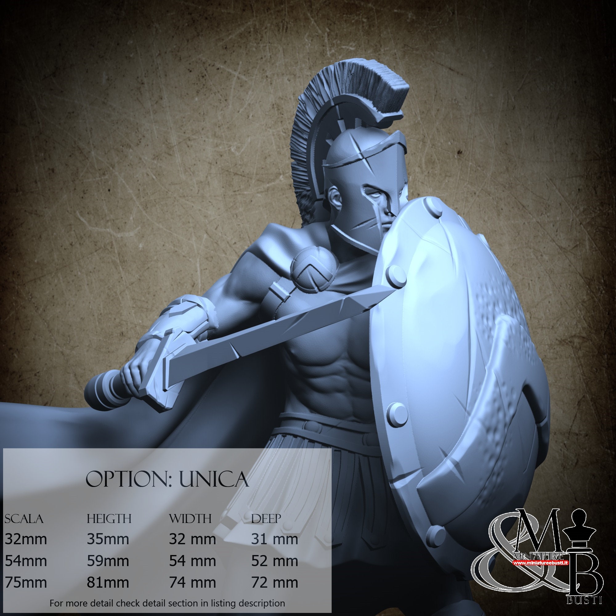 - Spartan (3 pieces) in Resin: Height: 57 mm, Width: 50 mm, Depth: 52 mm