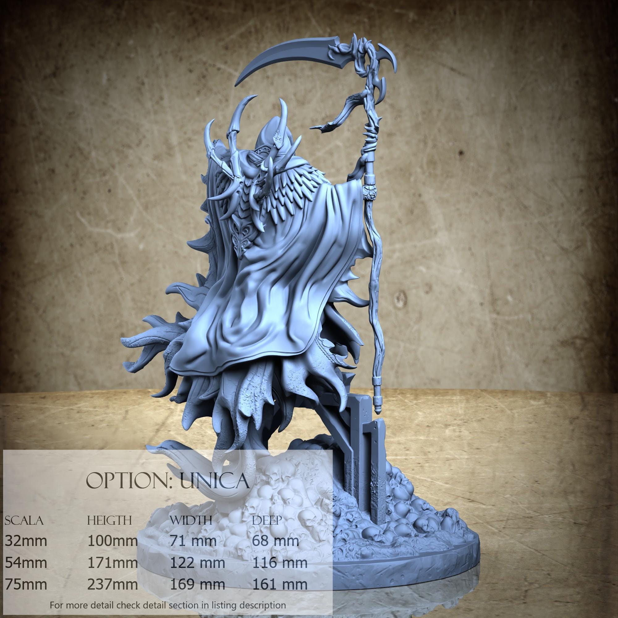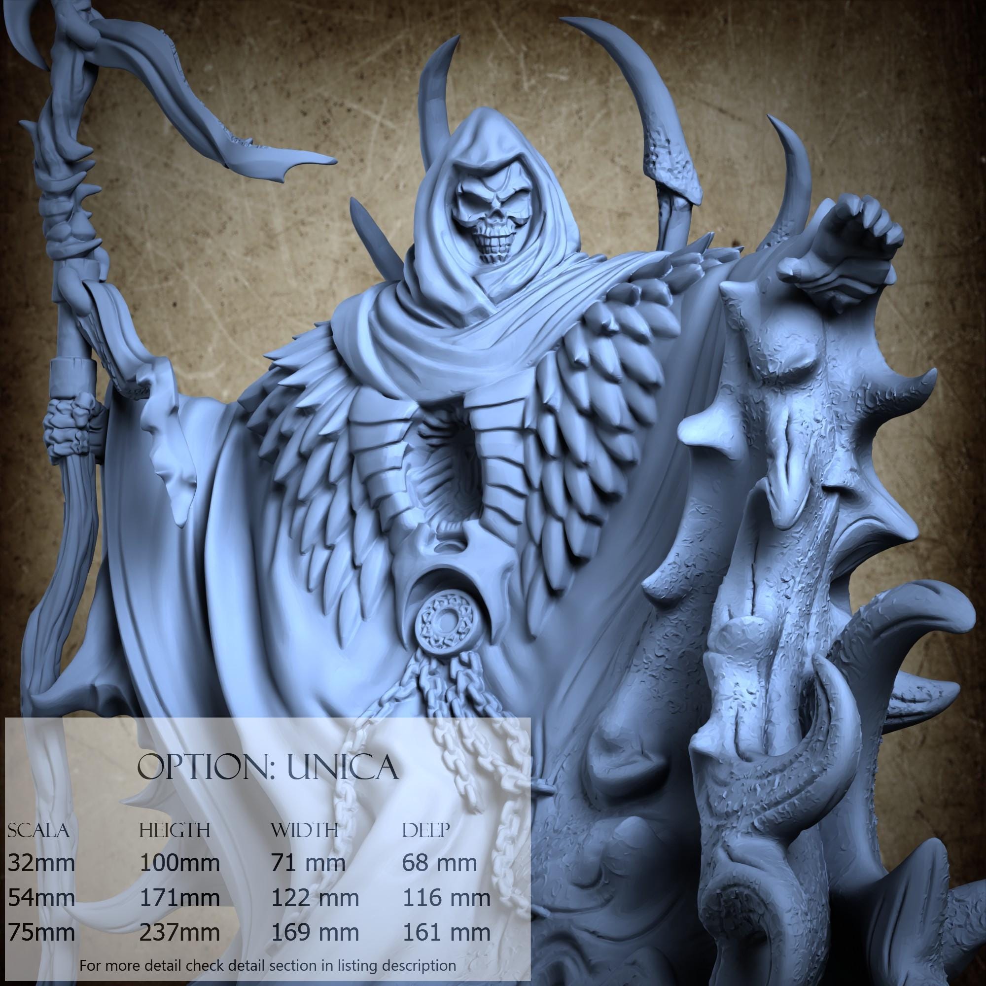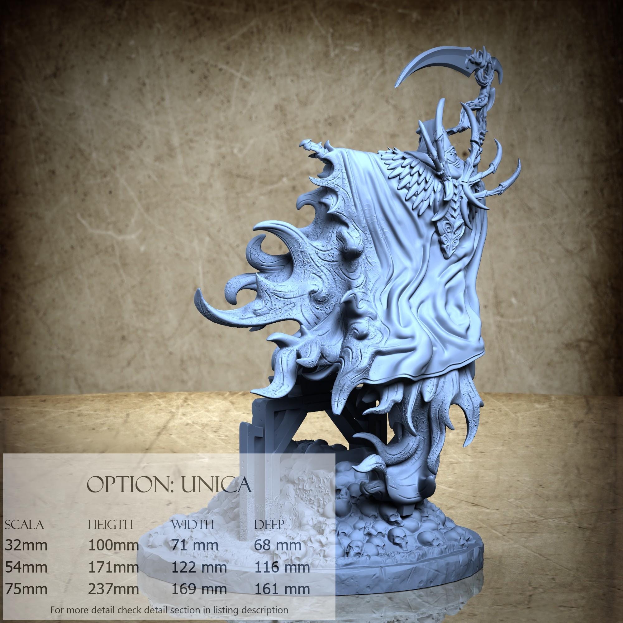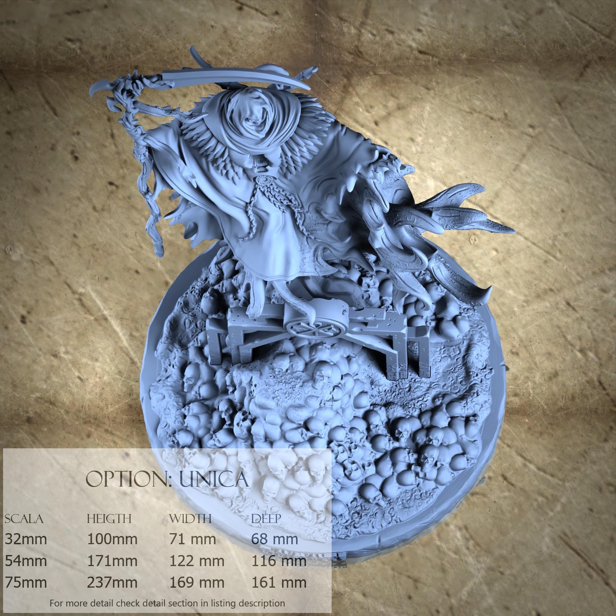 - Death (2 pieces) in Resin: Height: 89 mm, Width: 71 mm, Depth: 37 mm