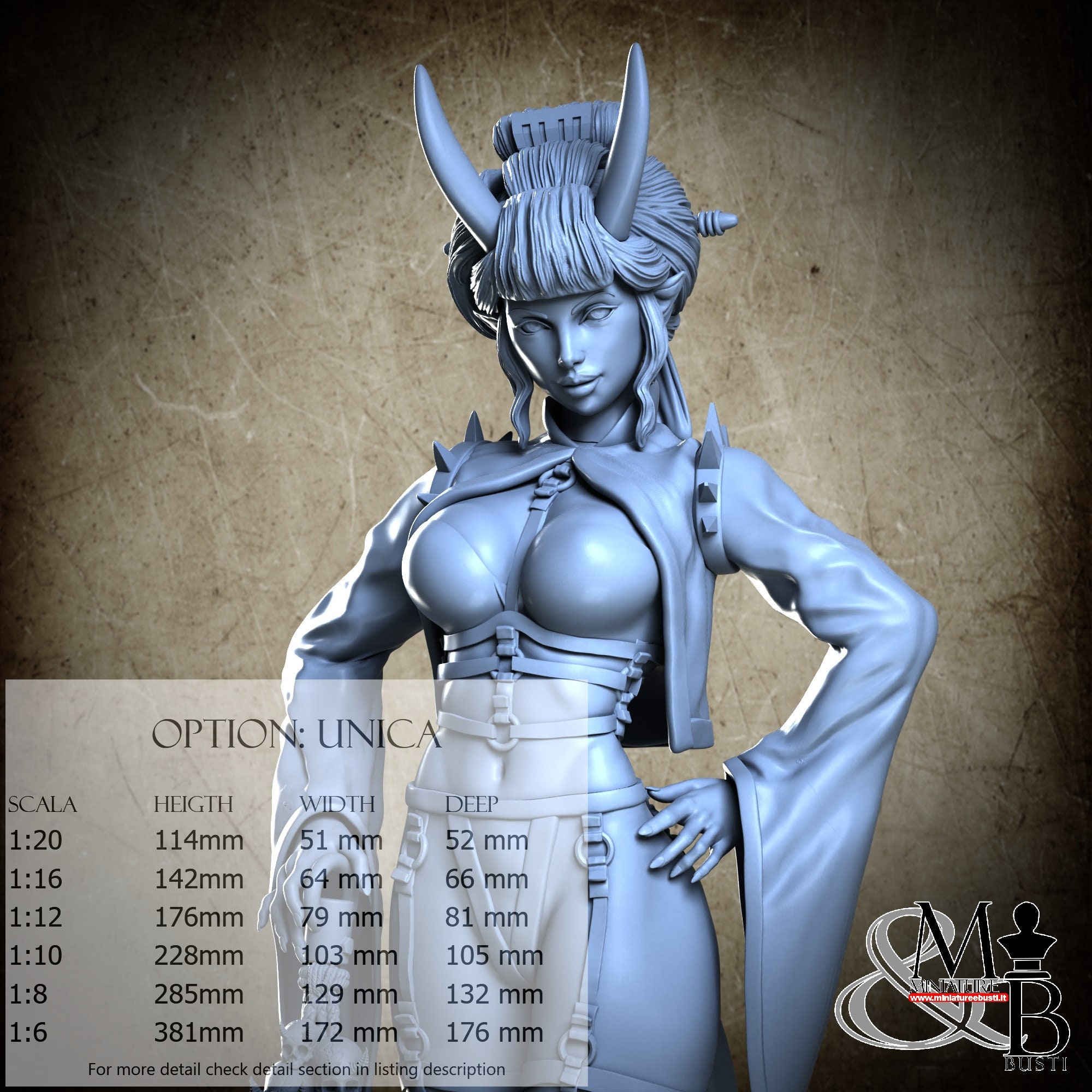 - Oni Girl (17 pezzi) in Resina : Altezza: 106 mm, Larghezza: 42 mm, Profondità: 29 mm