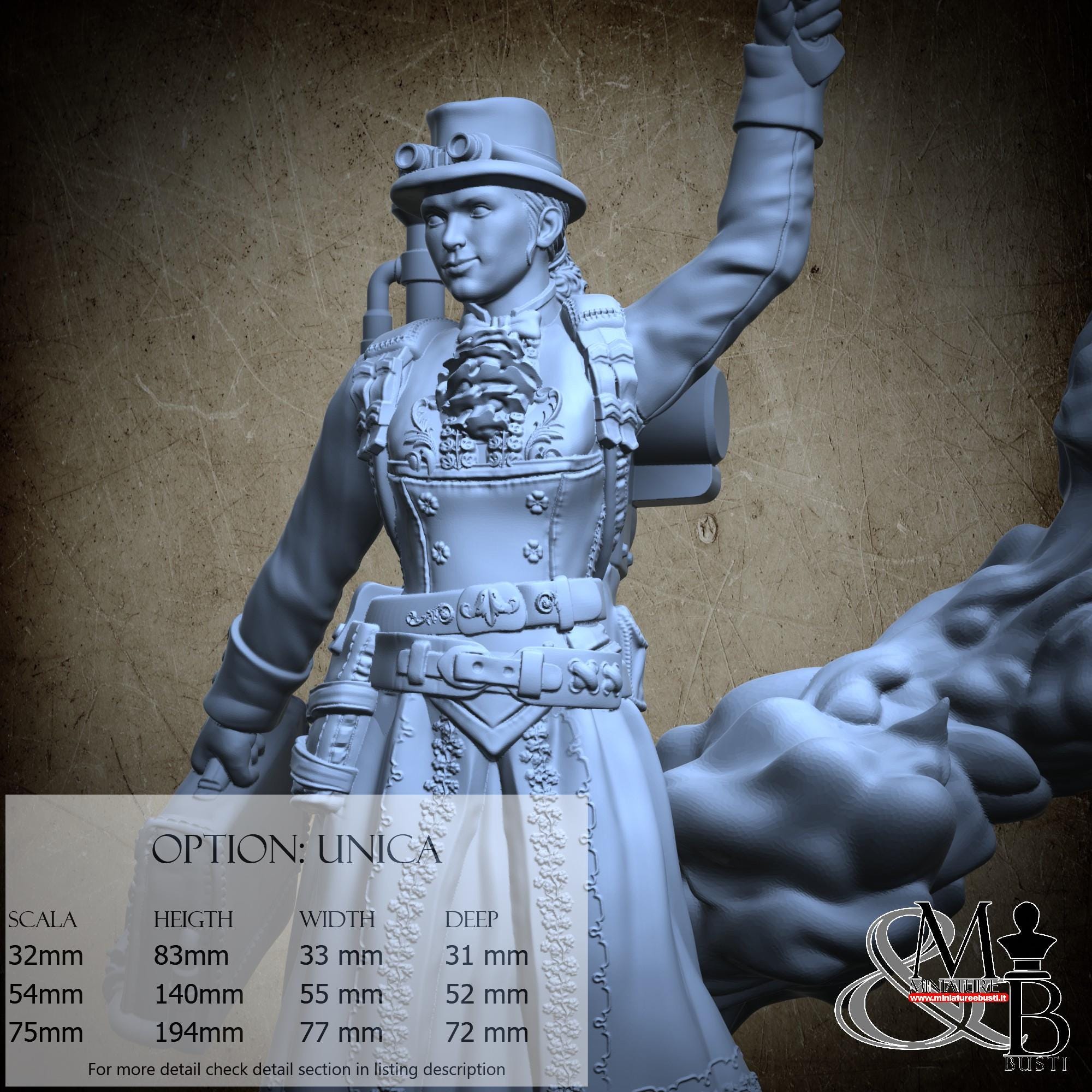 75 mm scale, cost €35.00 (Height: 194 mm, Width: 77 mm, Depth: 72 mm), composed of the following components: