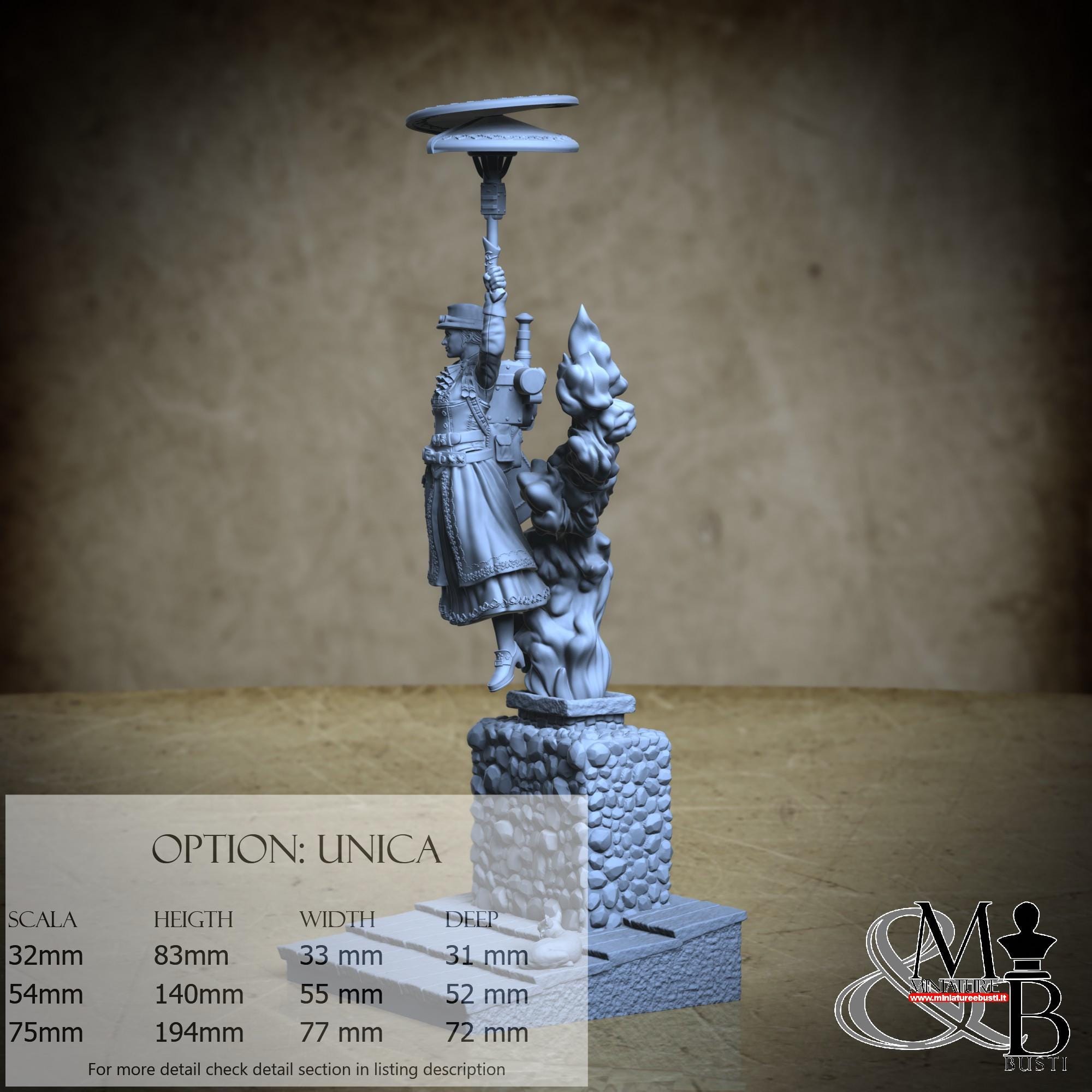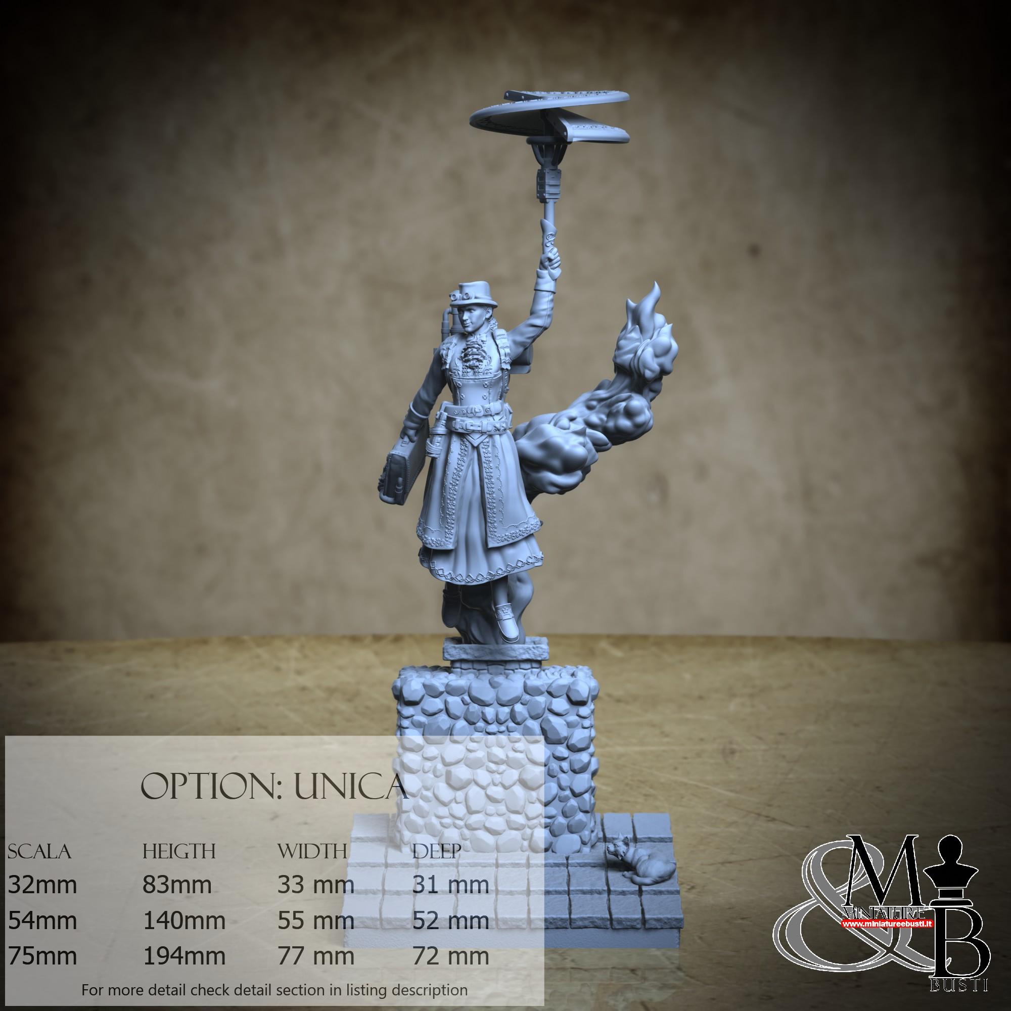 - Mary Poppins (2 pieces) in Resin: Height: 54 mm, Width: 25 mm, Depth: 23 mm