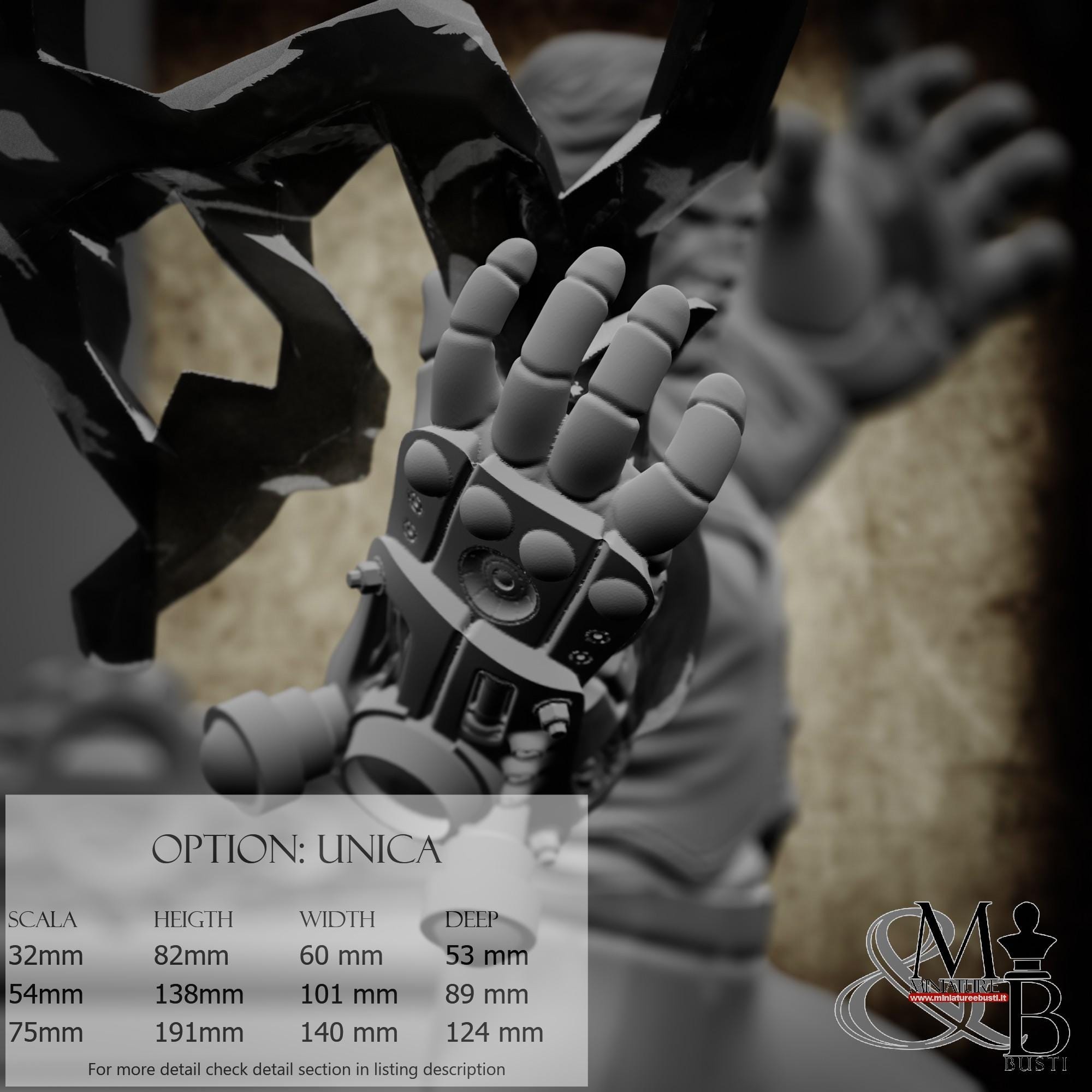 - Base (2 pieces) in Resin: Height: 60 mm, Width: 49 mm, Depth: 49 mm
