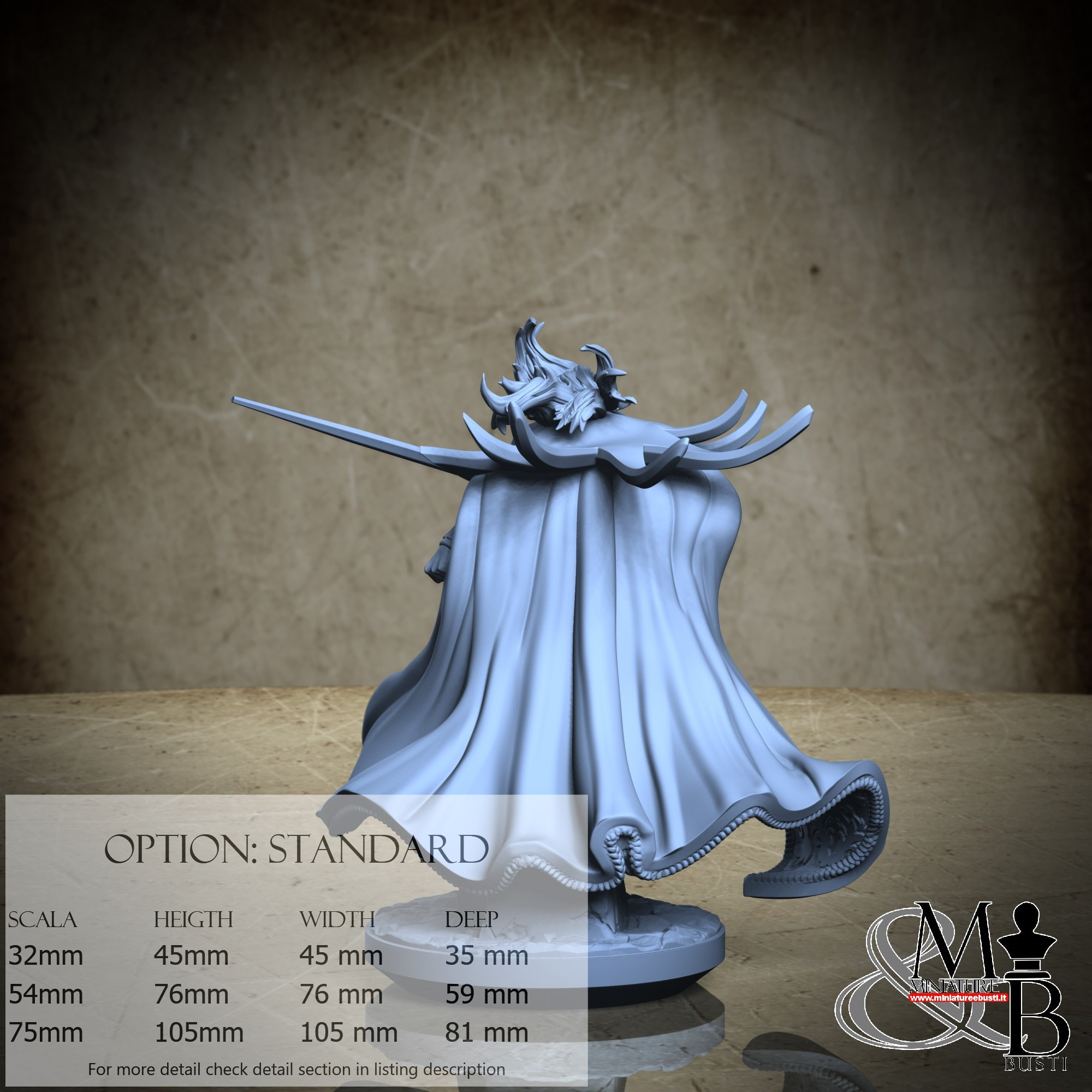 - Cloak (1 piece) in Resin: Height: 72 mm, Width: 91 mm, Depth: 72 mm