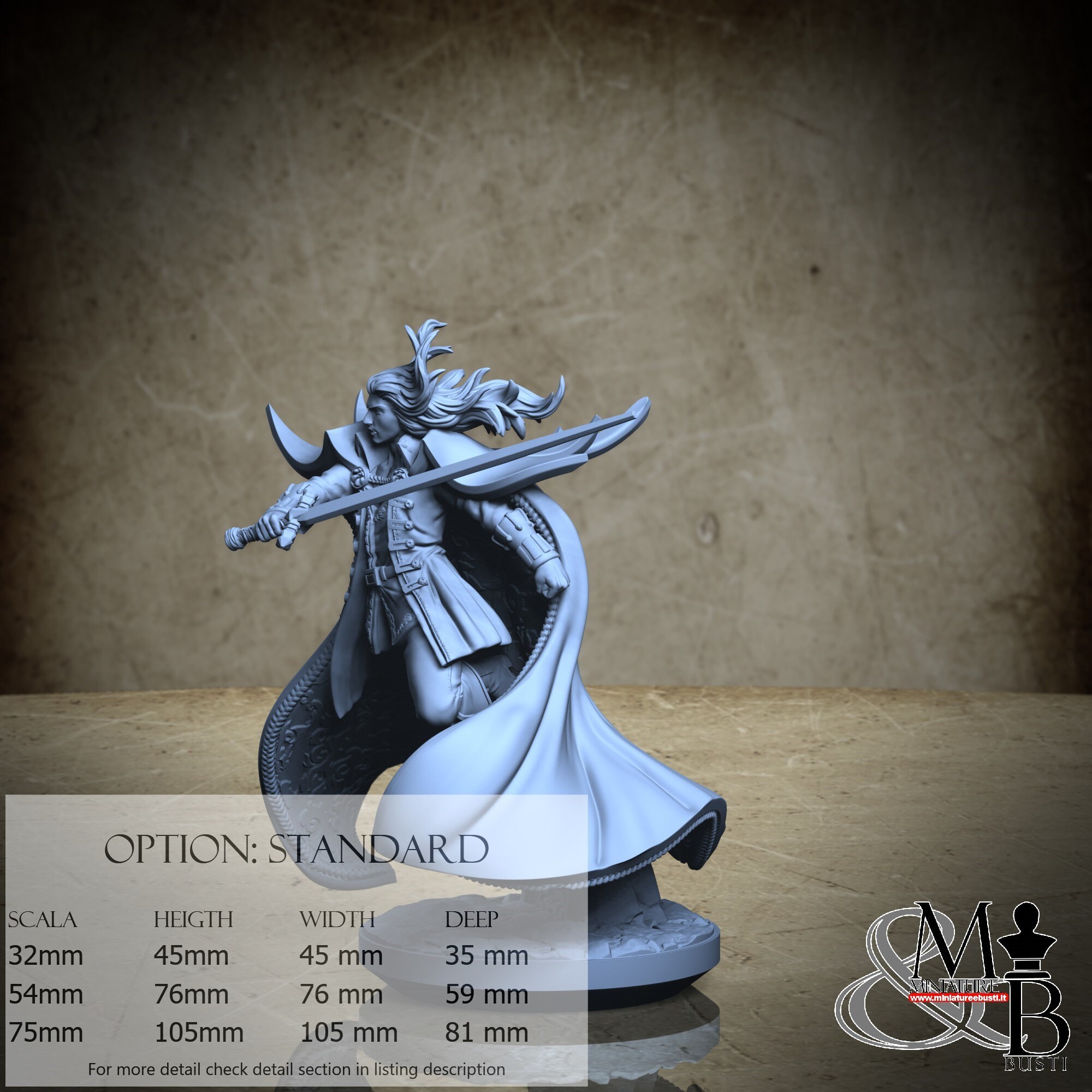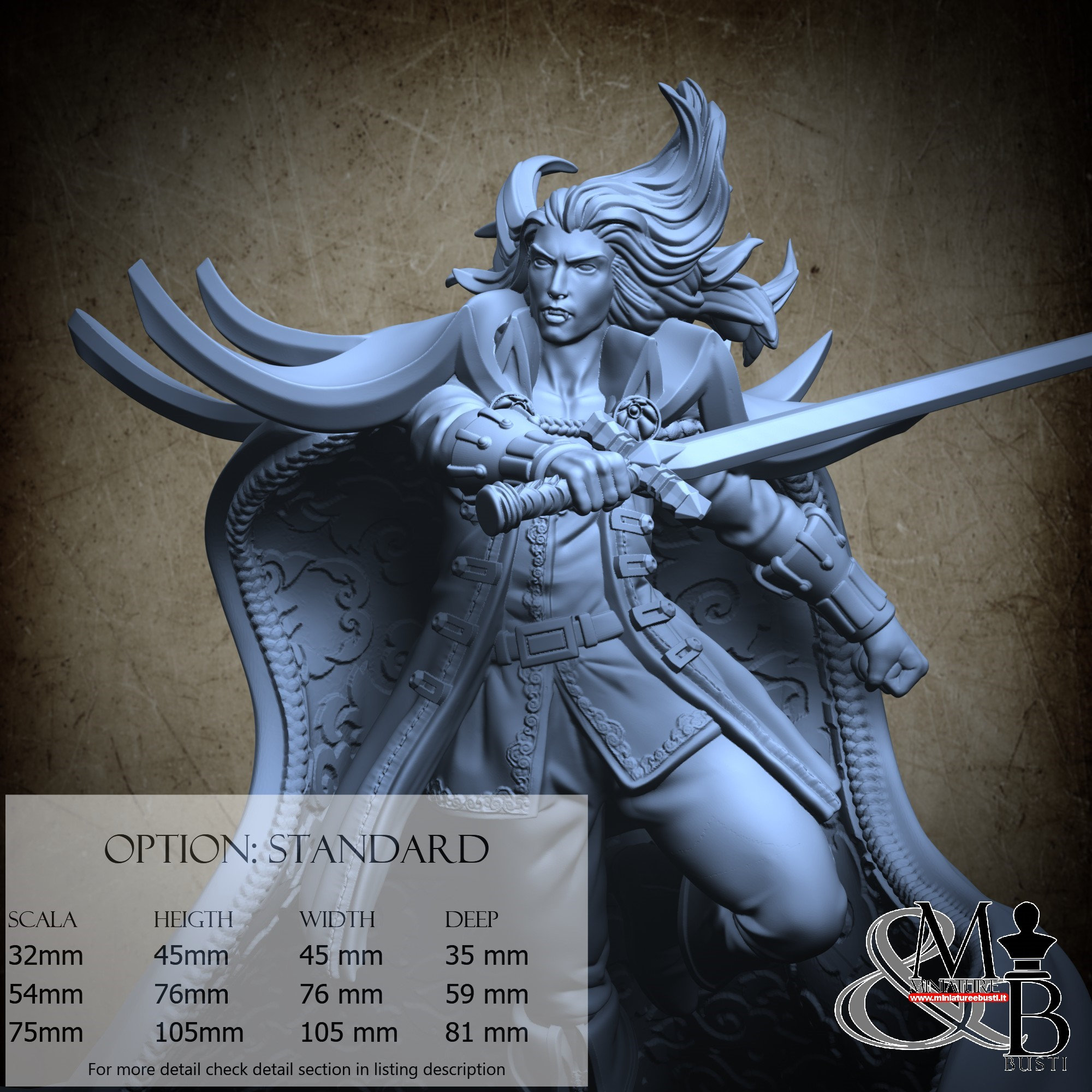 - Alucard (3 pieces) in Resin: Height: 40 mm, Width: 45 mm, Depth: 35 mm