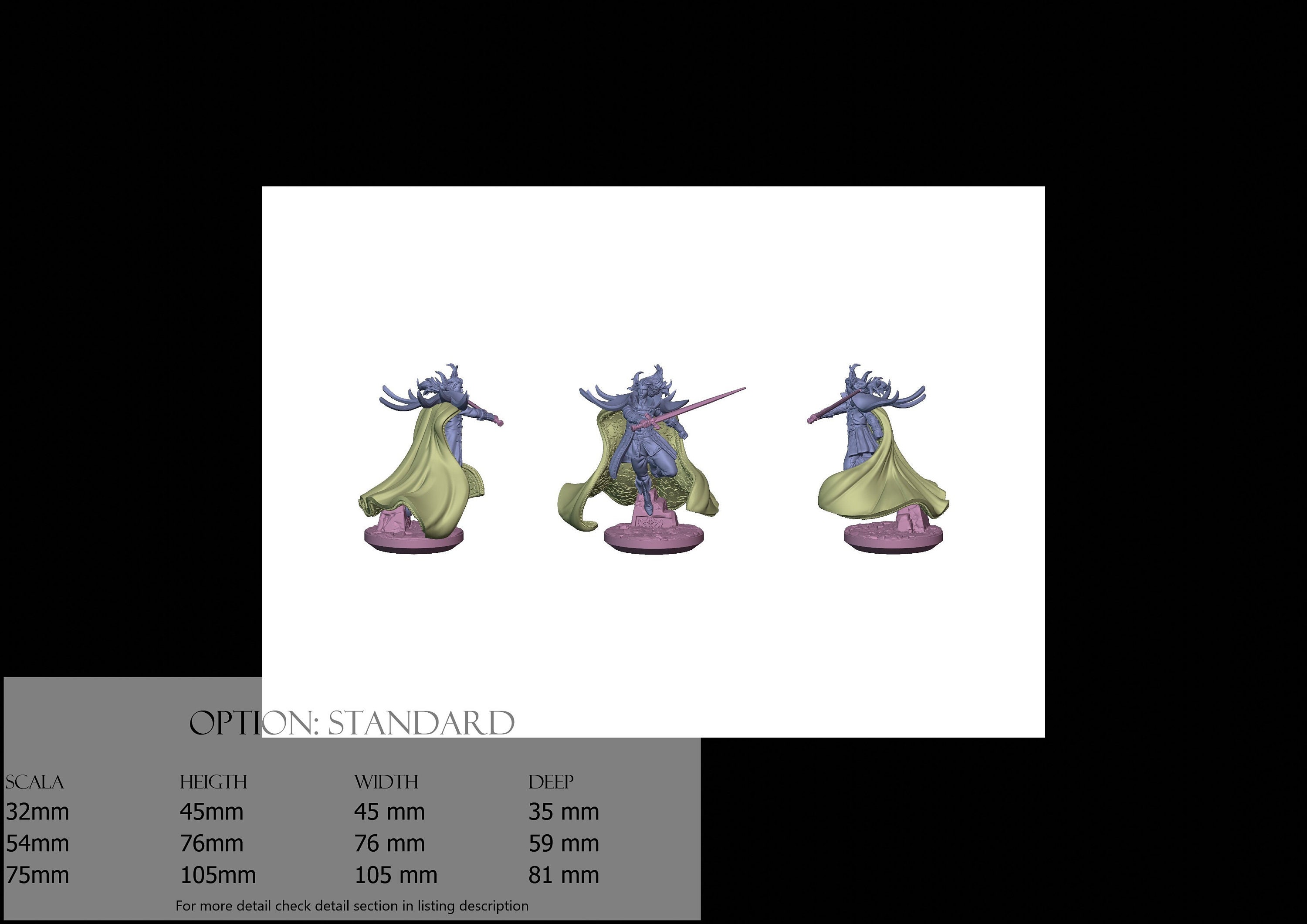 - Cloak (1 piece) in Resin: Height: 52 mm, Width: 65 mm, Depth: 52 mm