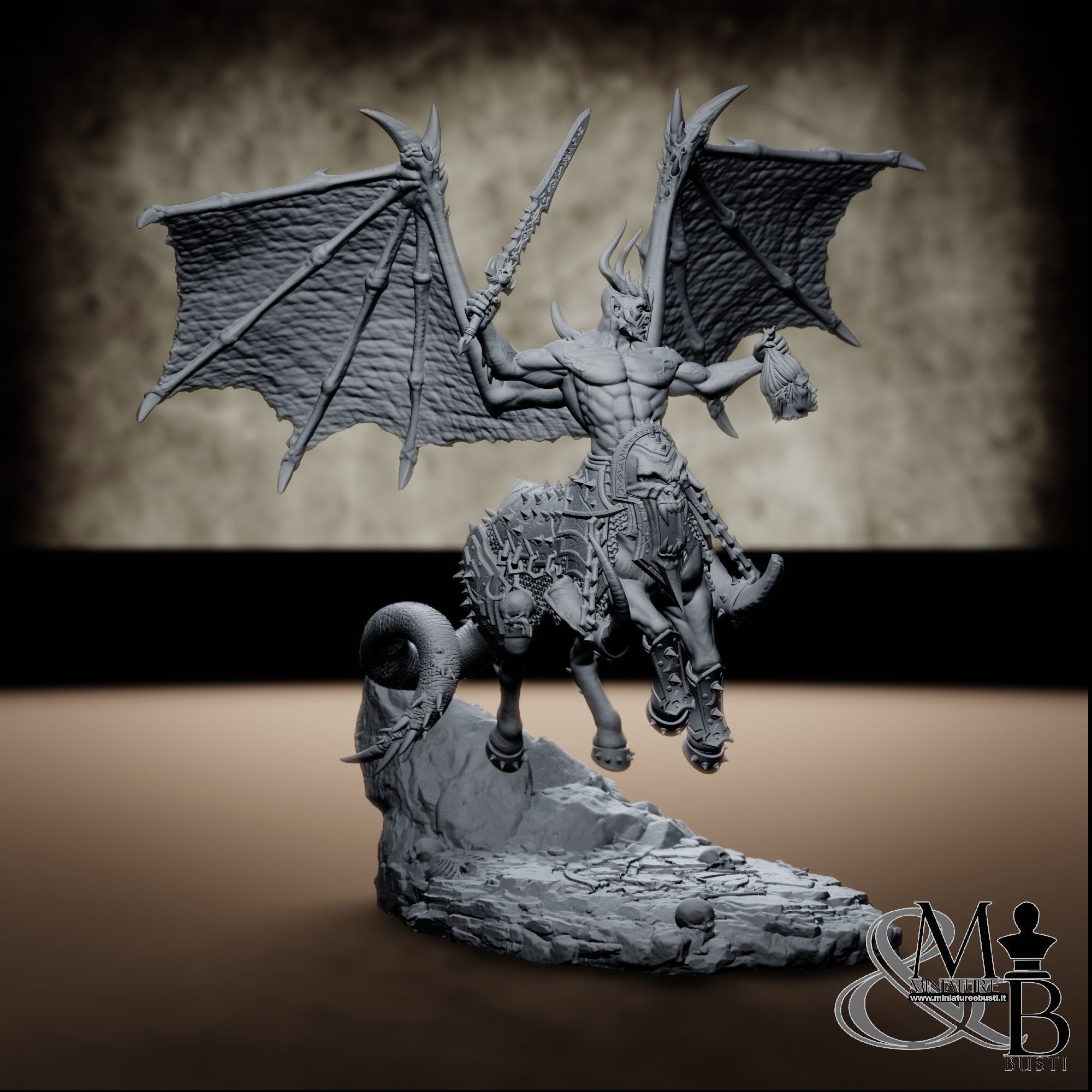 Centauric-shaped demon with bat-like wings.