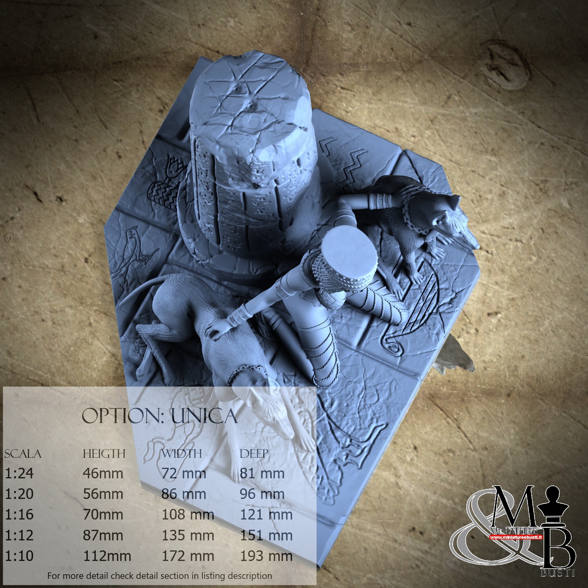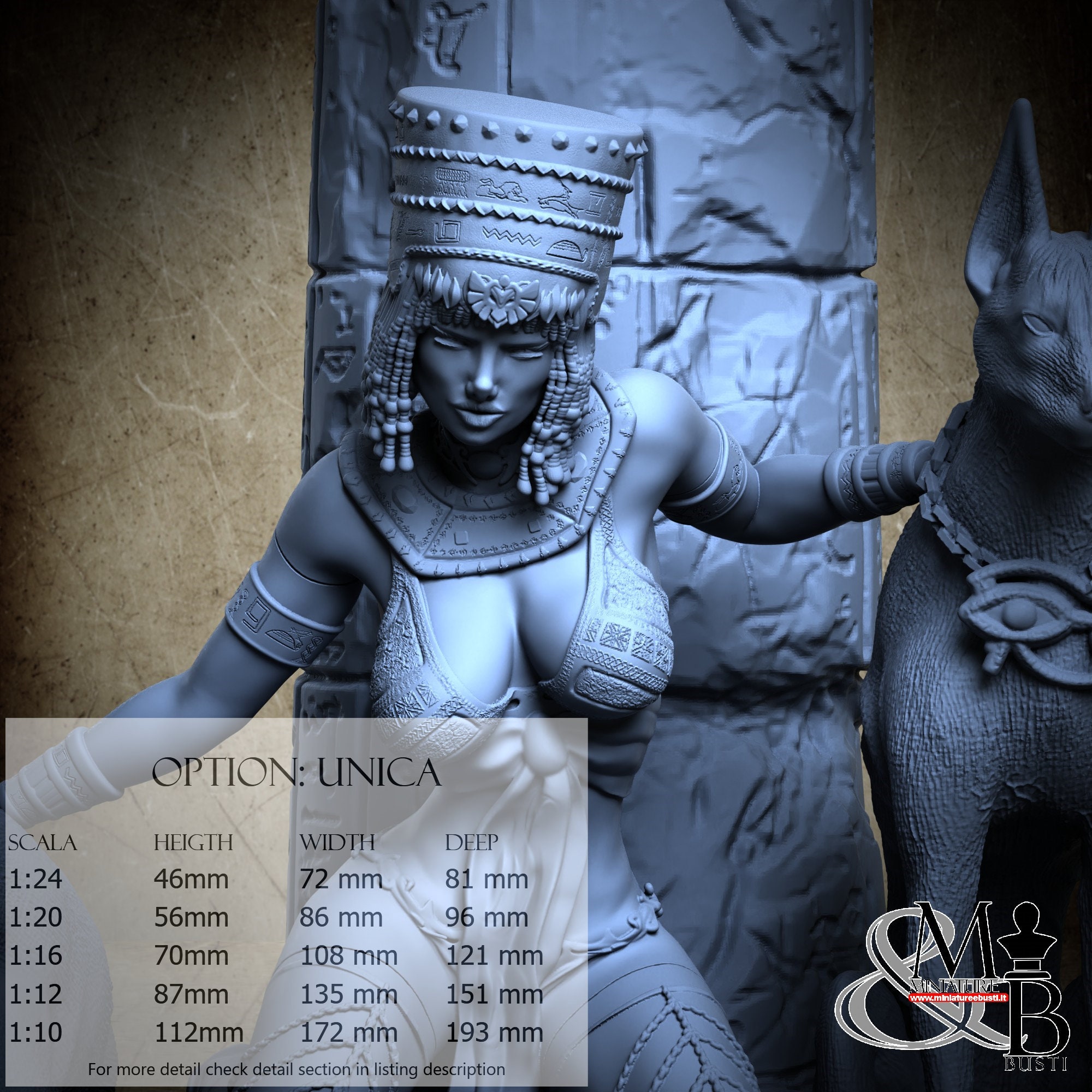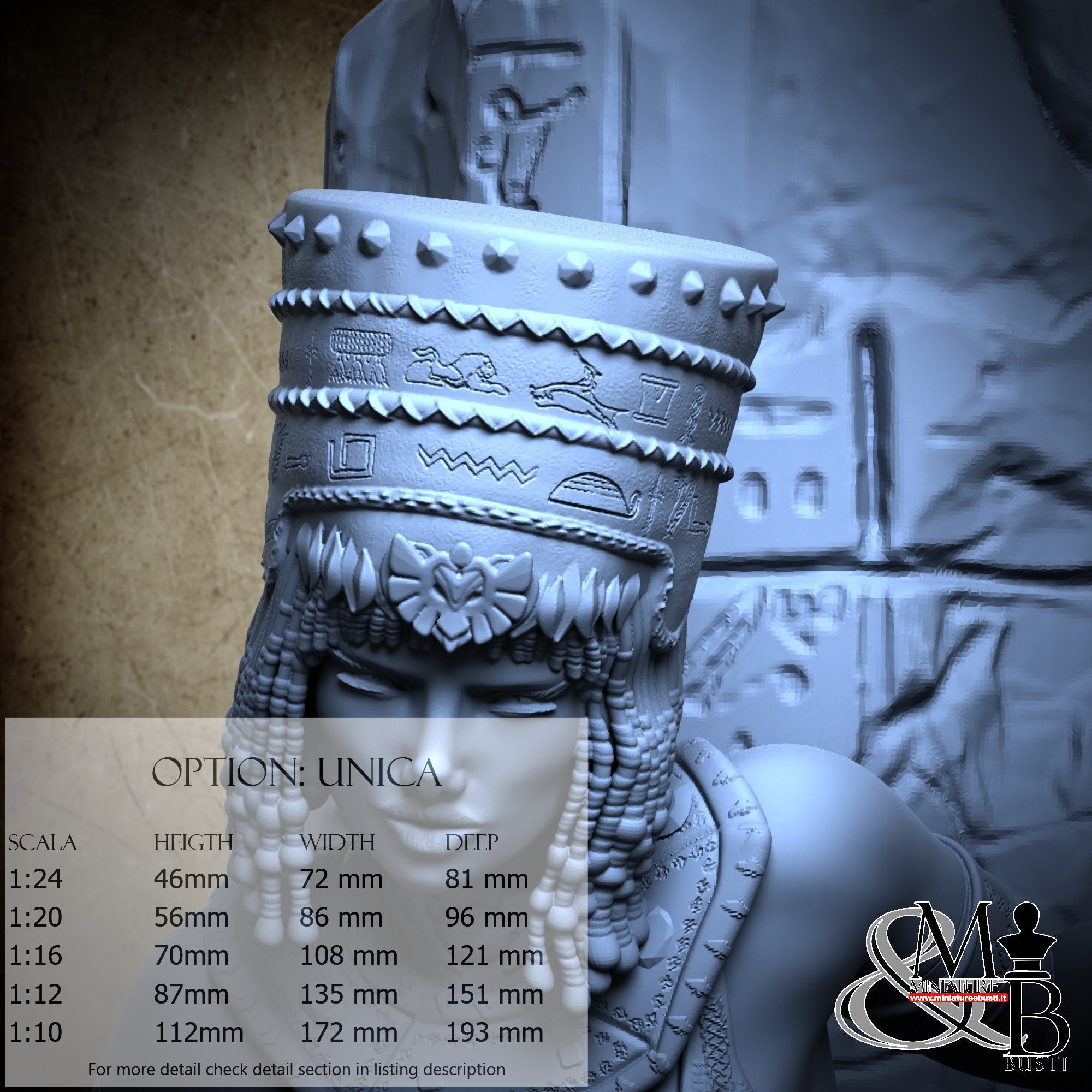 - Nitokris (6 pezzi) in Resina : Altezza: 73 mm, Larghezza: 71 mm, Profondità: 36 mm