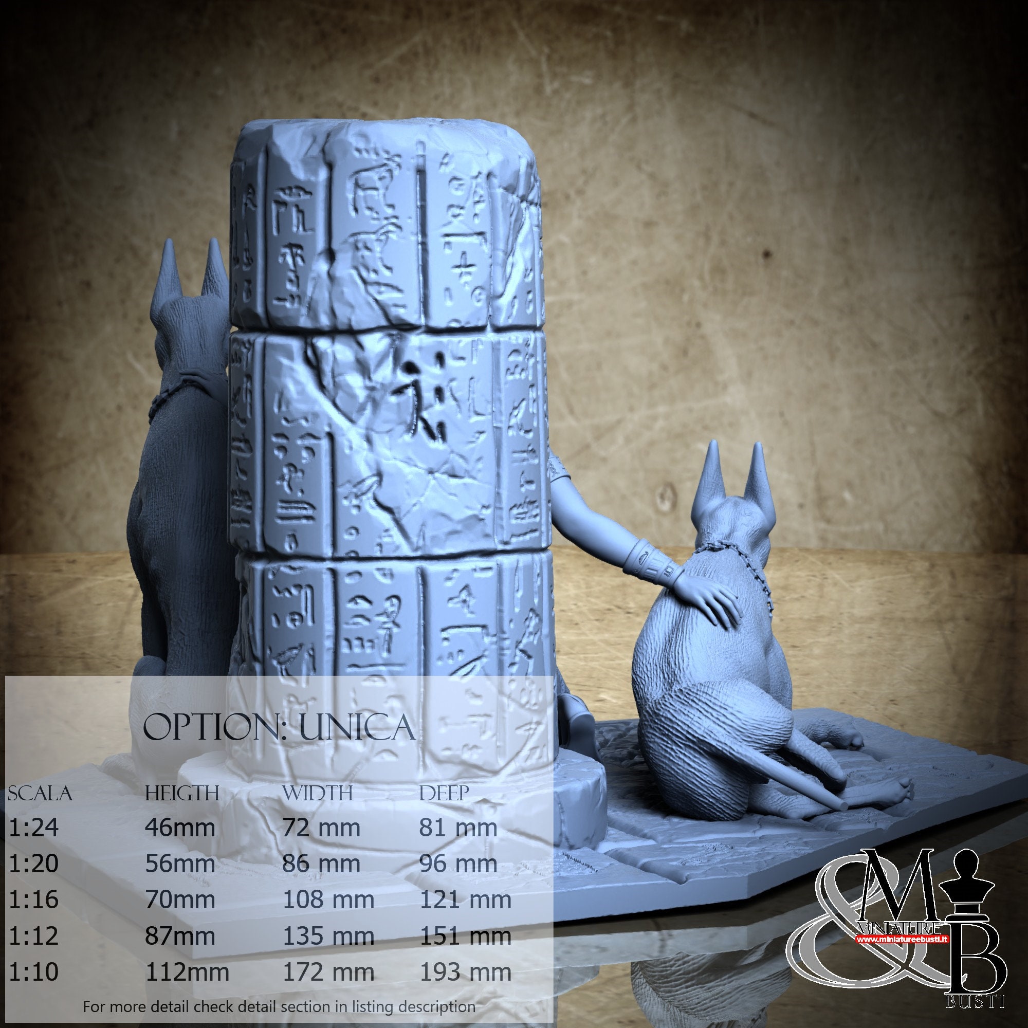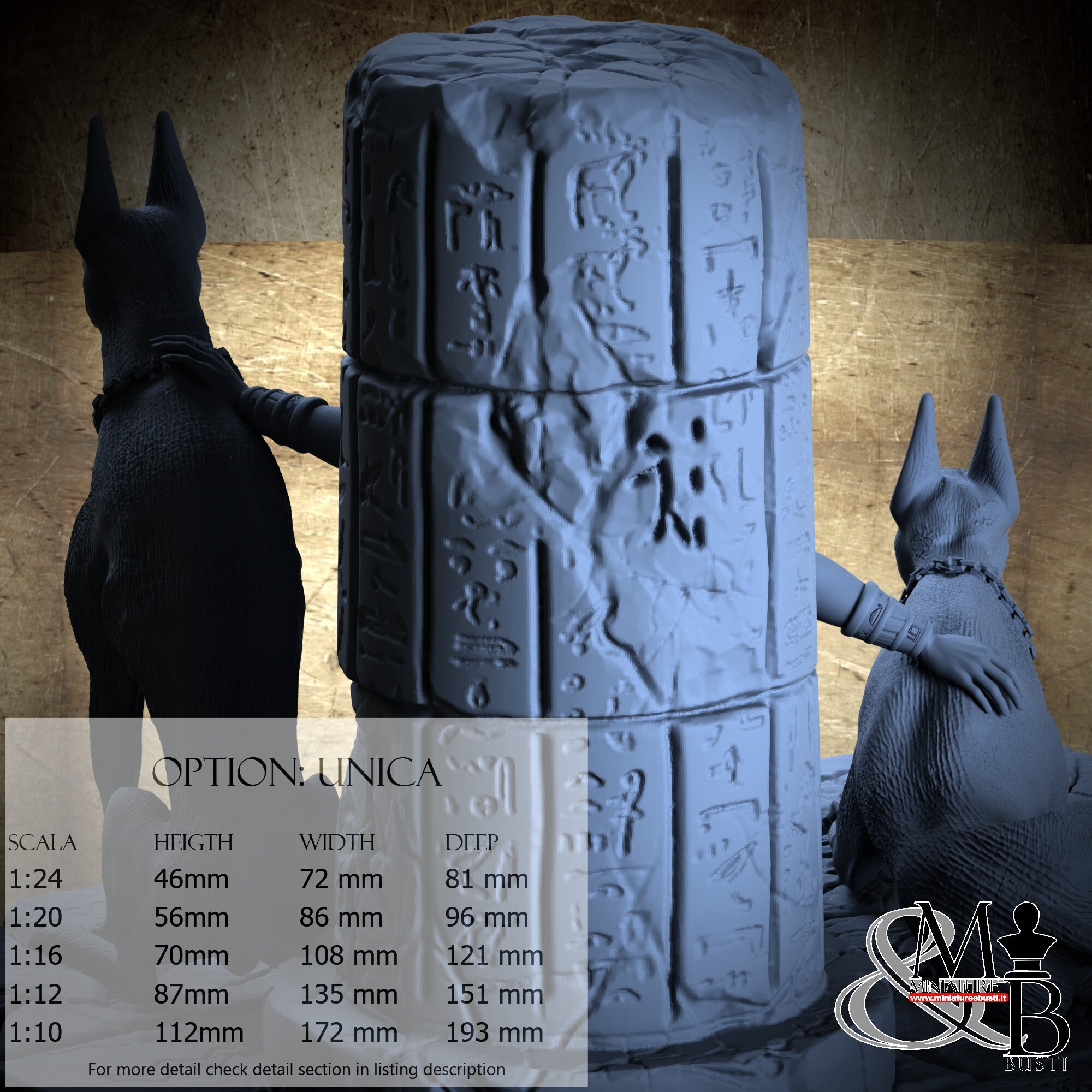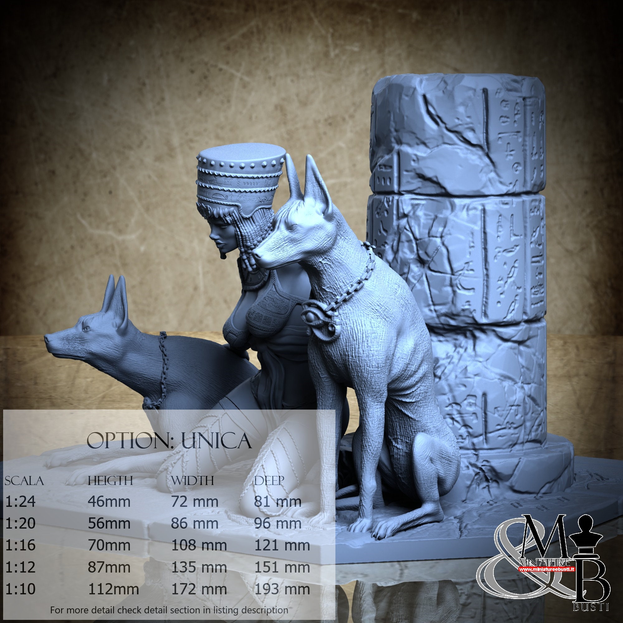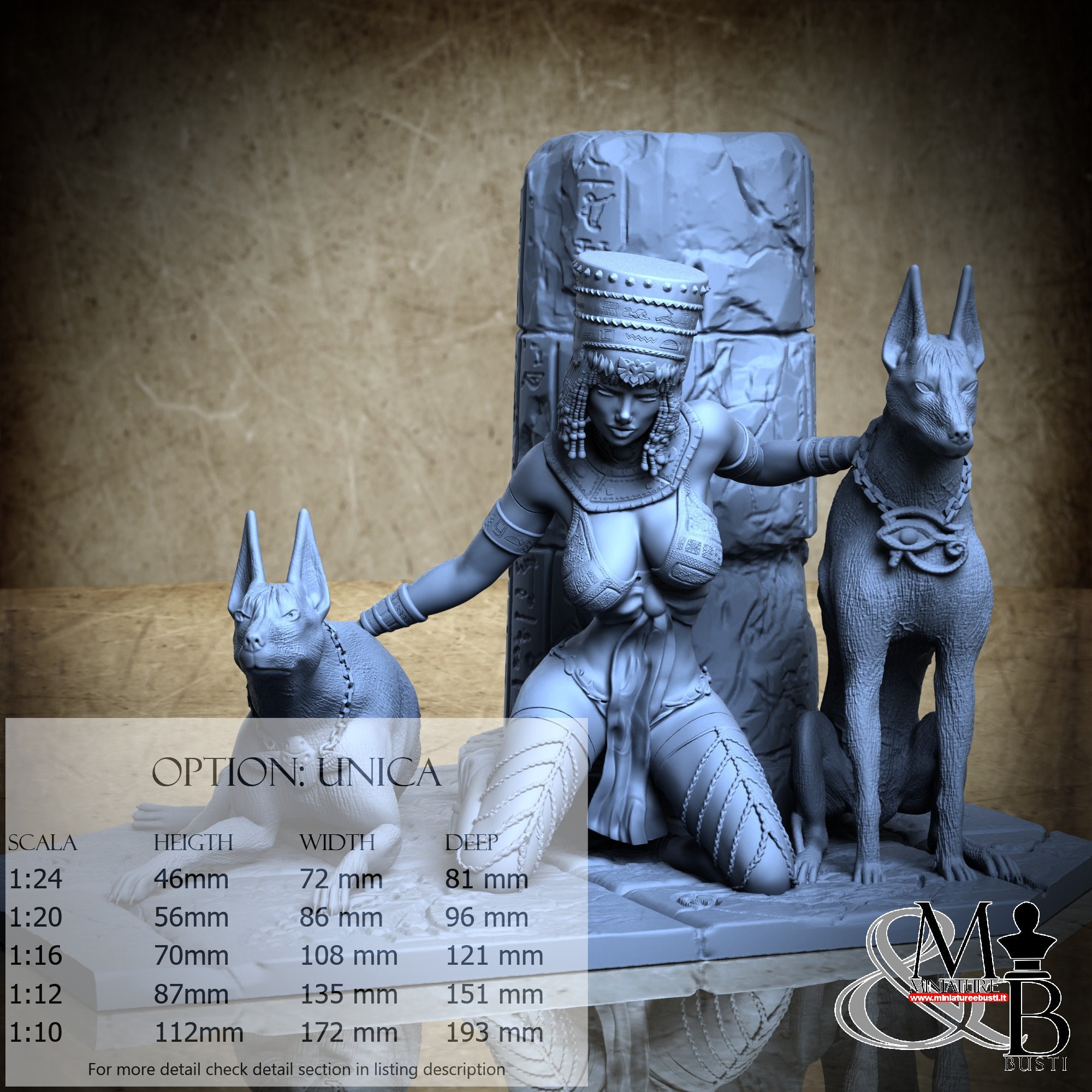 - Nitokris (6 pezzi) in Resina : Altezza: 94 mm, Larghezza: 91 mm, Profondità: 46 mm