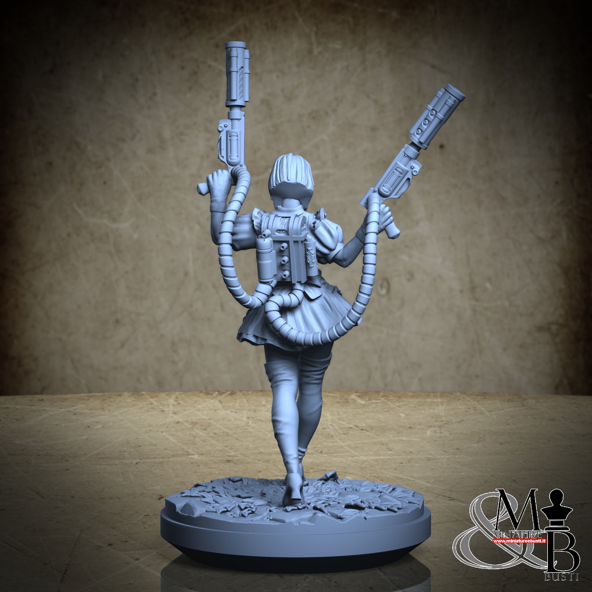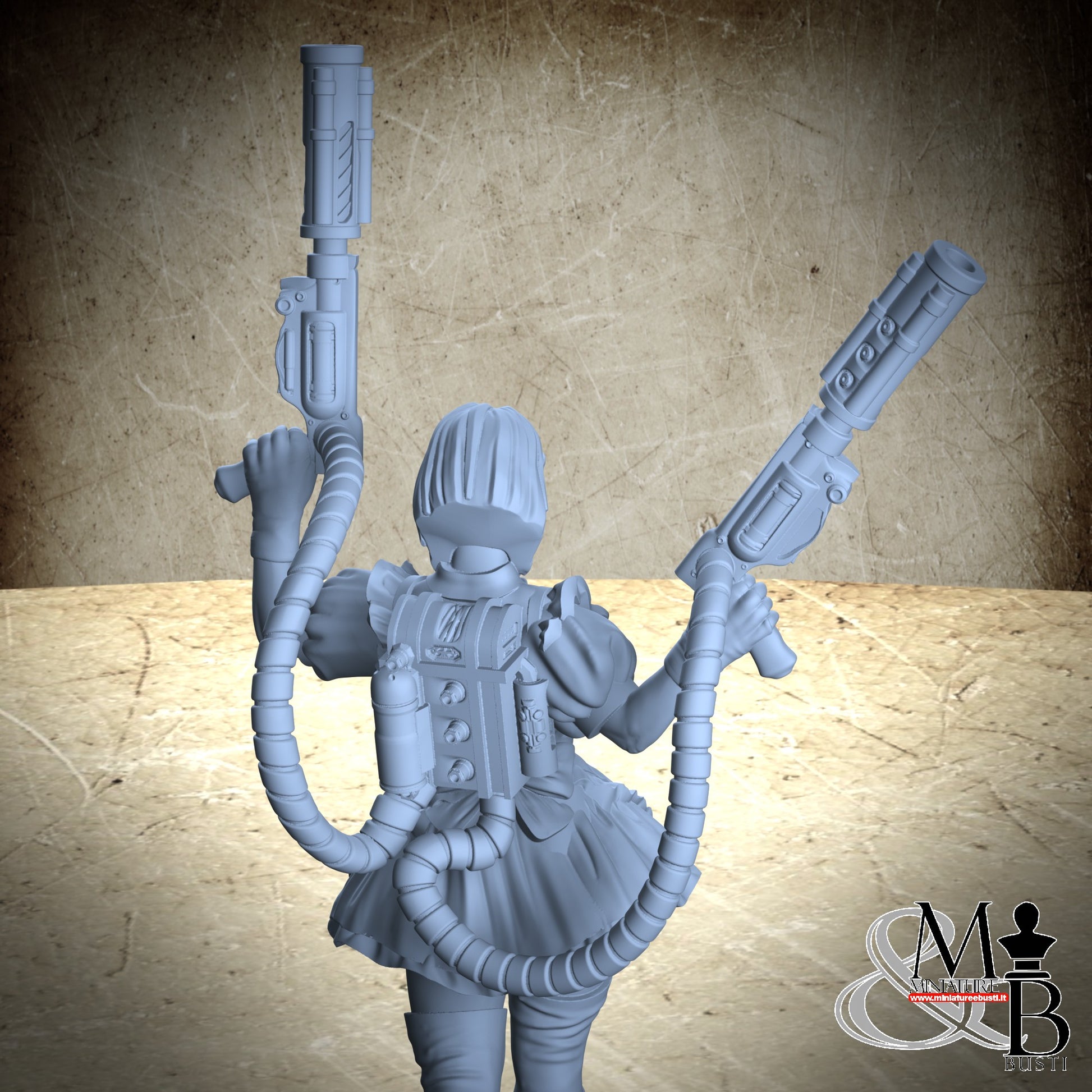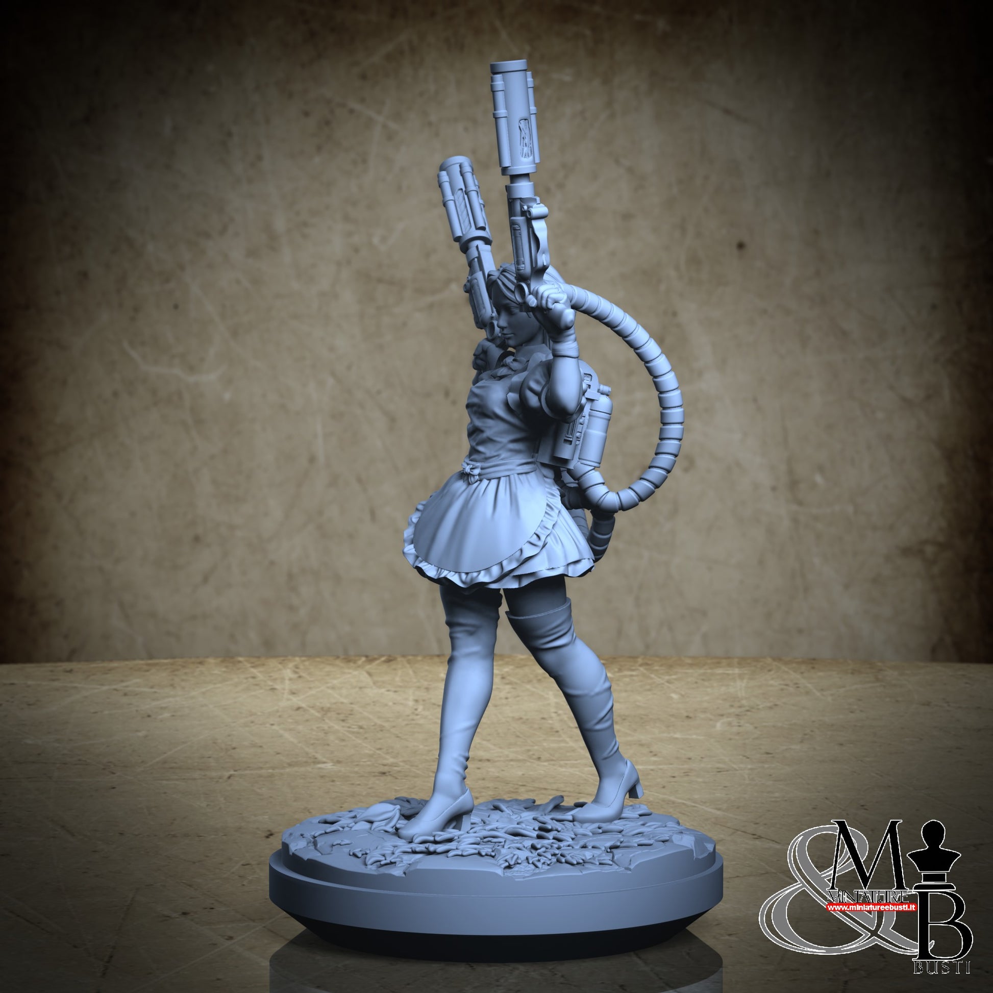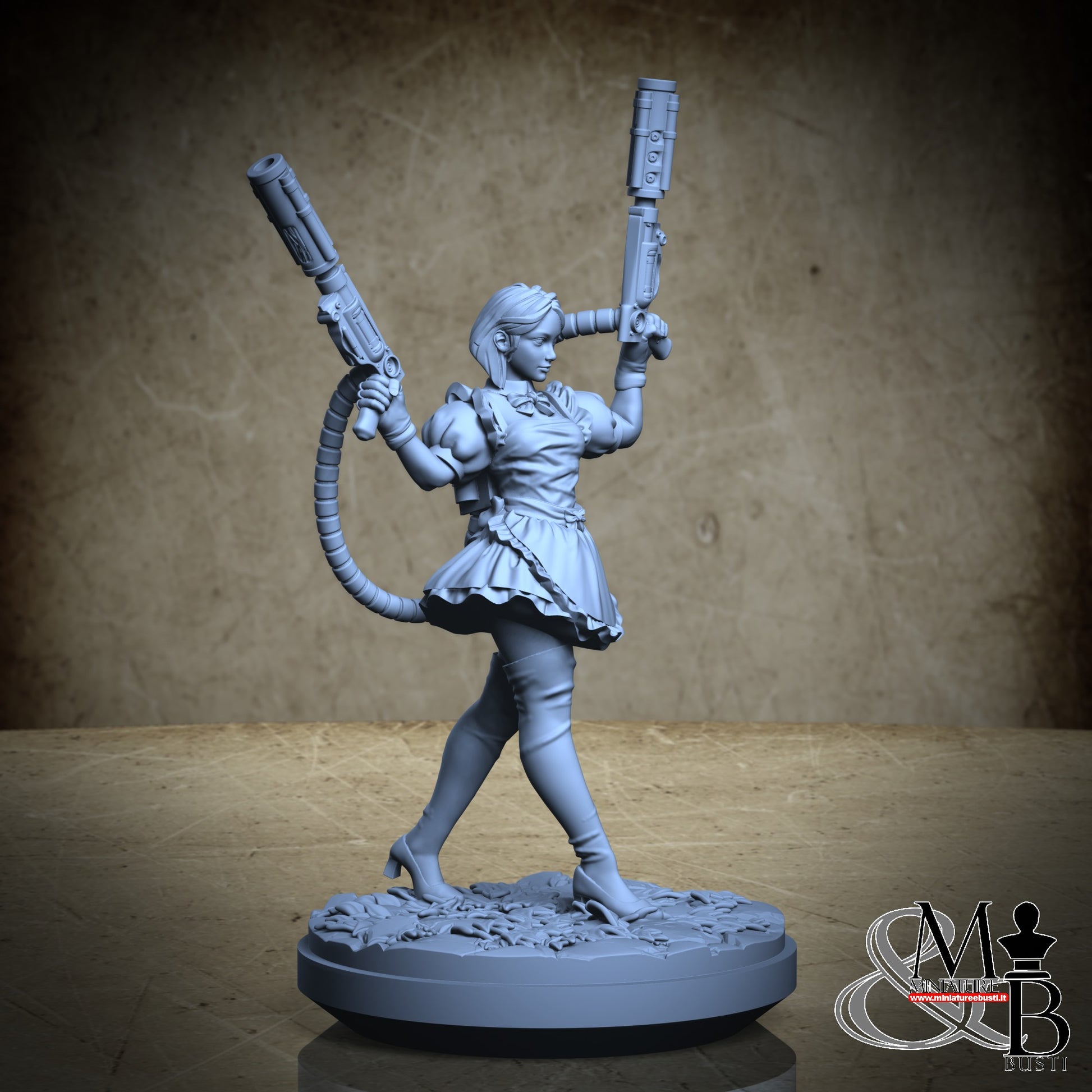 Questa è una MINIATURA. Le miniatura sono modelli pensati per i giochi di ruolo, ad esempio dungeons & Dragons, che poi ridimensioniamo in alto o in basso per le differenti scale. Di solito sono originariamente scolpiti per sistemi a 32mm (dove un uomo standard è alto 32mm dai piedi alla testa). Le proporzioni sono pensate tenendo in considerazione che verranno maneggiate spesso, quindi dettagli come spade e scudi sono particolarmente spessi. La miniatura viene venduta come appare nell'immagine, e dato che alcuni autori non aggiungono una base, se questa è assente nell'immagine significa che non verrà fornita con la miniatura.